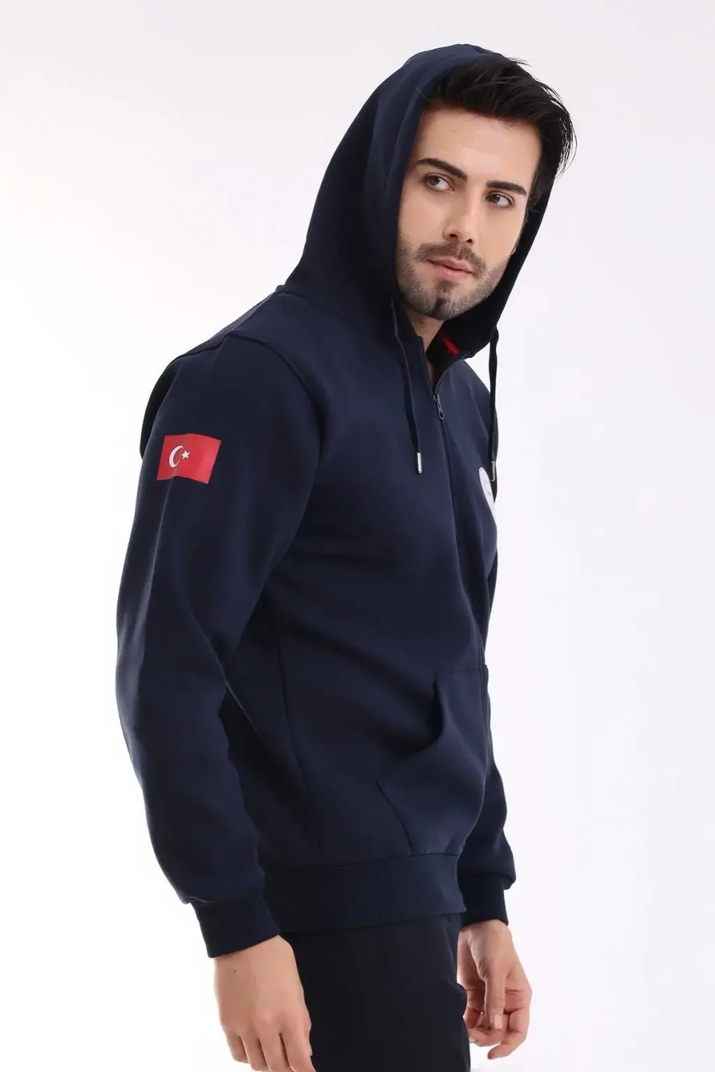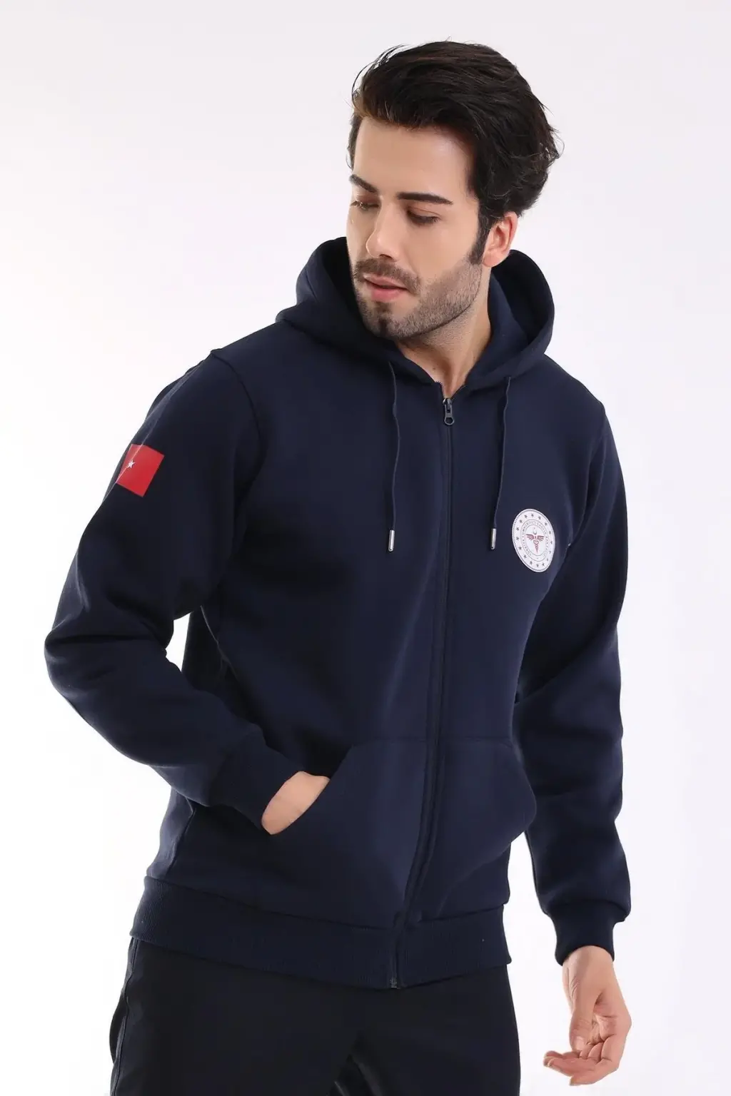 112 Acil Sağlık Unisex Kapşonlu Hırka - Lacivert