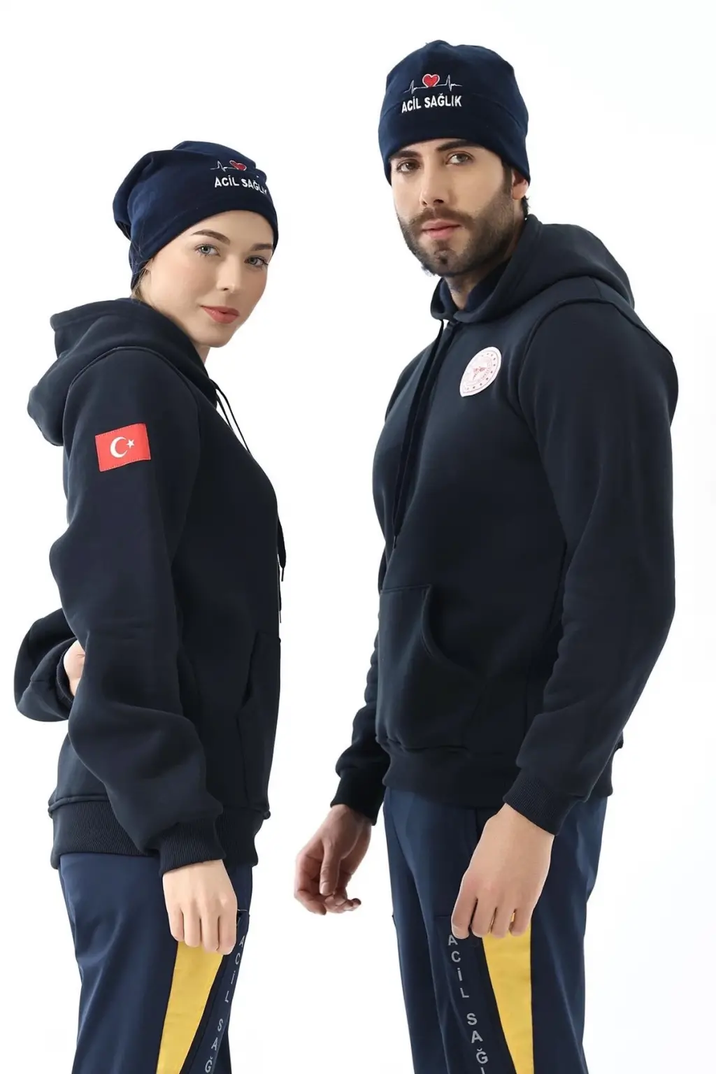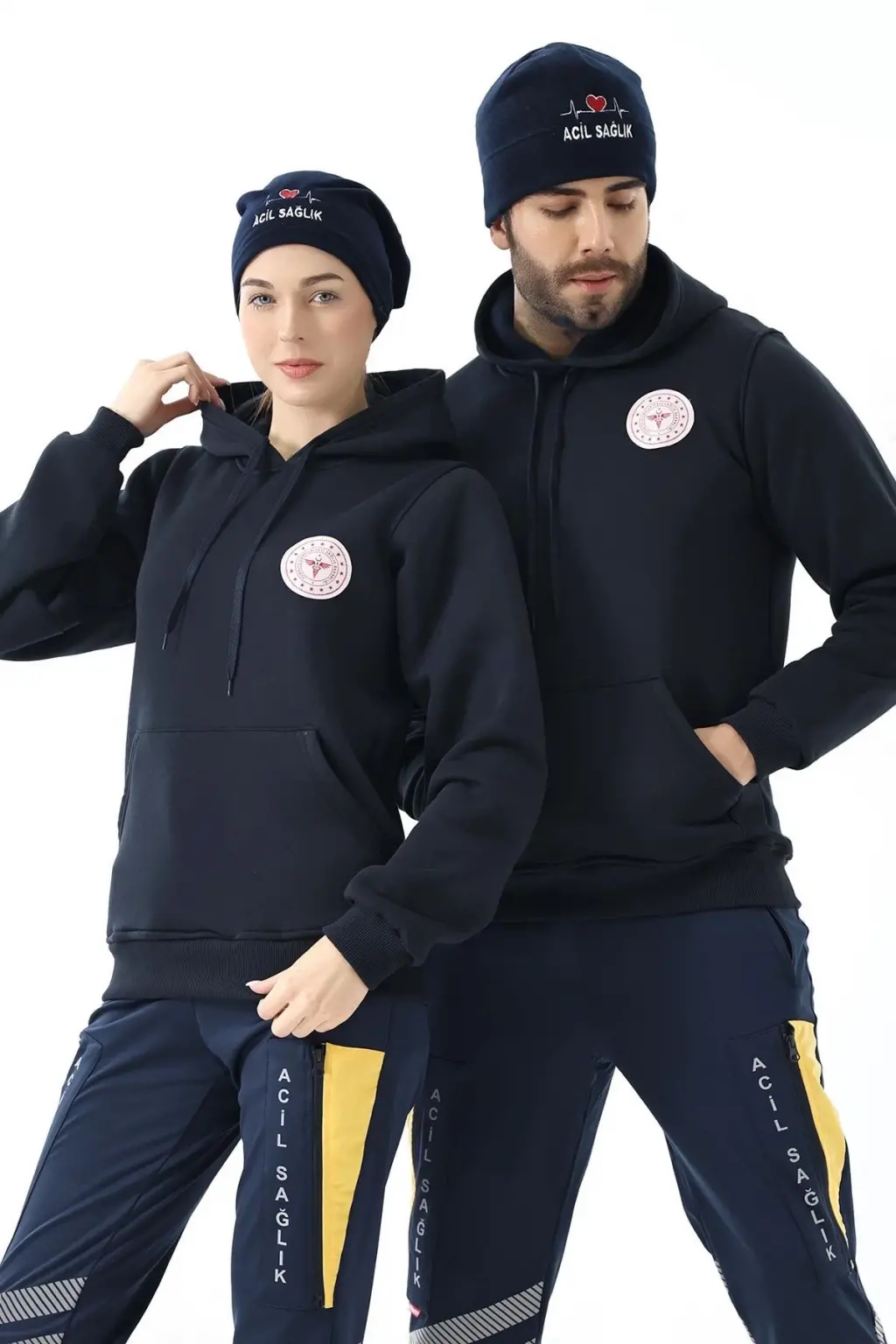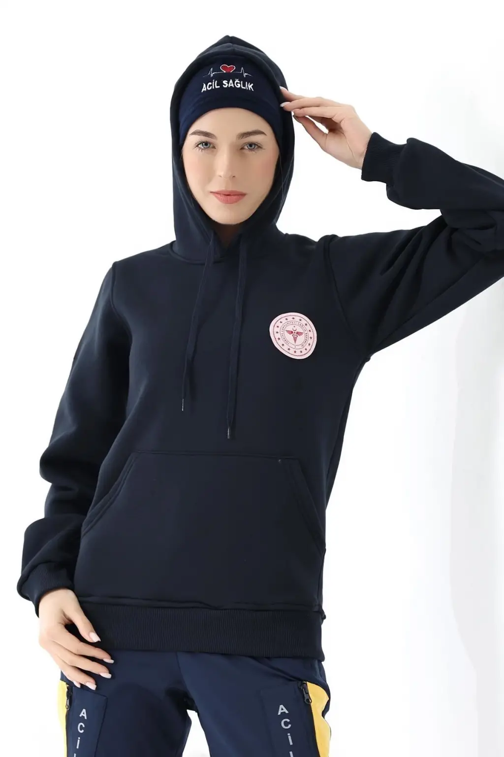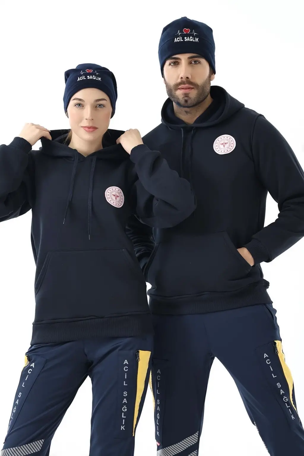 112 Acil Sağlık Unisex Kapüşonlu Sweatshirt - Lacivert
