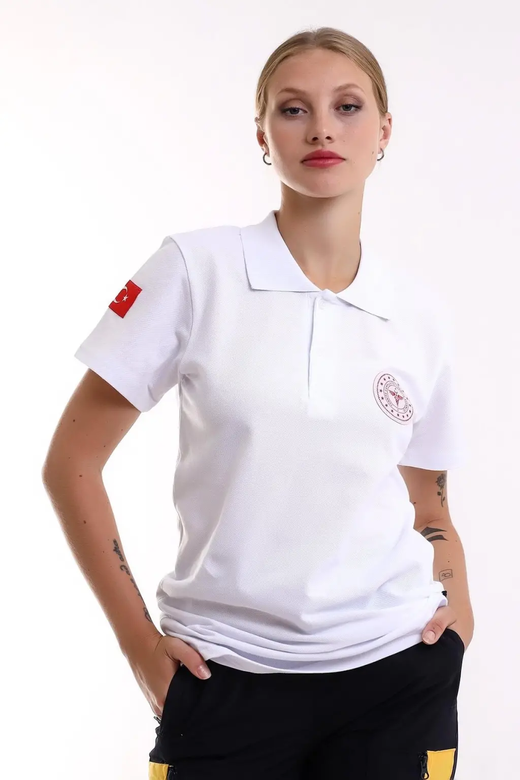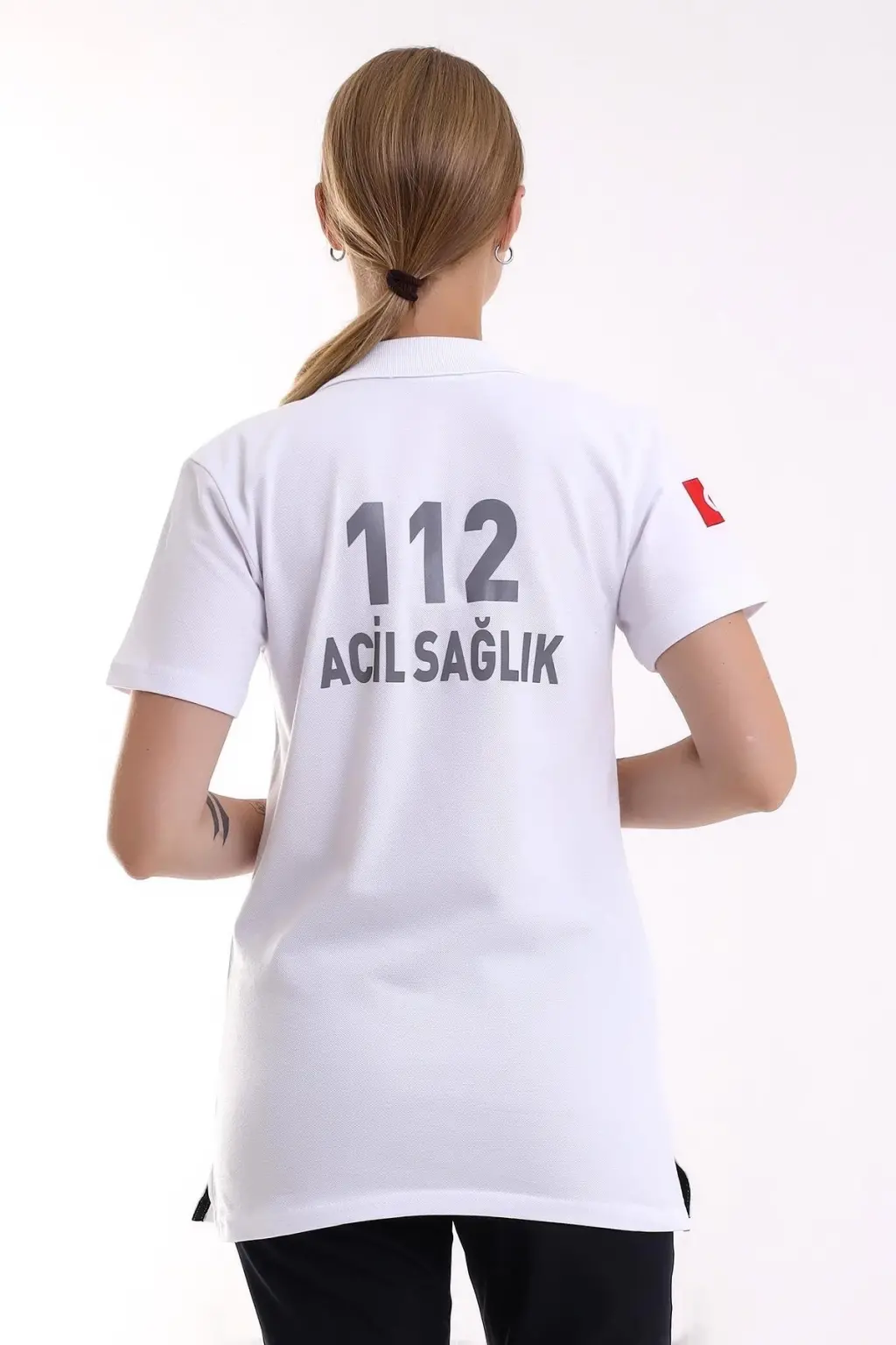 112 Acil Sağlık Yakalı Tshirt Kısa Kol Baskılı - Beyaz