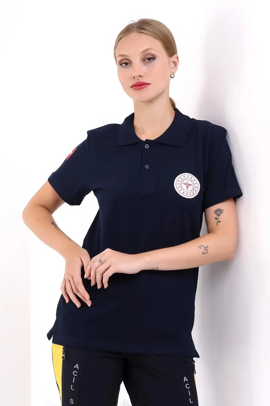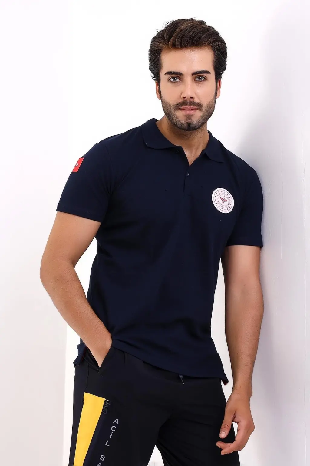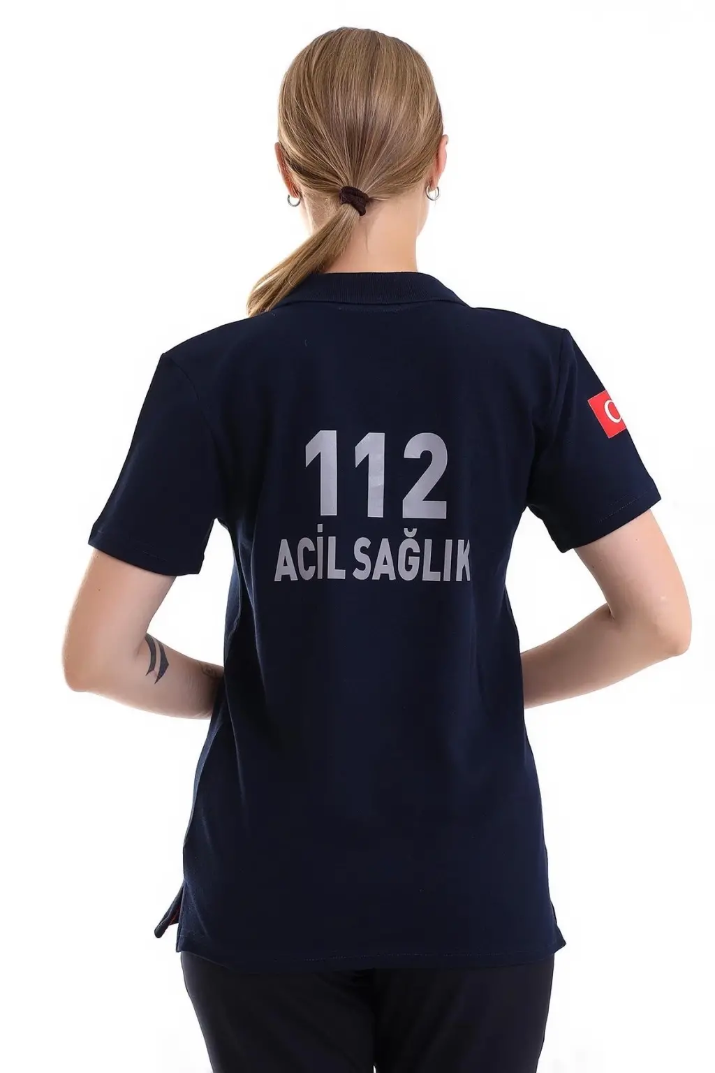 112 Acil Sağlık Yakalı Tshirt Kısa Kol Baskılı - Lacivert