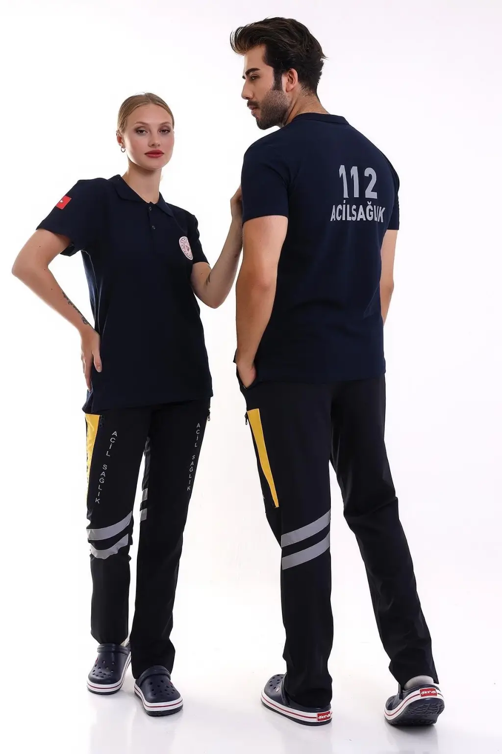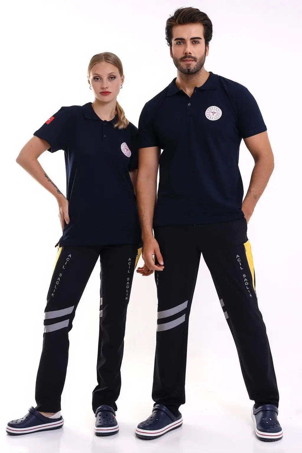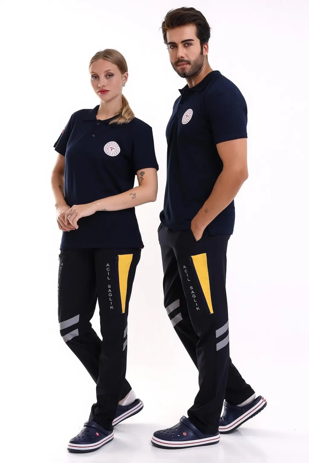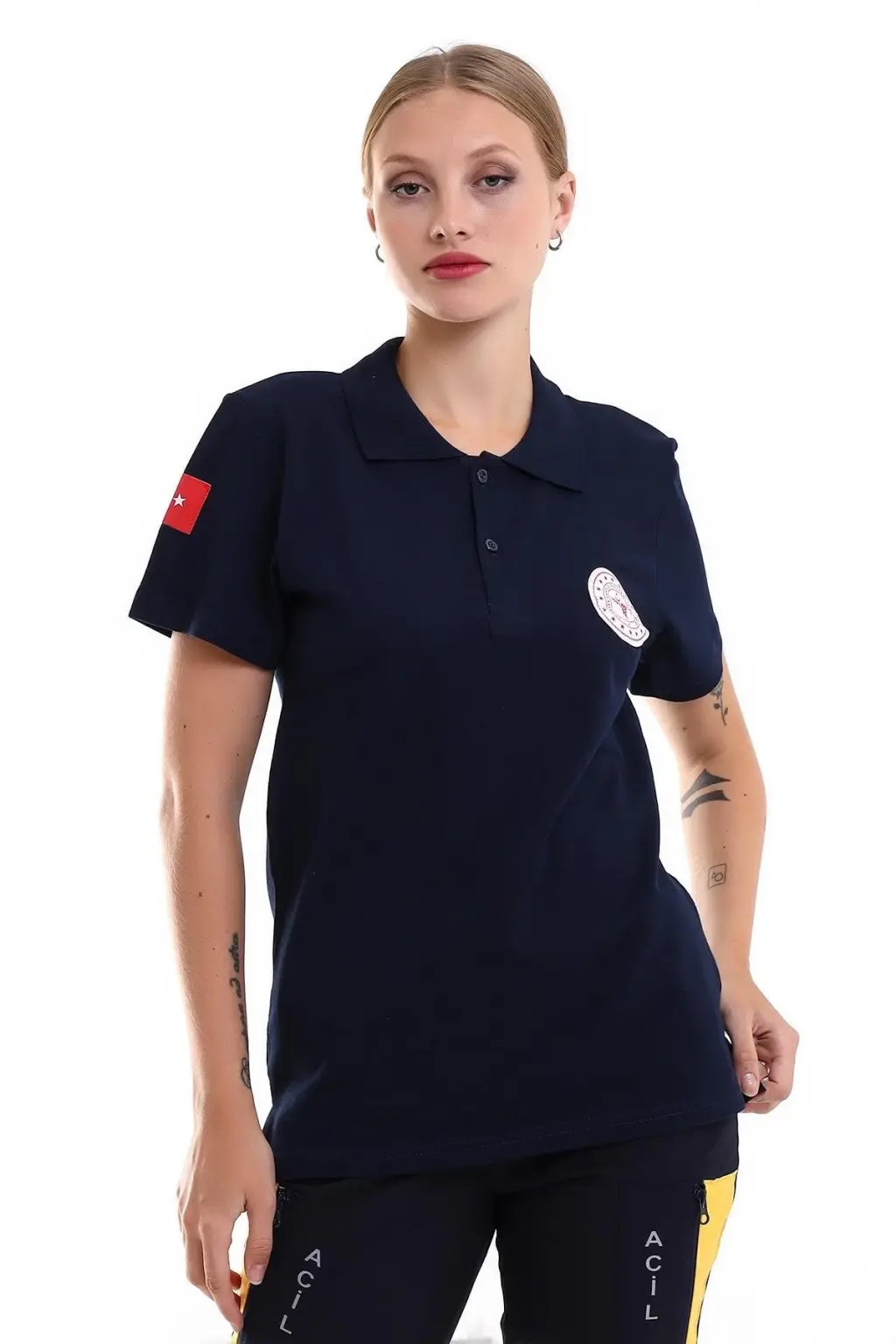 112 Acil Sağlık Yakalı Tshirt Kısa Kol Baskılı - Lacivert