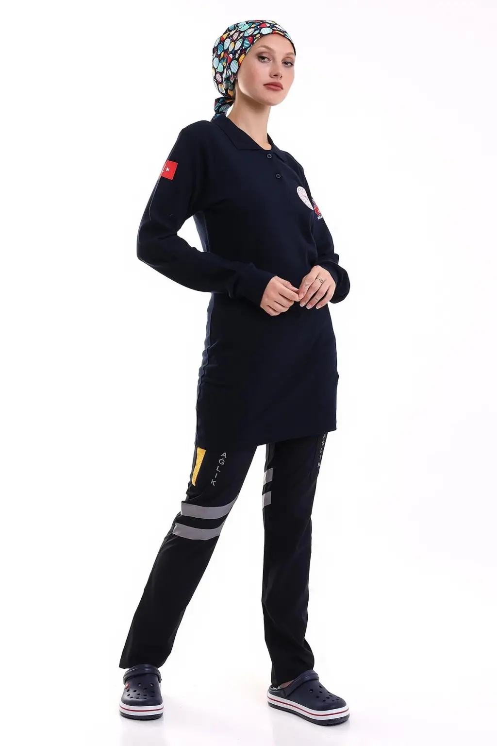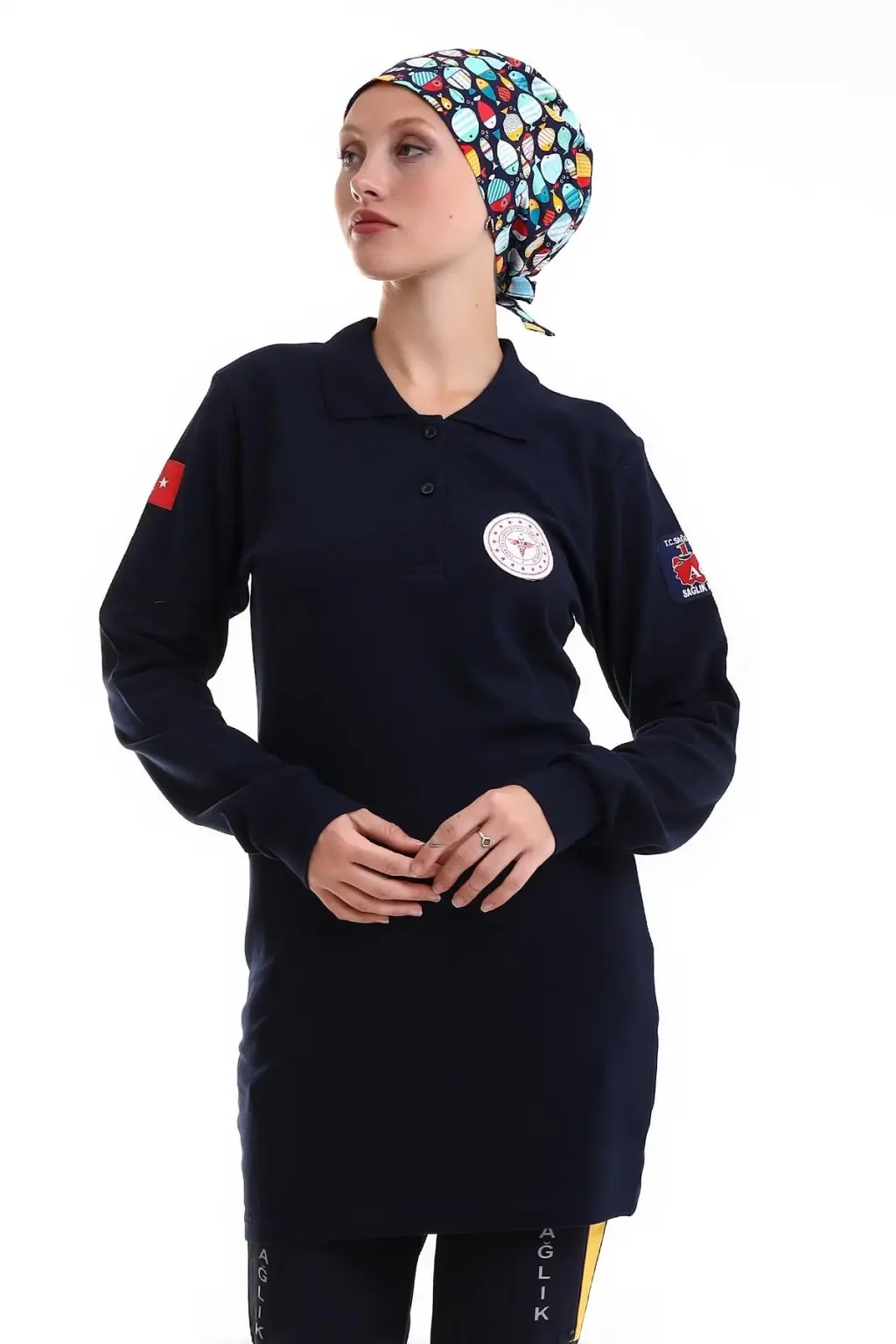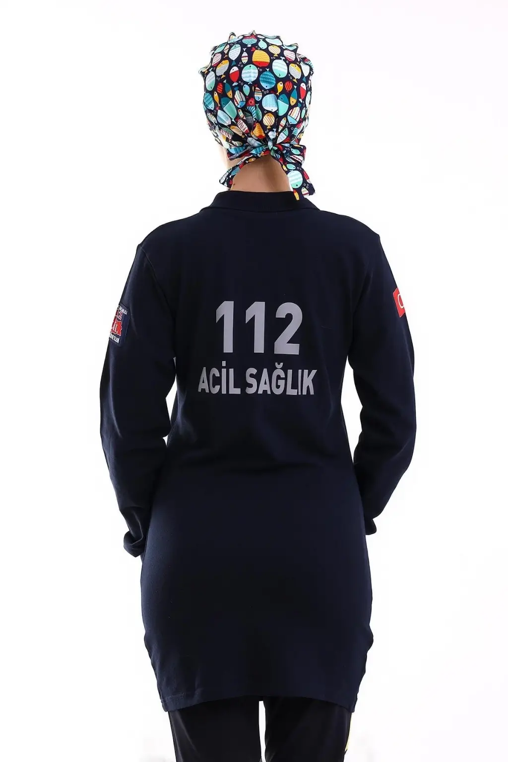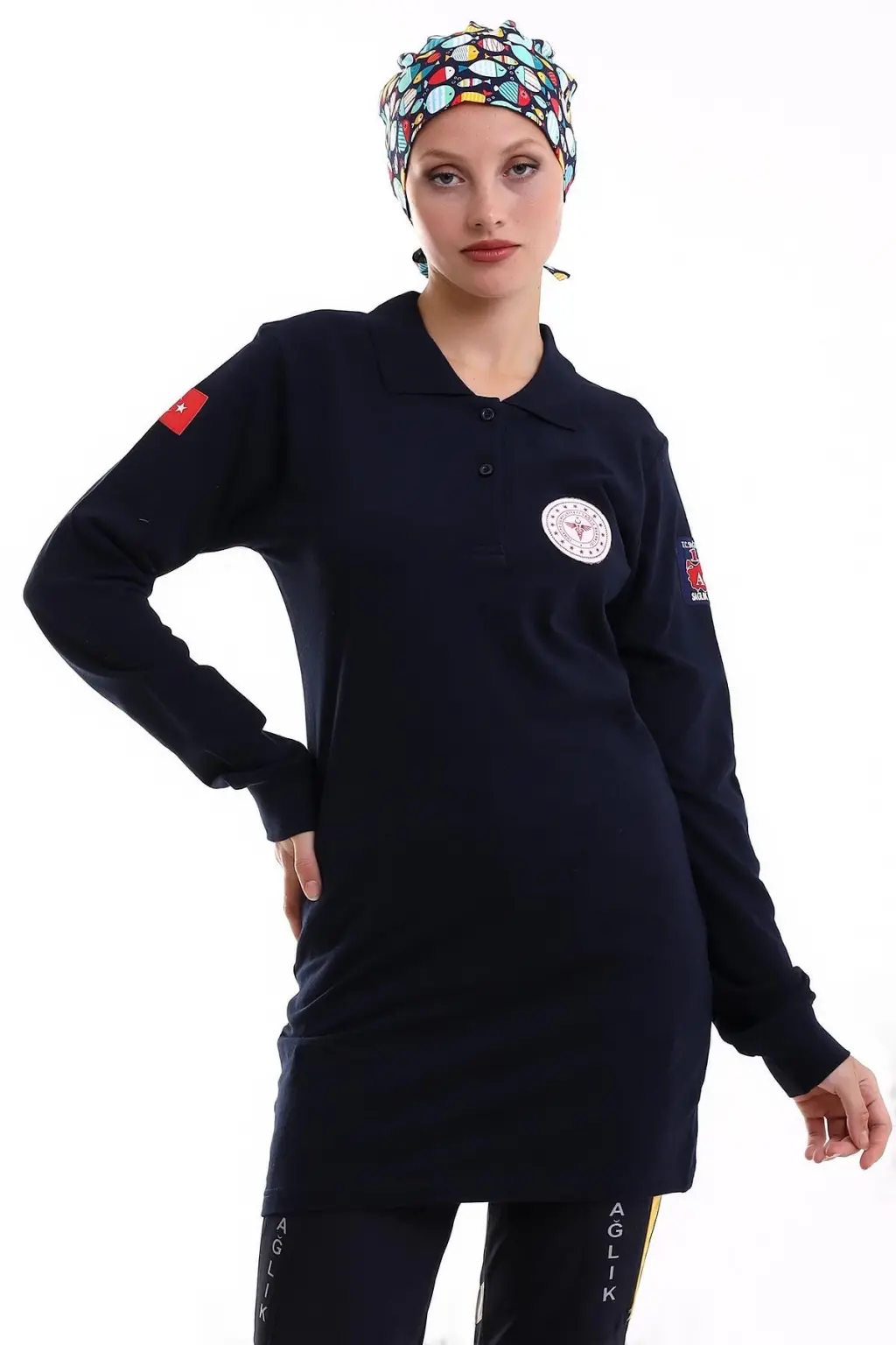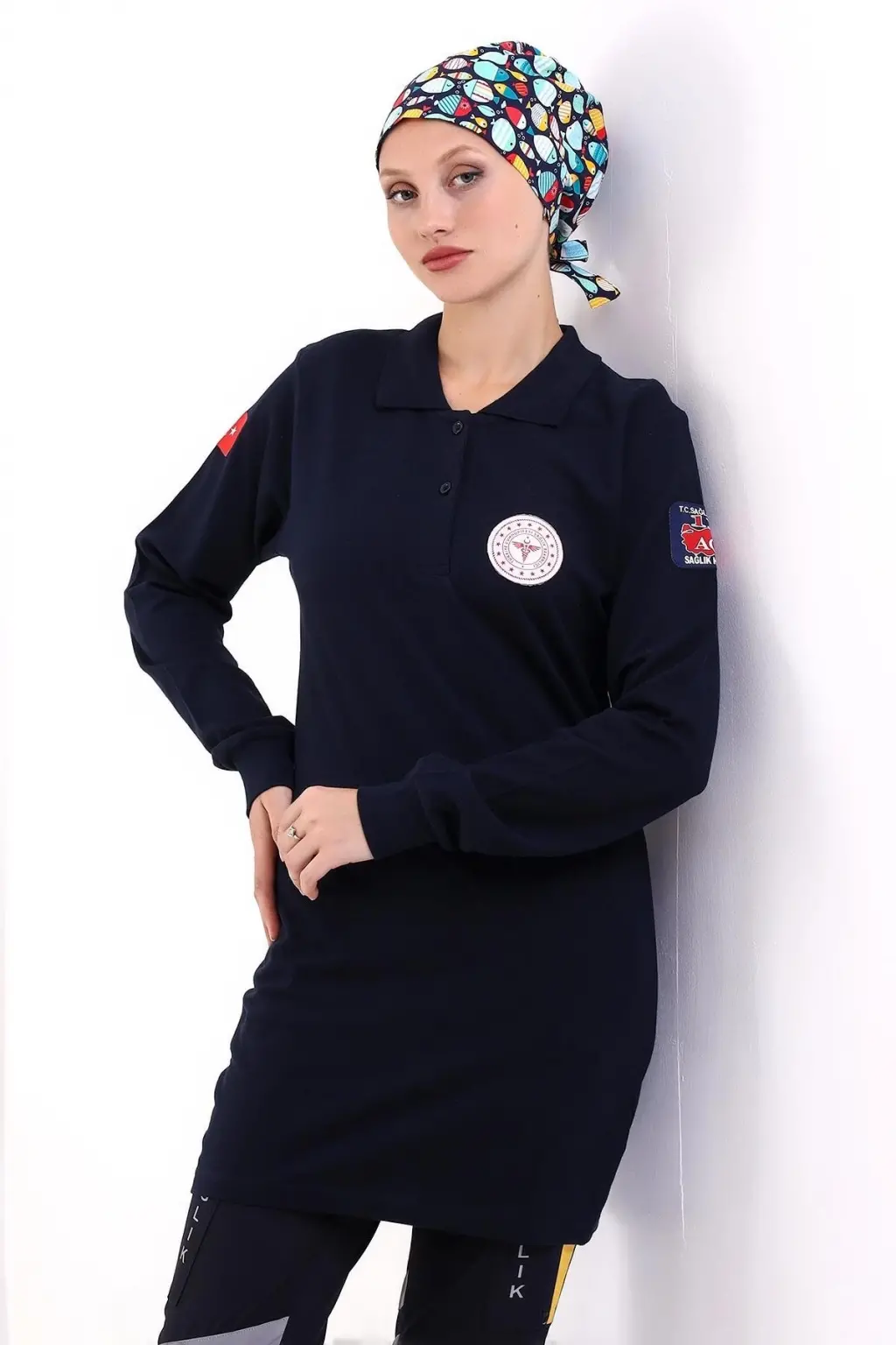 112 Acil Sağlık Yakalı Tshirt Tunik Baskılı - Lacivert