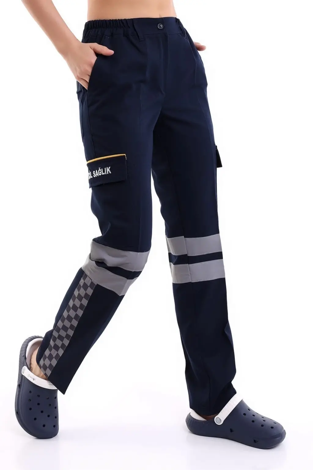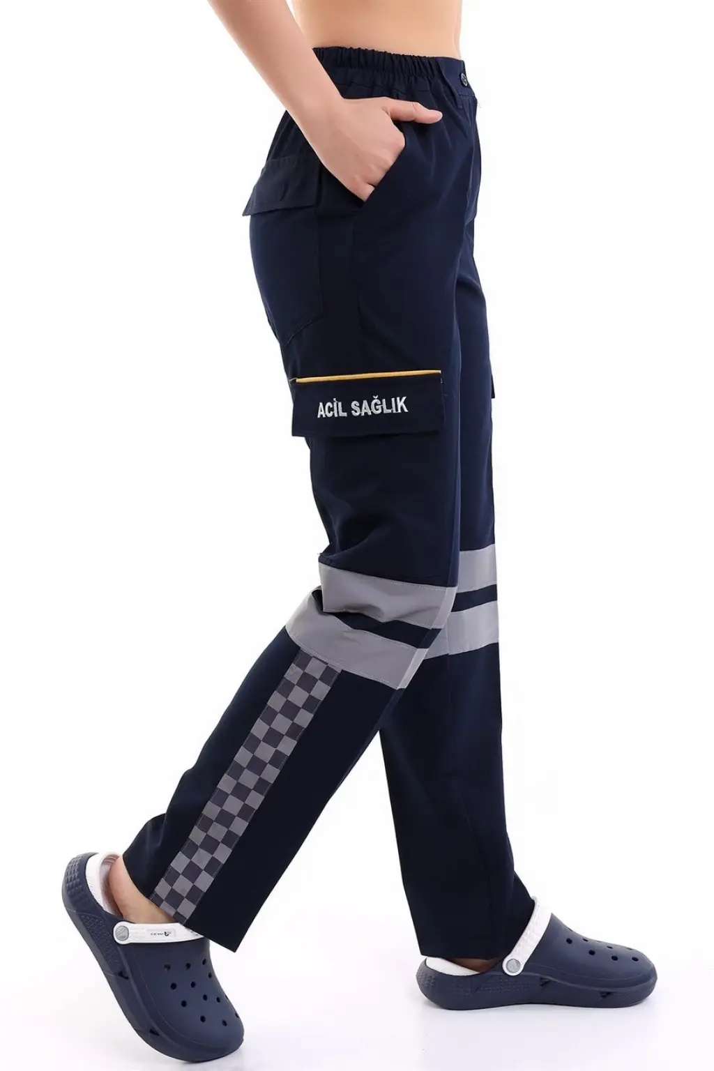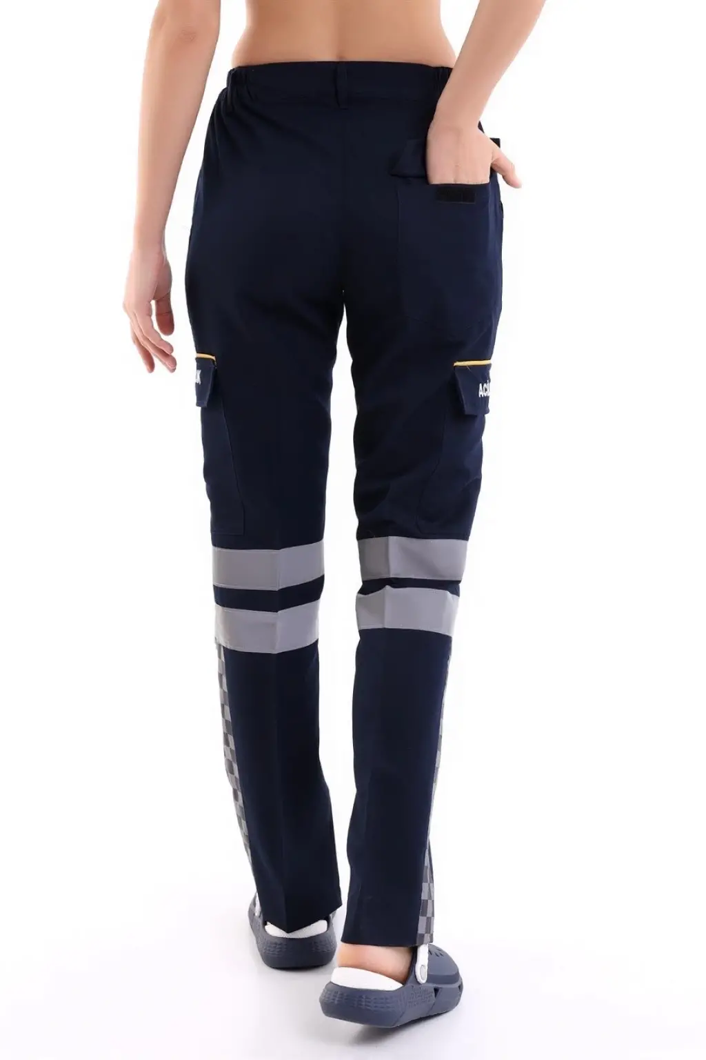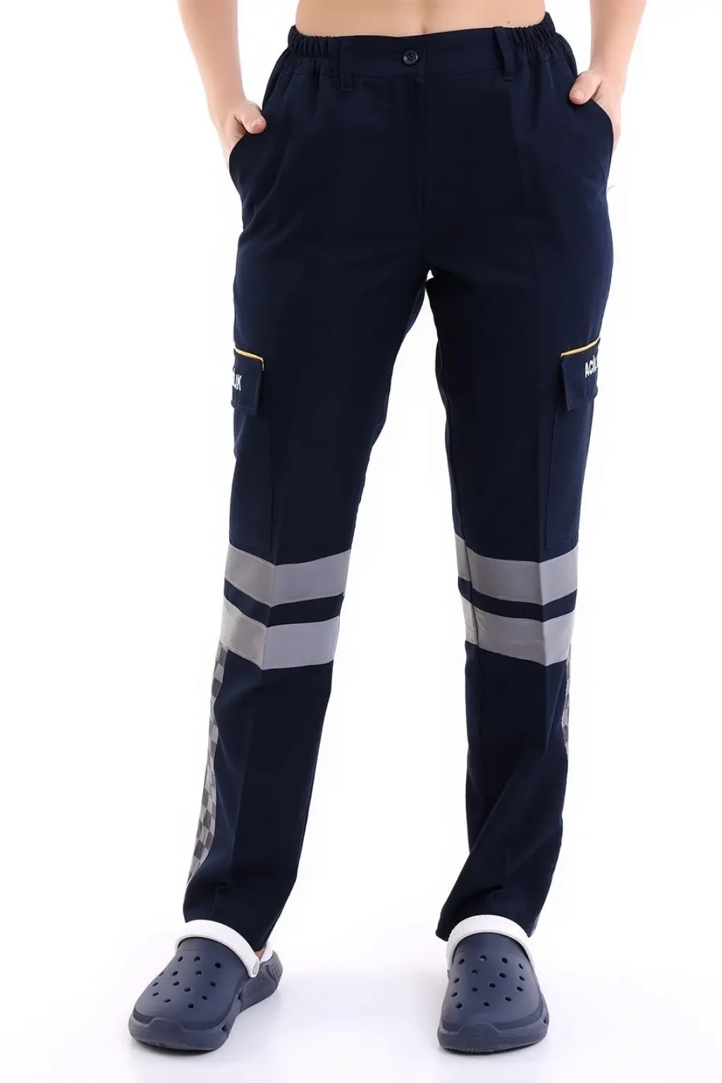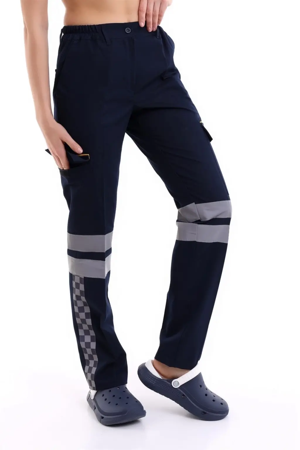 • Paçalarda 5 er cm lik iki sıra yüksek yansıtıcı özellikli reflektif şerit bulunmaktadır.Ayrıca sağ ve sol yanda dizden aşağıya damalı reflektif şeritler mevcuttur.