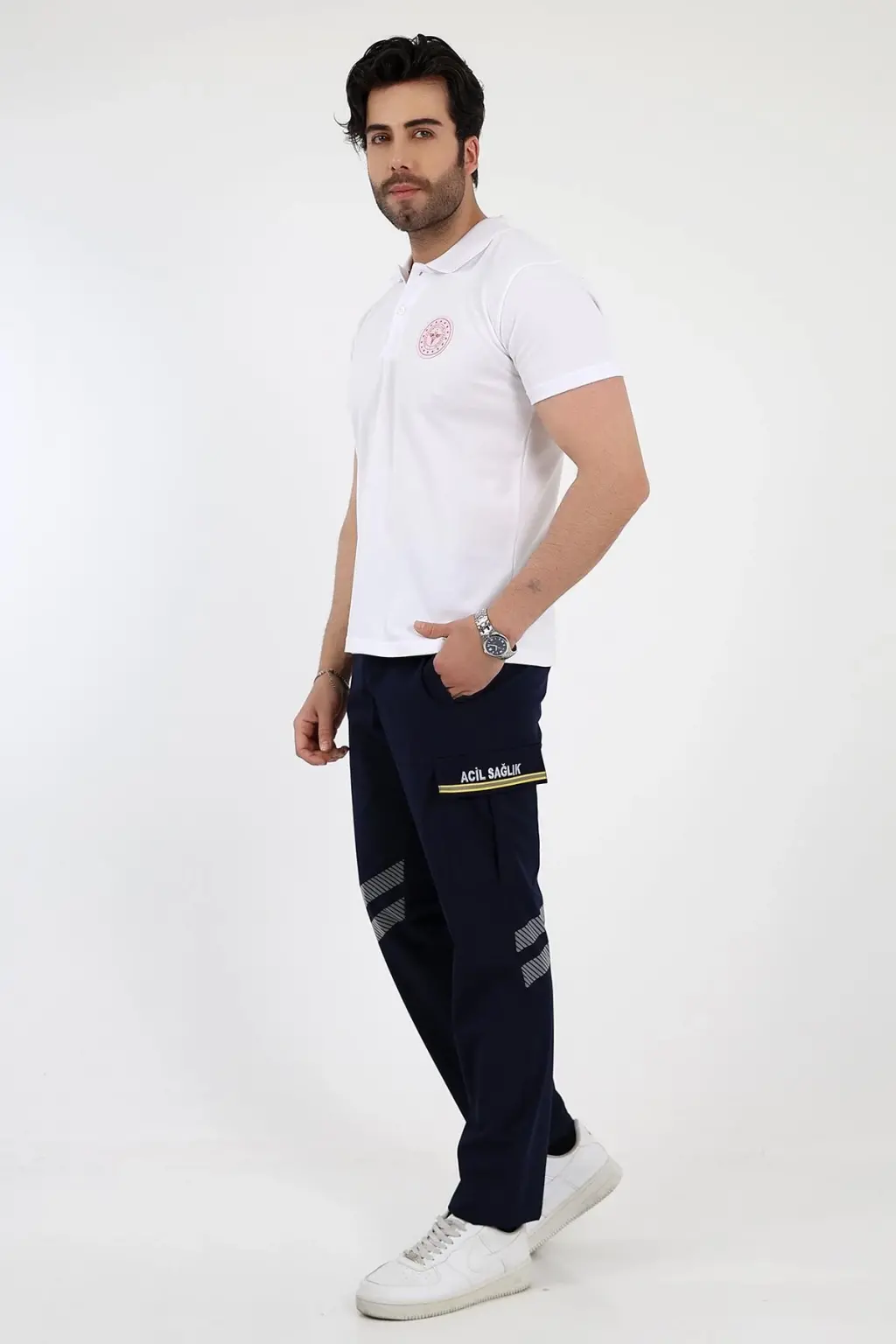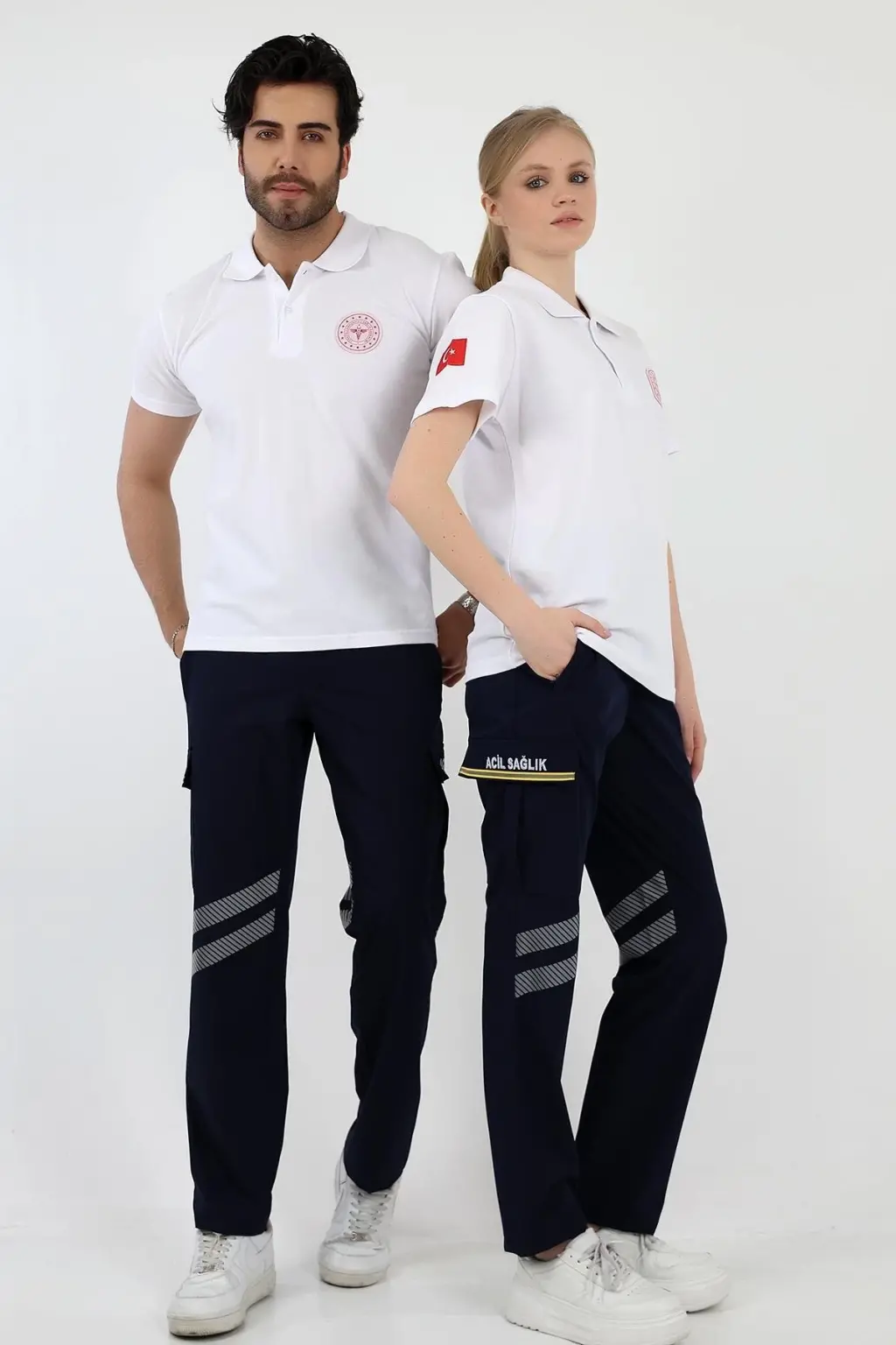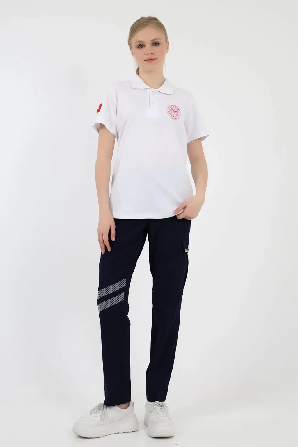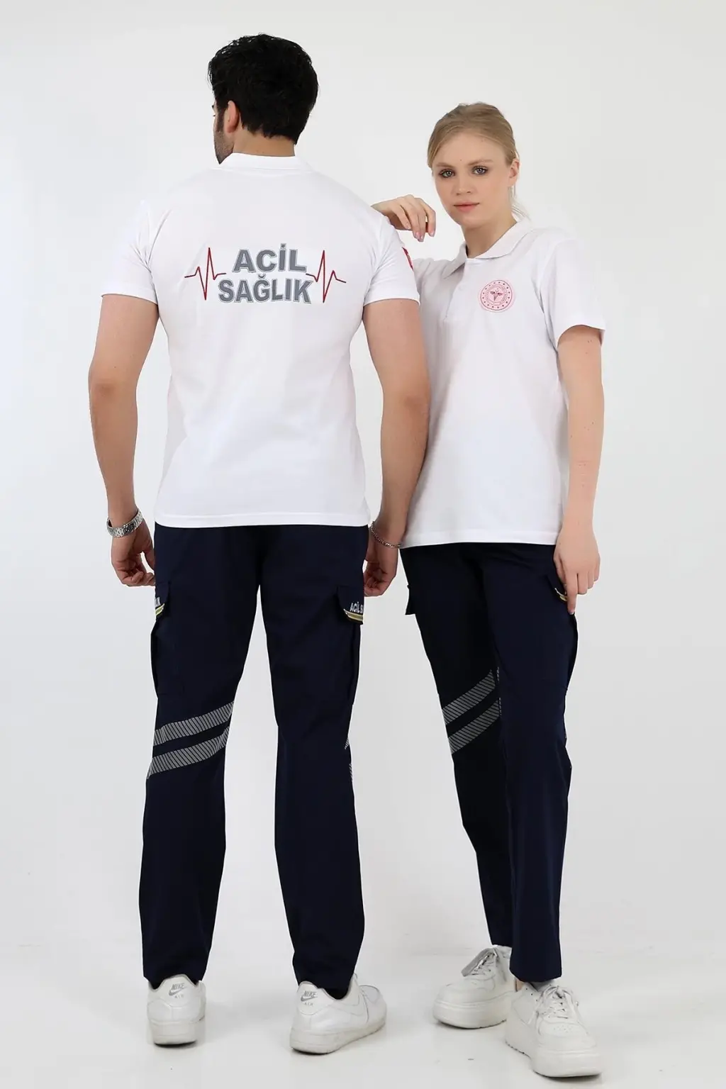 Acil Sağlık Yakalı Unisex Tshirt Kısa Kol Nakışlı - Beyaz