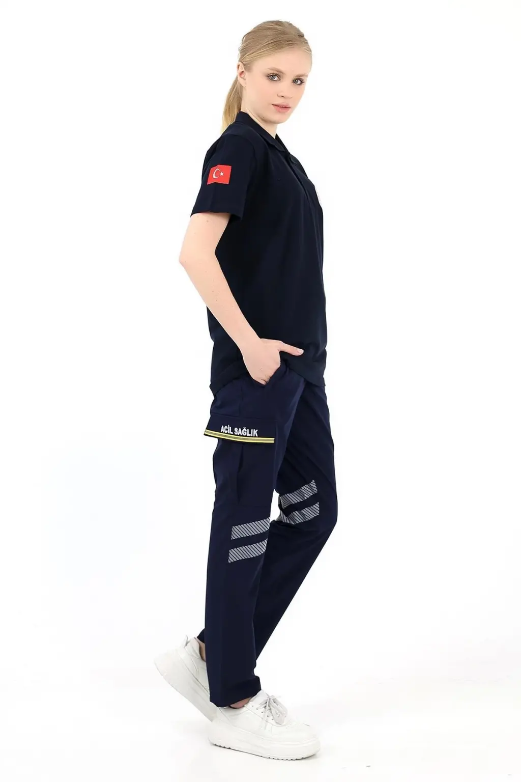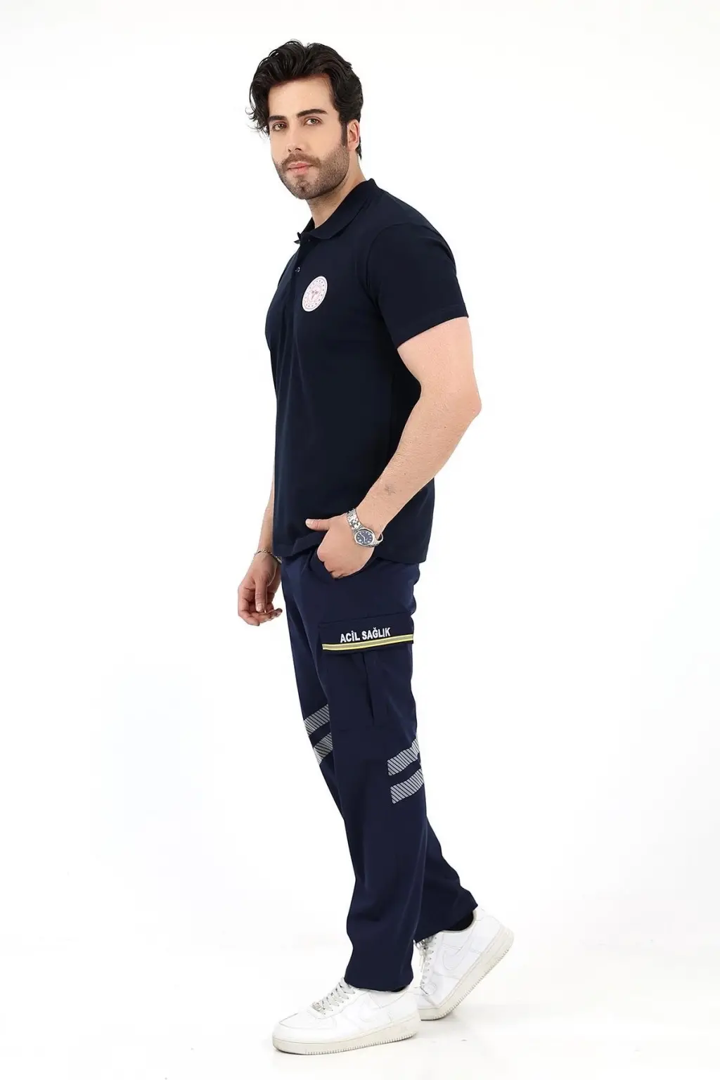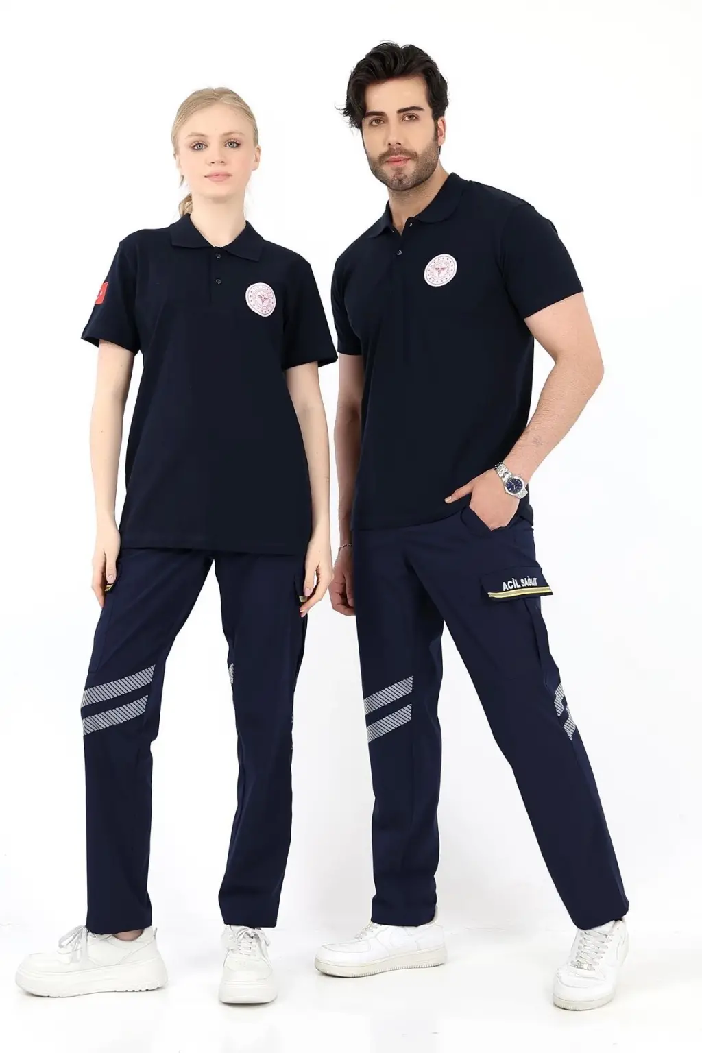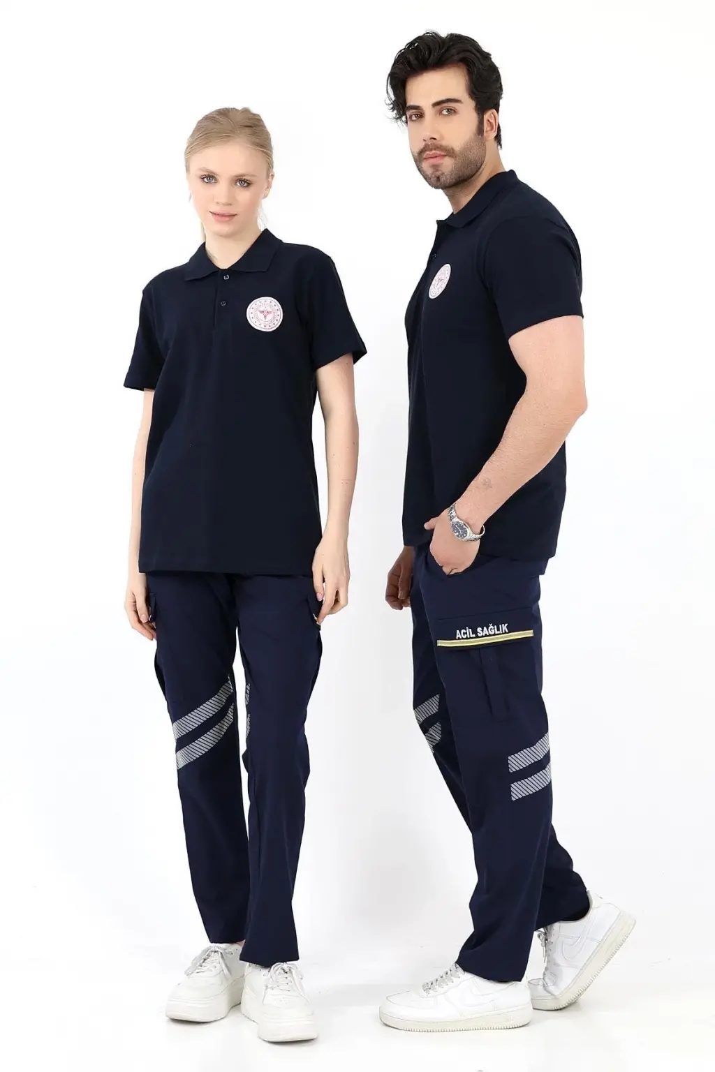 Acil Sağlık Yakalı Unisex Tshirt Kısa Kol Nakışlı - Lacivert