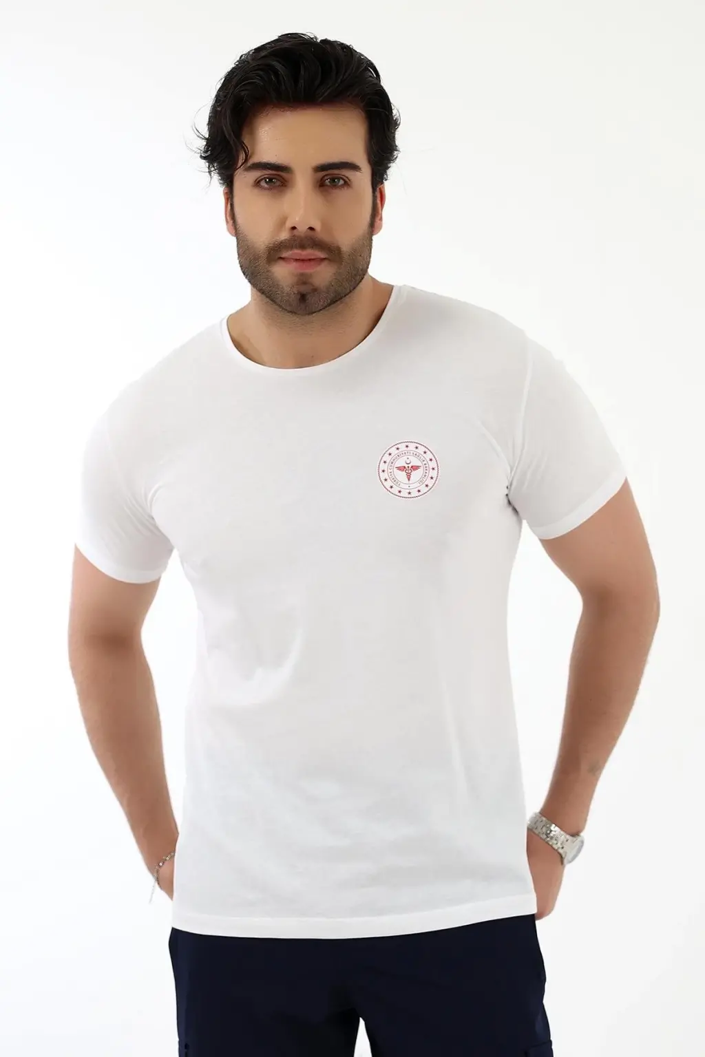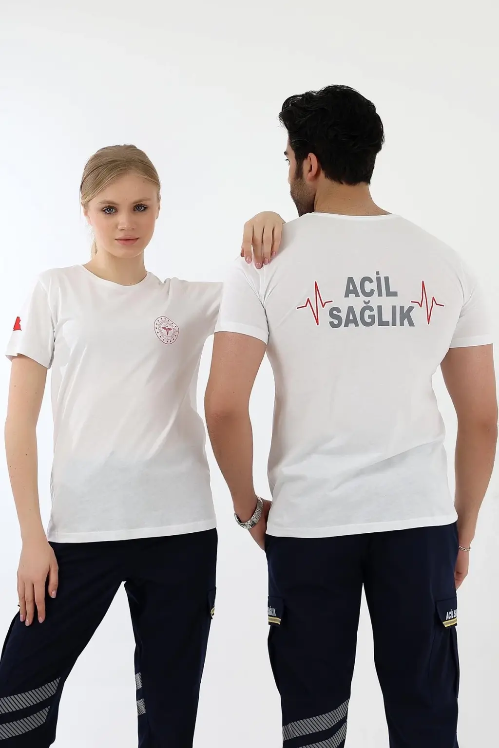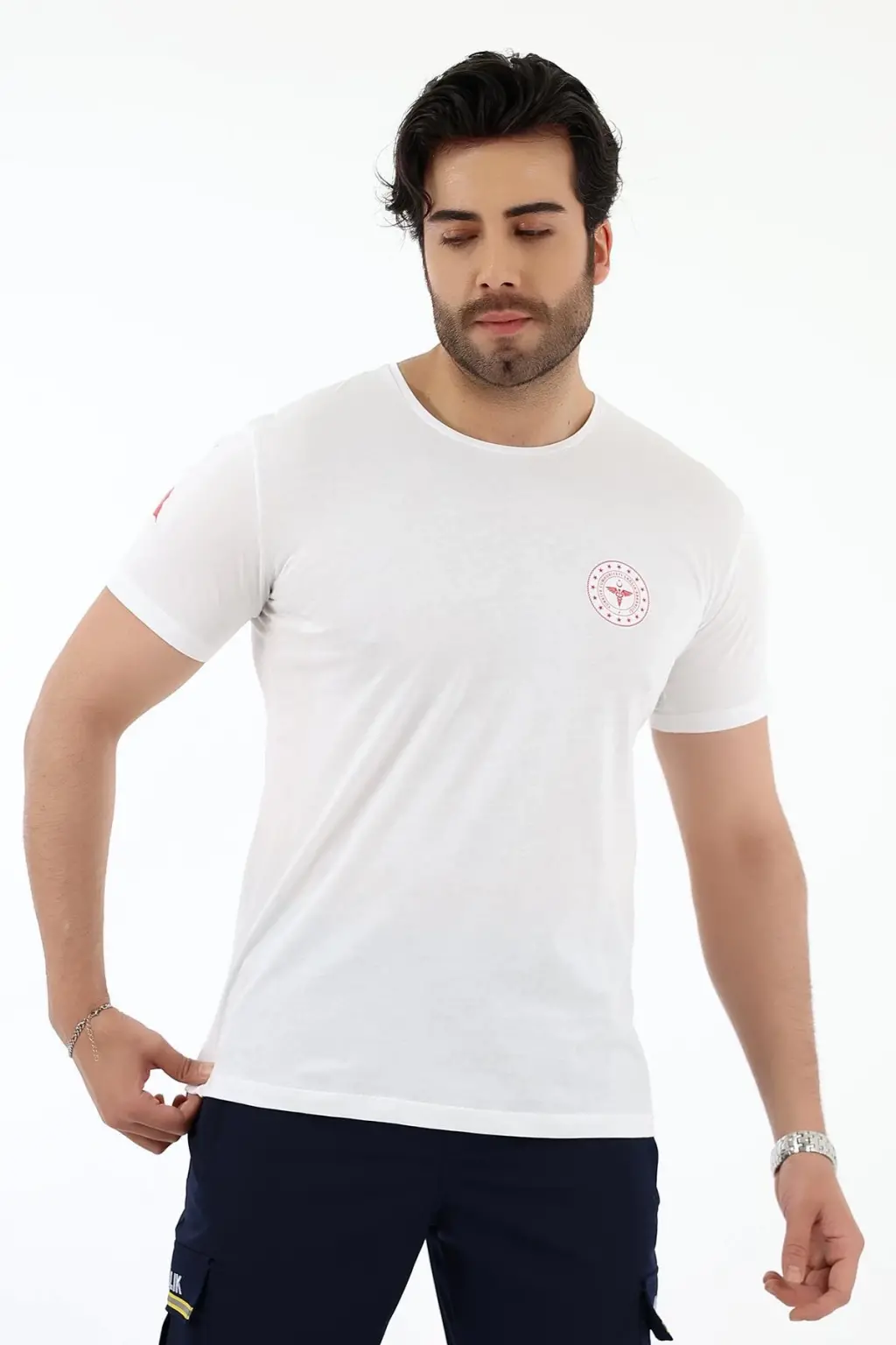 Acil Sağlık Yuvarlak Yaka Penye Kısa Kol Tshirt - Beyaz