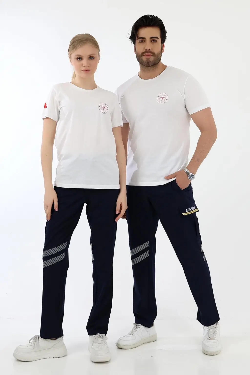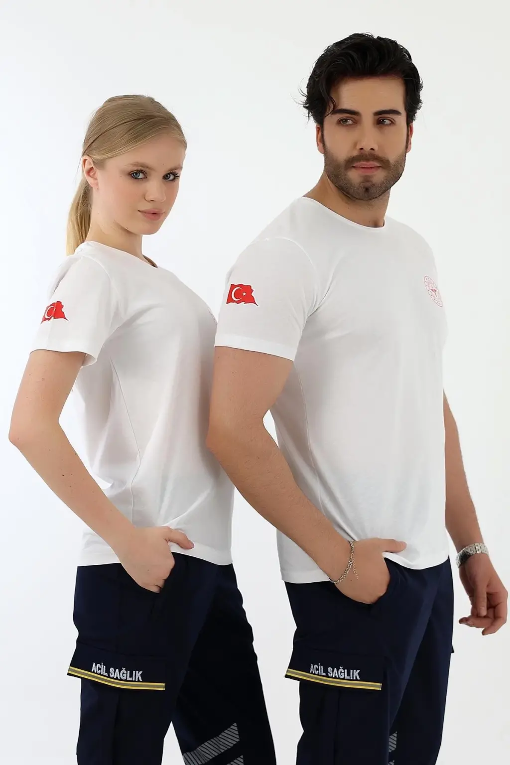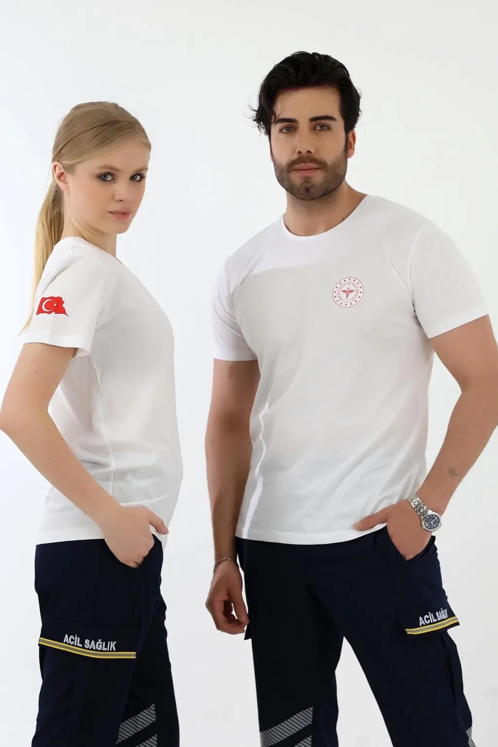 Acil Sağlık Yuvarlak Yaka Penye Kısa Kol Tshirt - Beyaz