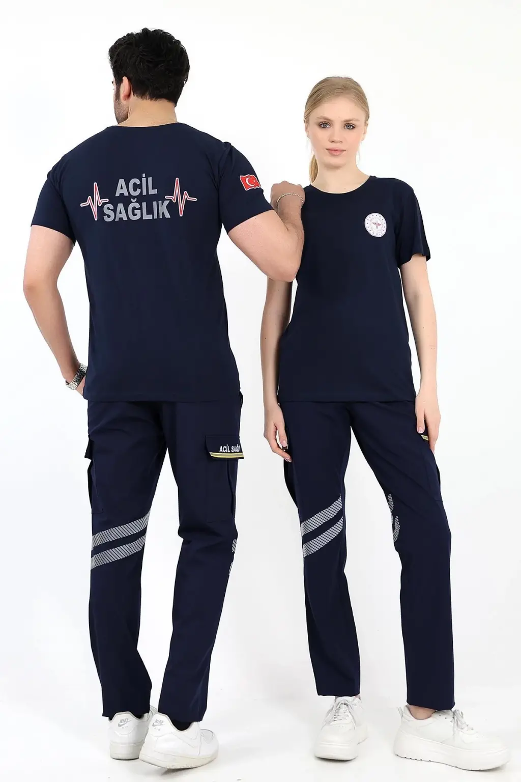 Acil Sağlık Yuvarlak Yaka Penye Kısa Kol Tshirt - Lacivert