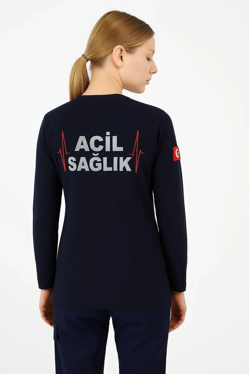 Acil Sağlık Yuvarlak Yaka Penye Uzun Kol Tshirt - Lacivert