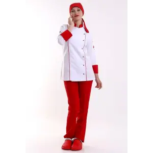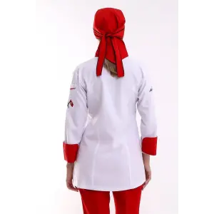 Kadın Aşçı Ceket 01 - Beyaz-kırmızı Biye