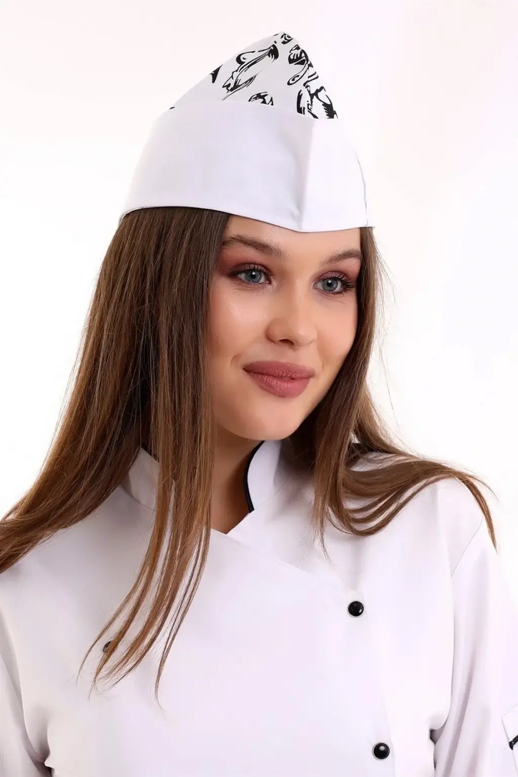 Aşçı Kayık Kep - 3007 Beyaz Kaşık Desenli