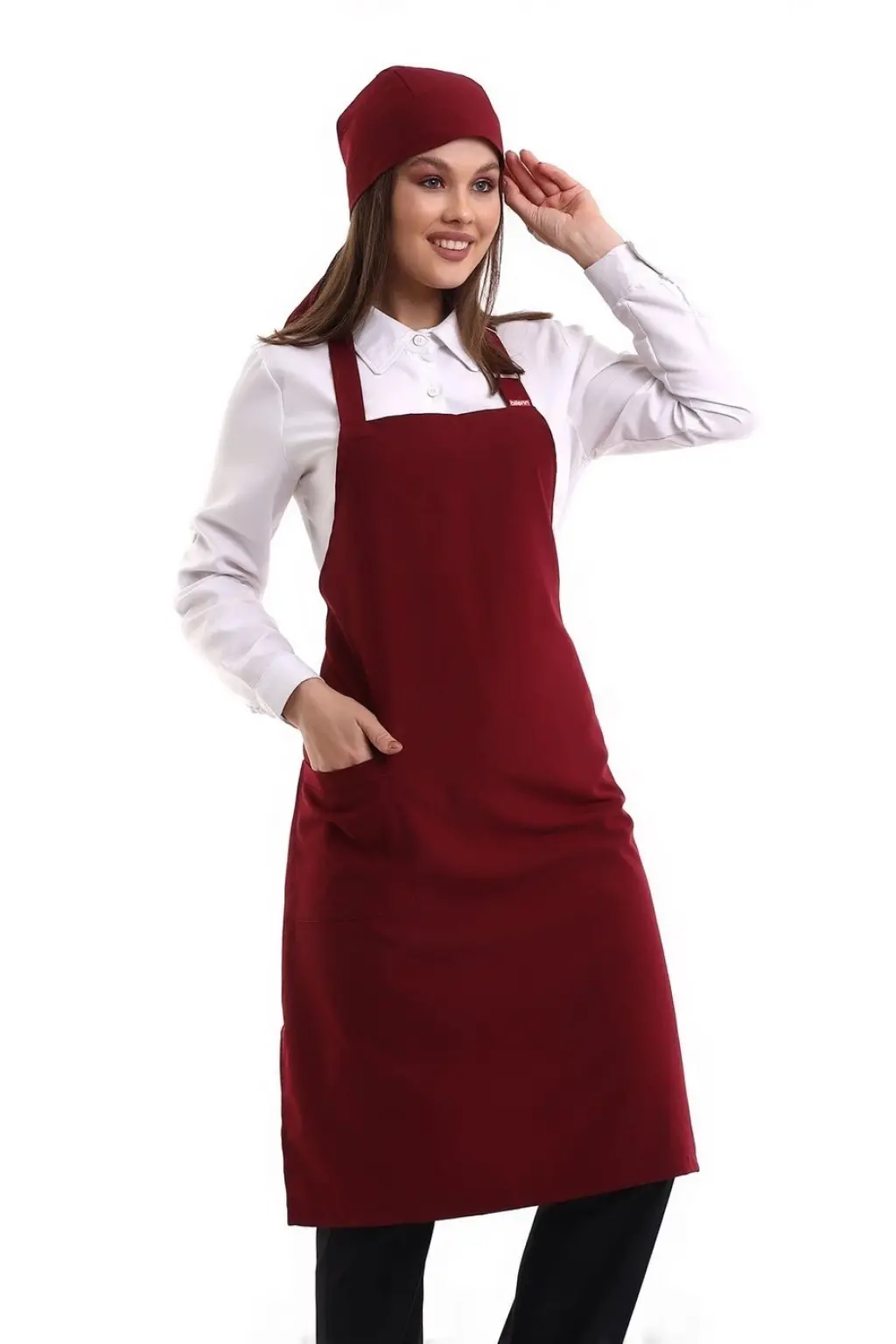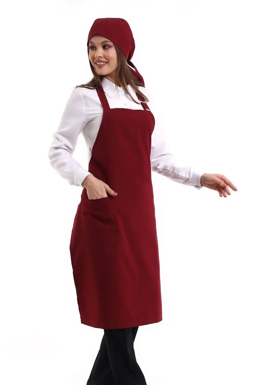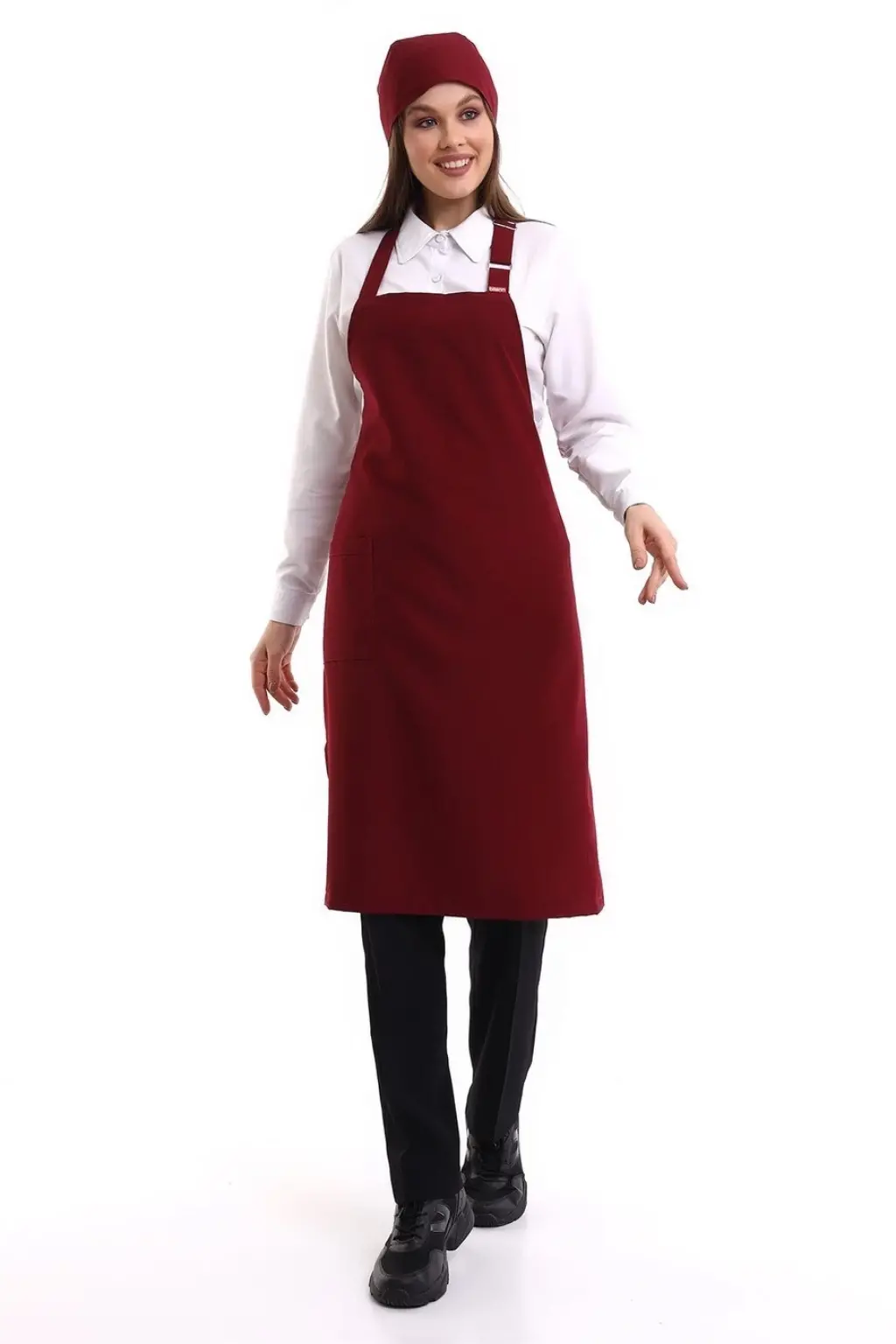 Askılı Önlük Cepli - 19 Bordo