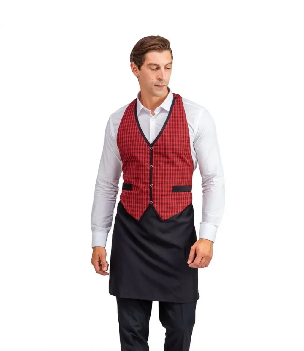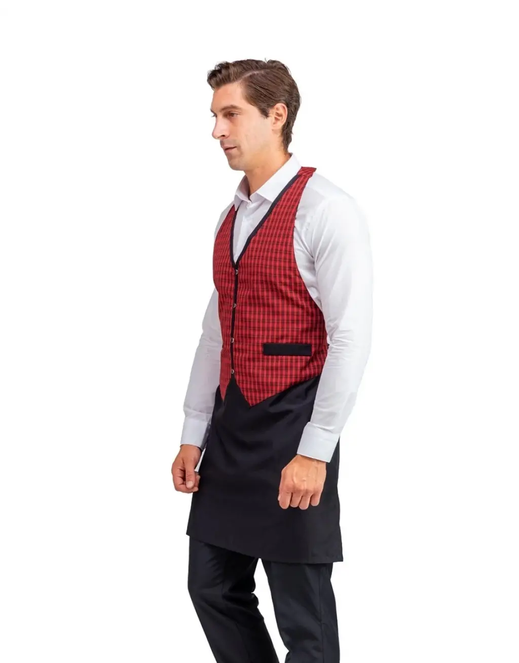 Askılı Yelekli Garson Önlüğü - 401 Kırmızı Kareli
