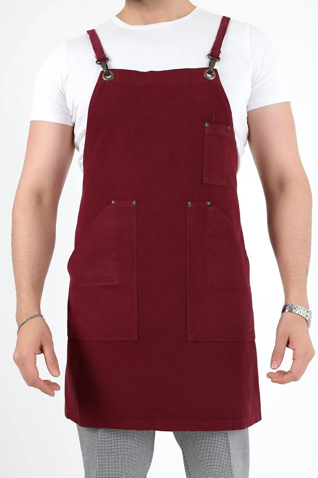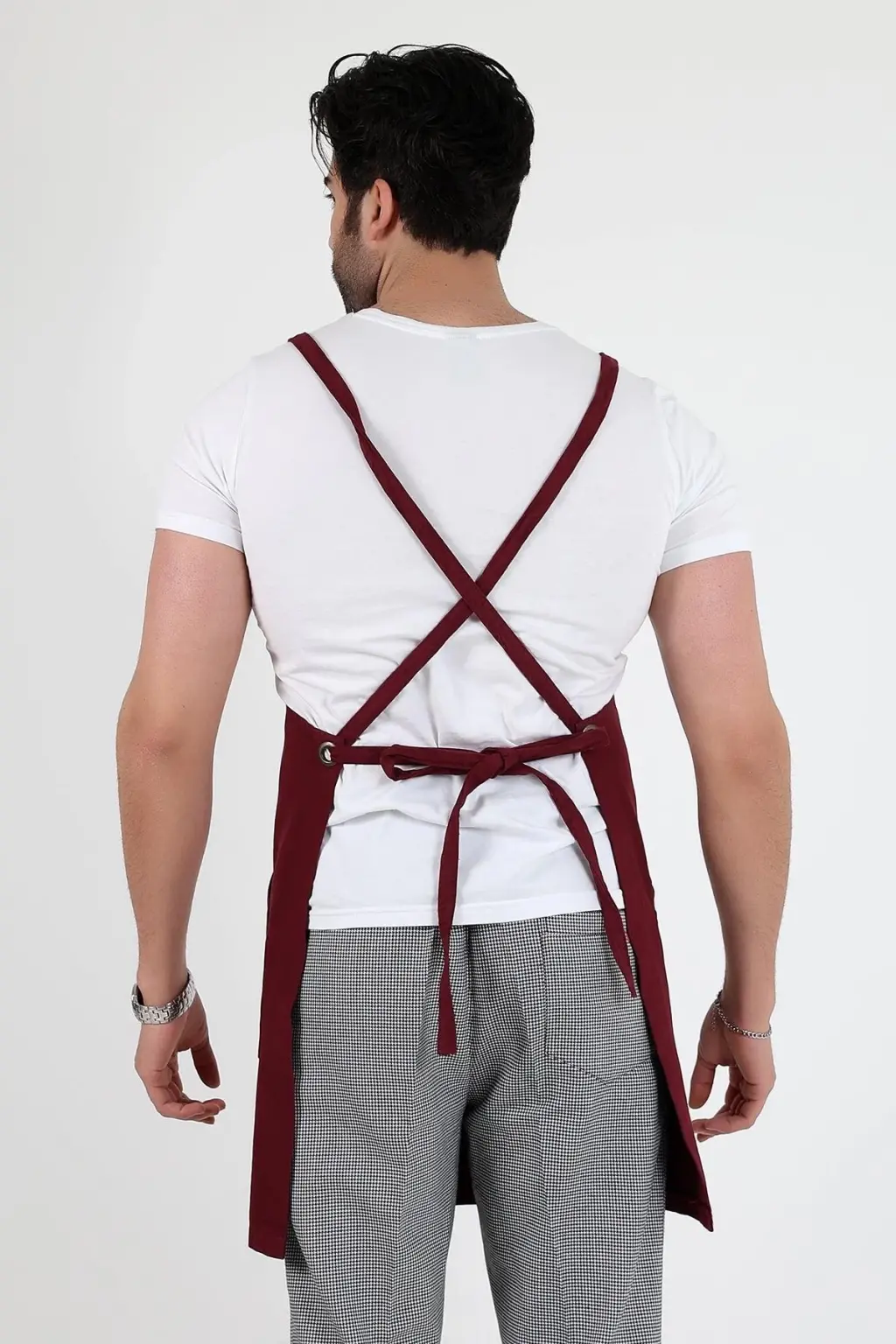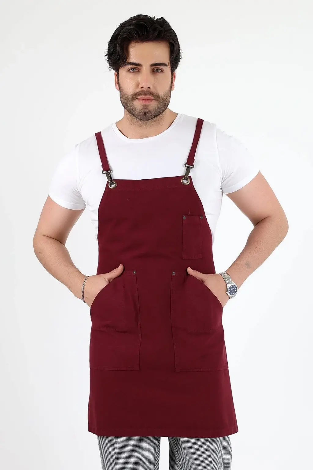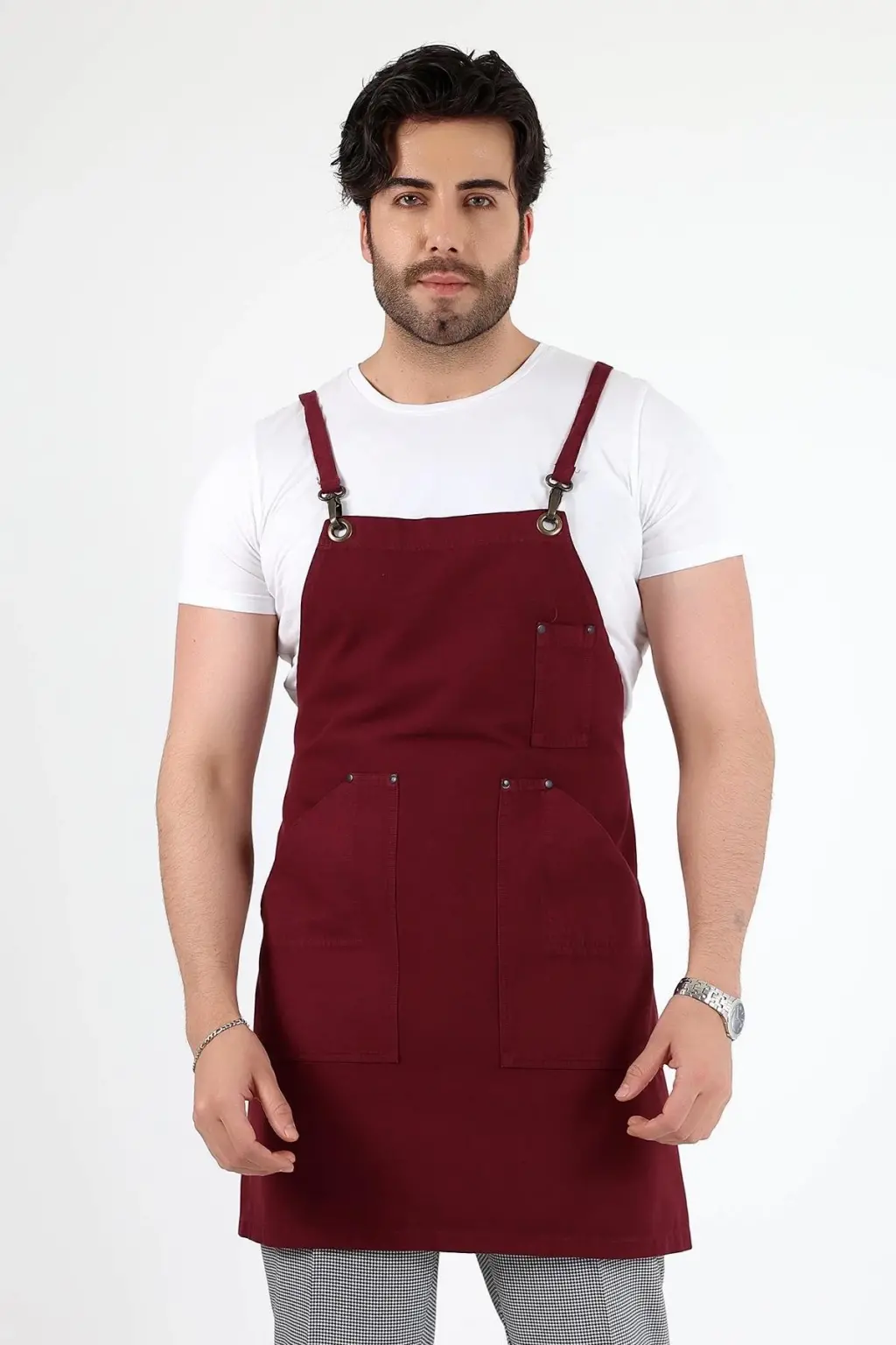 Barista Askılı Önlük Kanguru Cepli - Bordo