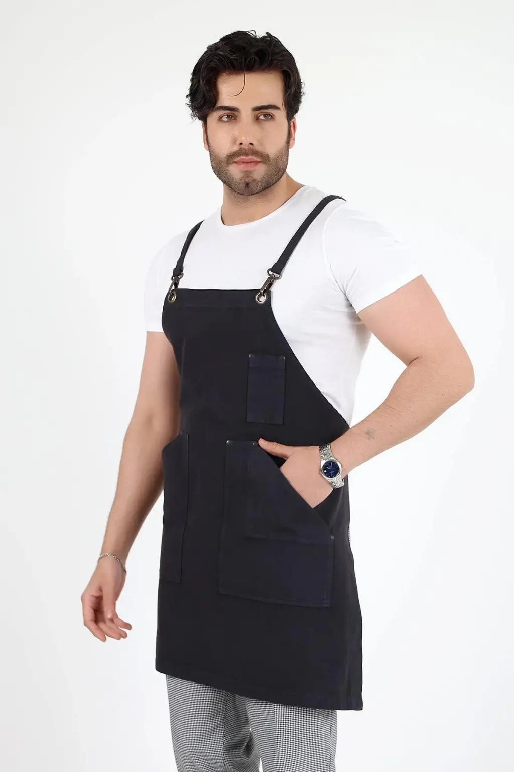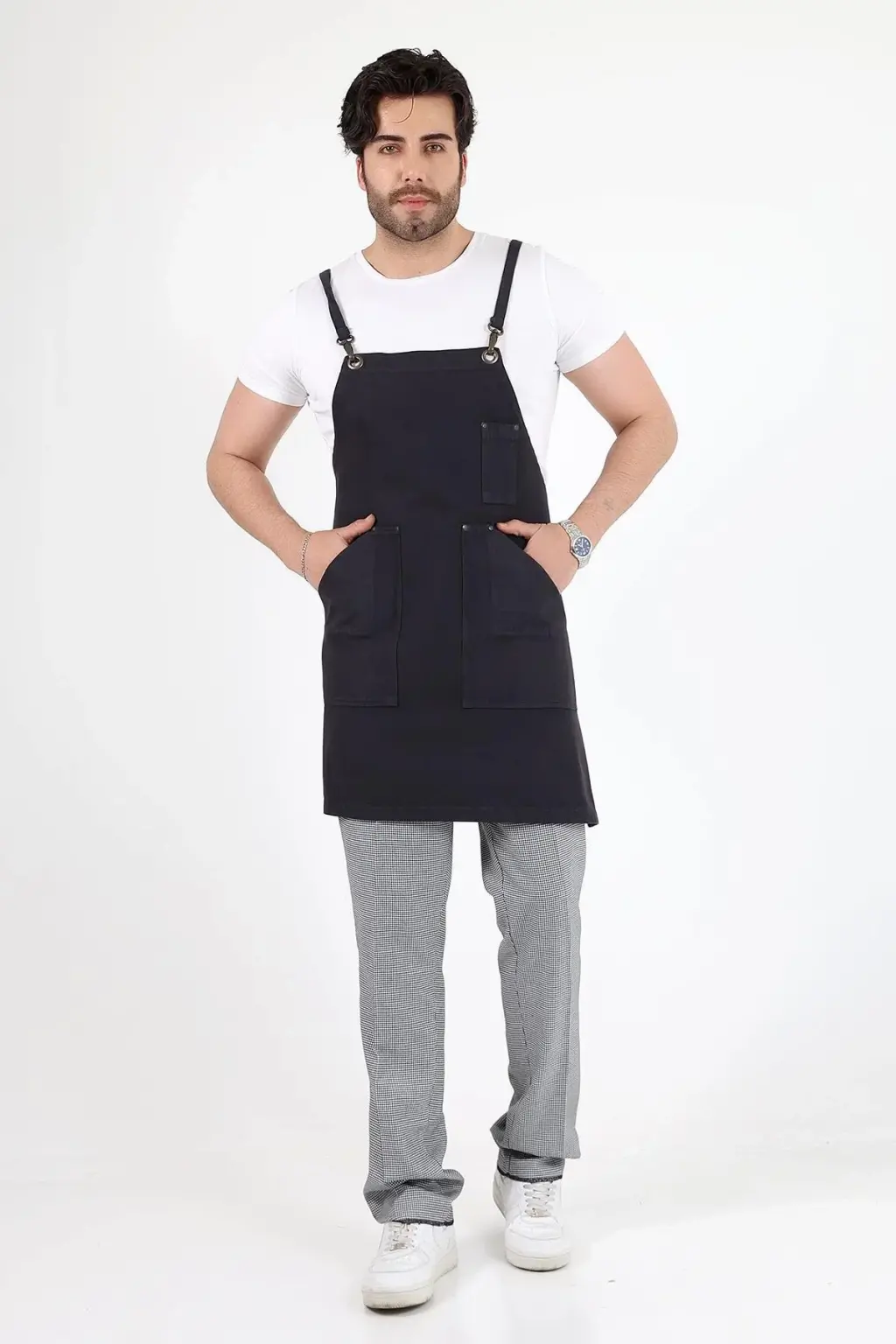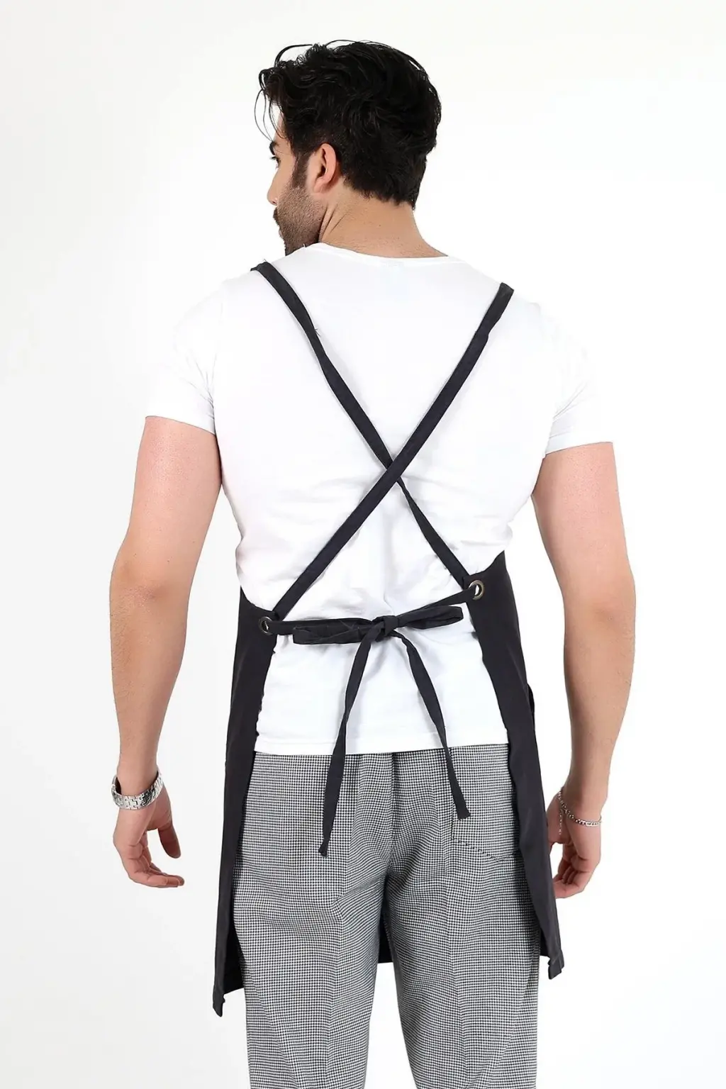 Barista Askılı Önlük Kanguru Cepli - Füme