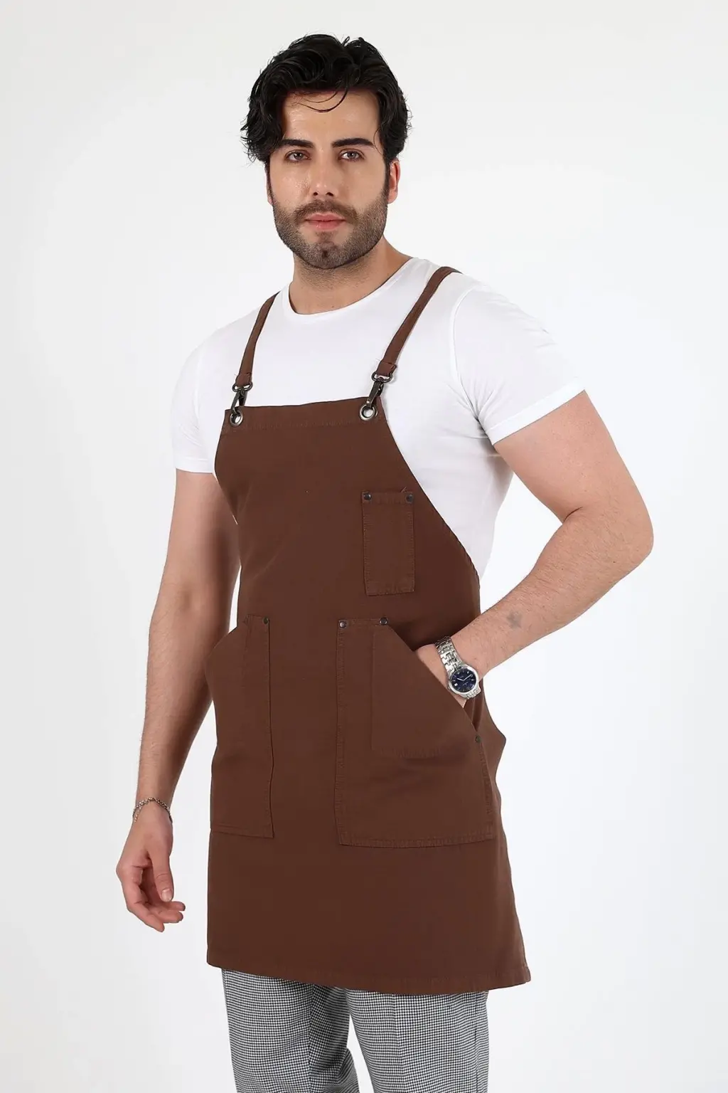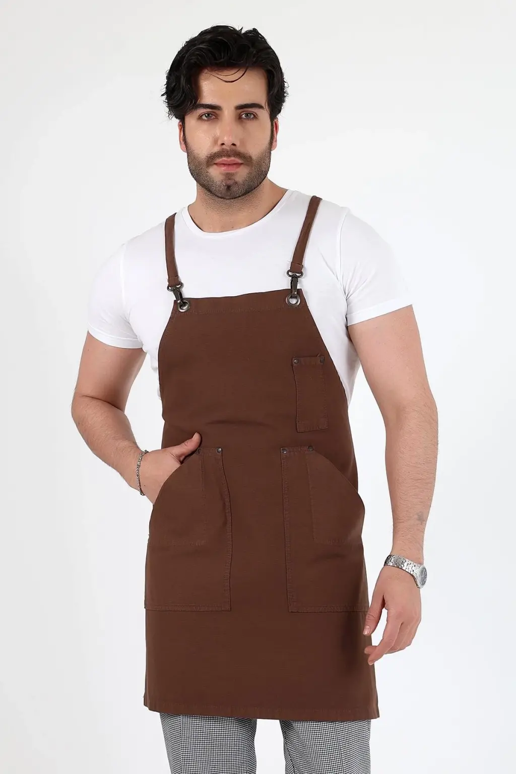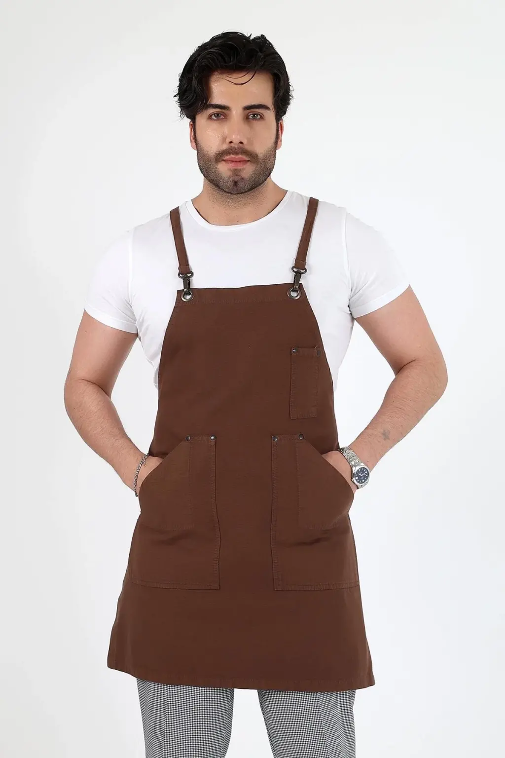 Barista Askılı Önlük Kanguru Cepli - Kahve