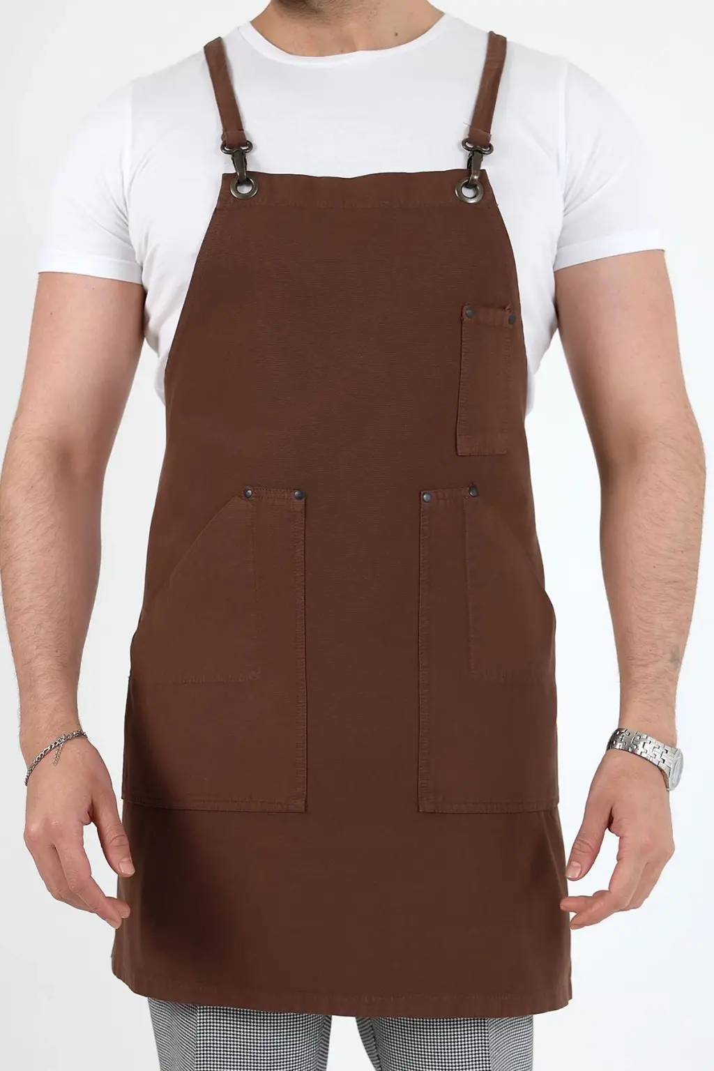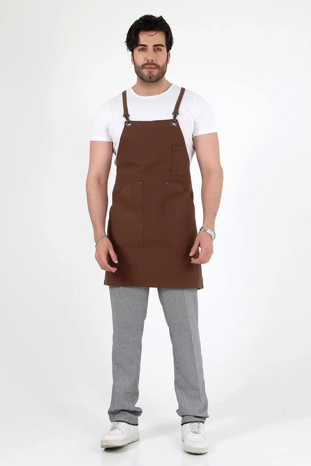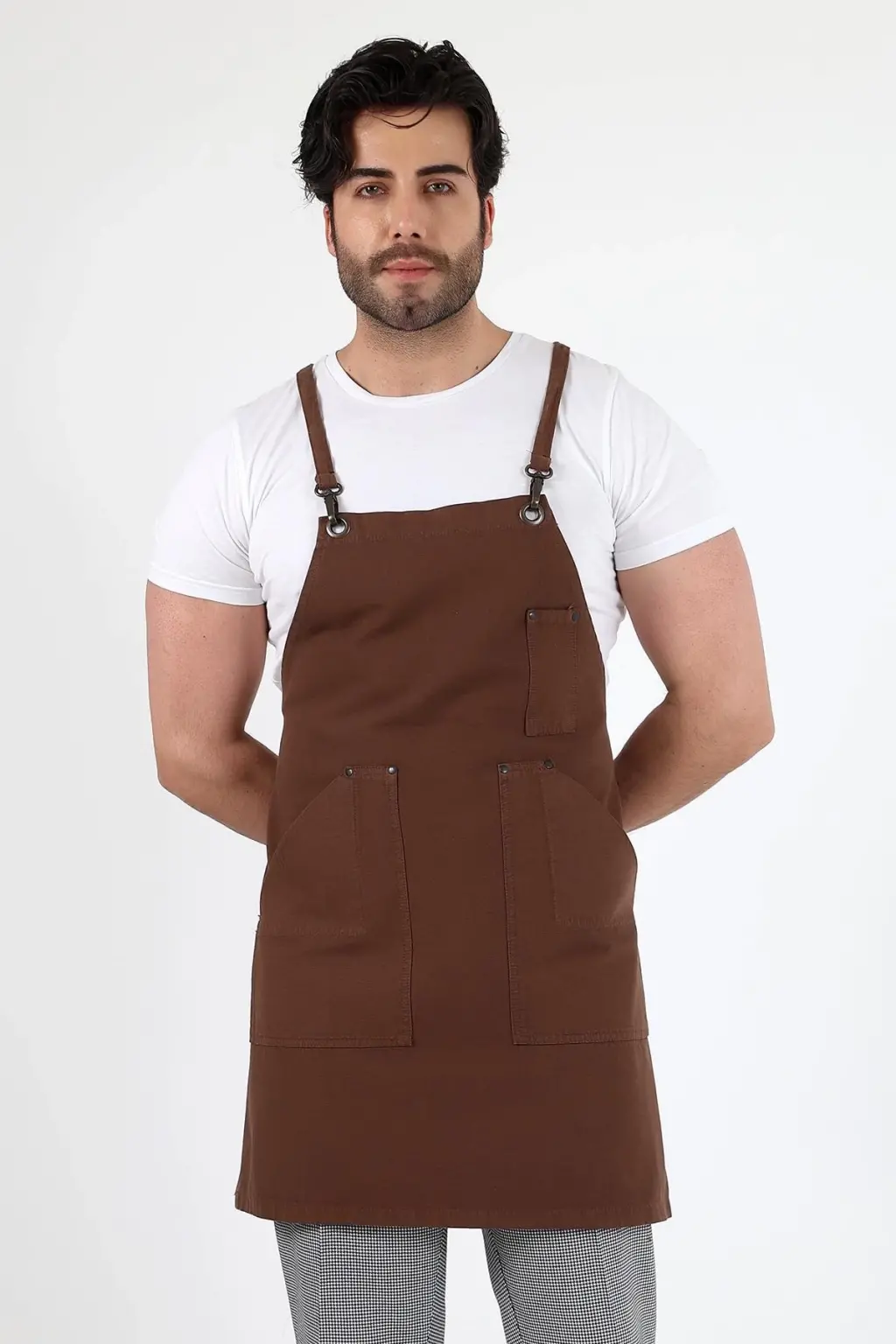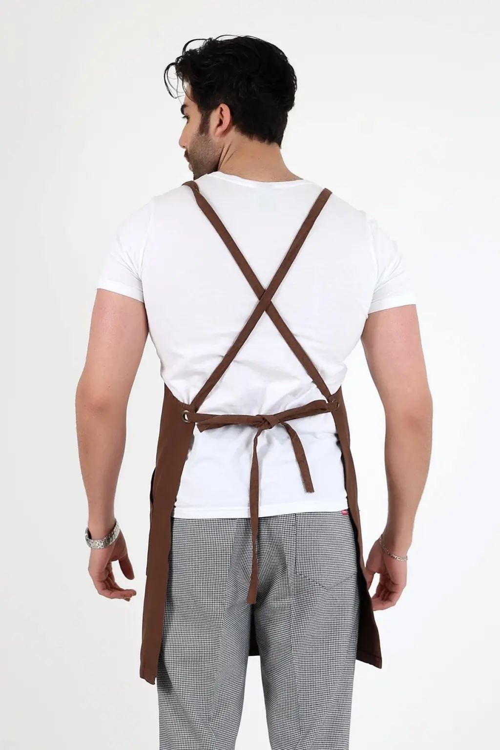 Barista Askılı Önlük Kanguru Cepli - Kahve