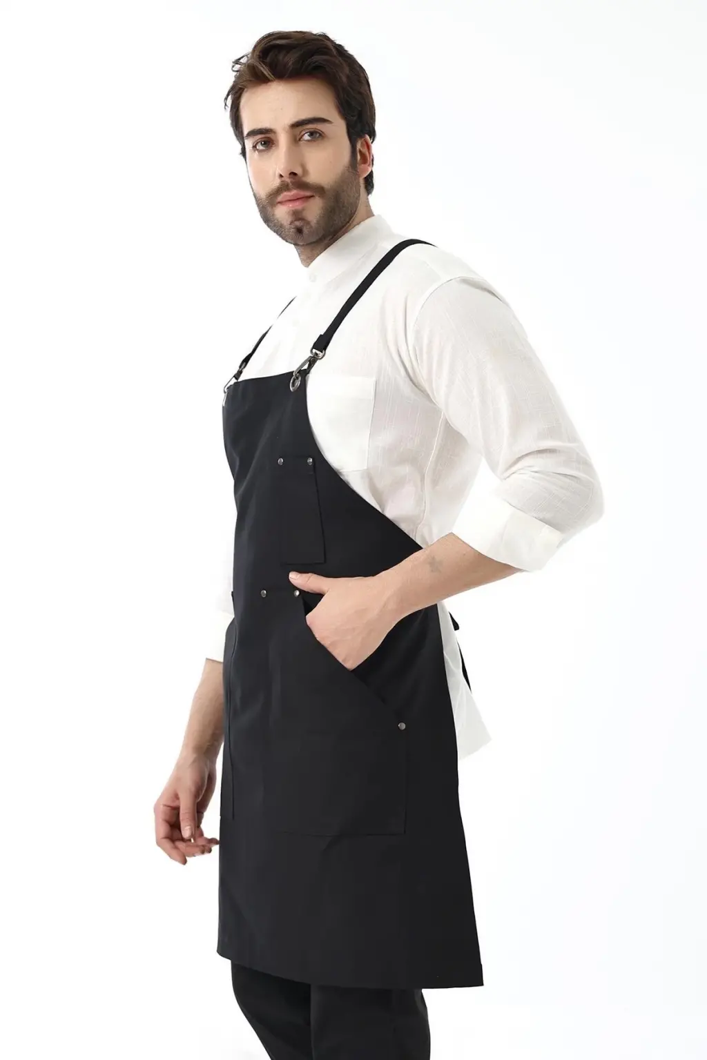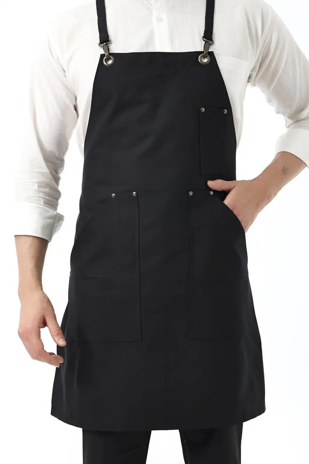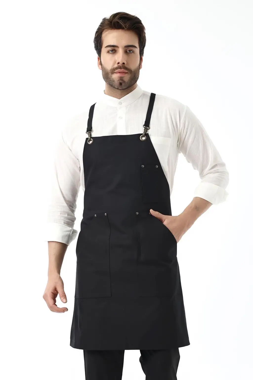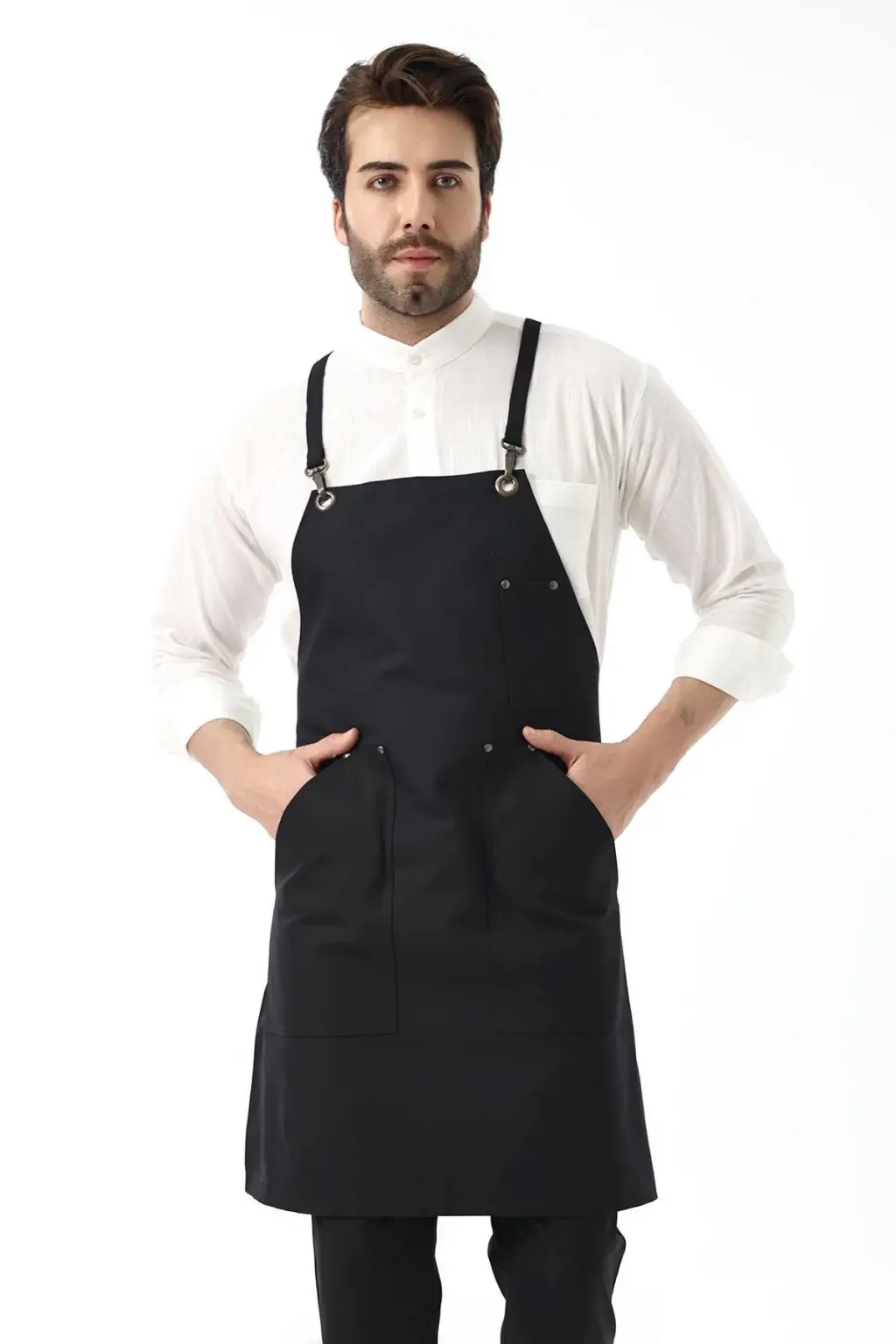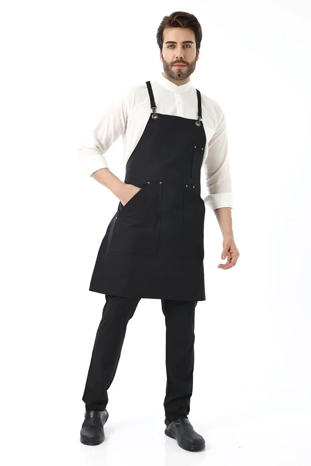 Barista Askılı Önlük Kanguru Cepli - Siyah