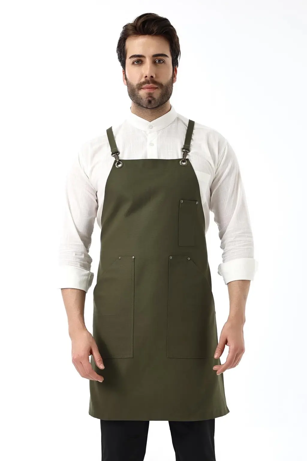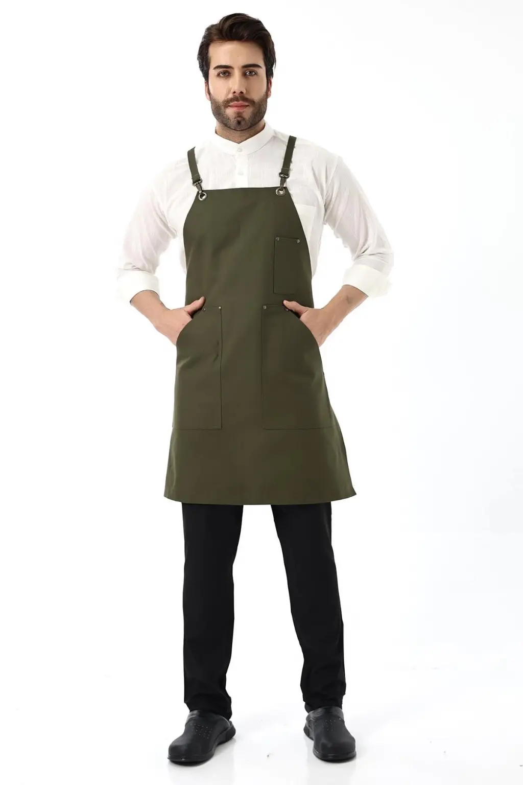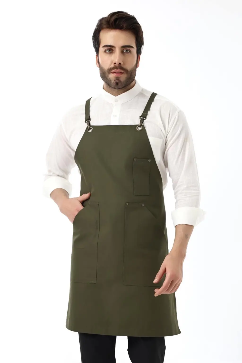 Barista Askılı Önlük Kanguru Cepli - Yeşil