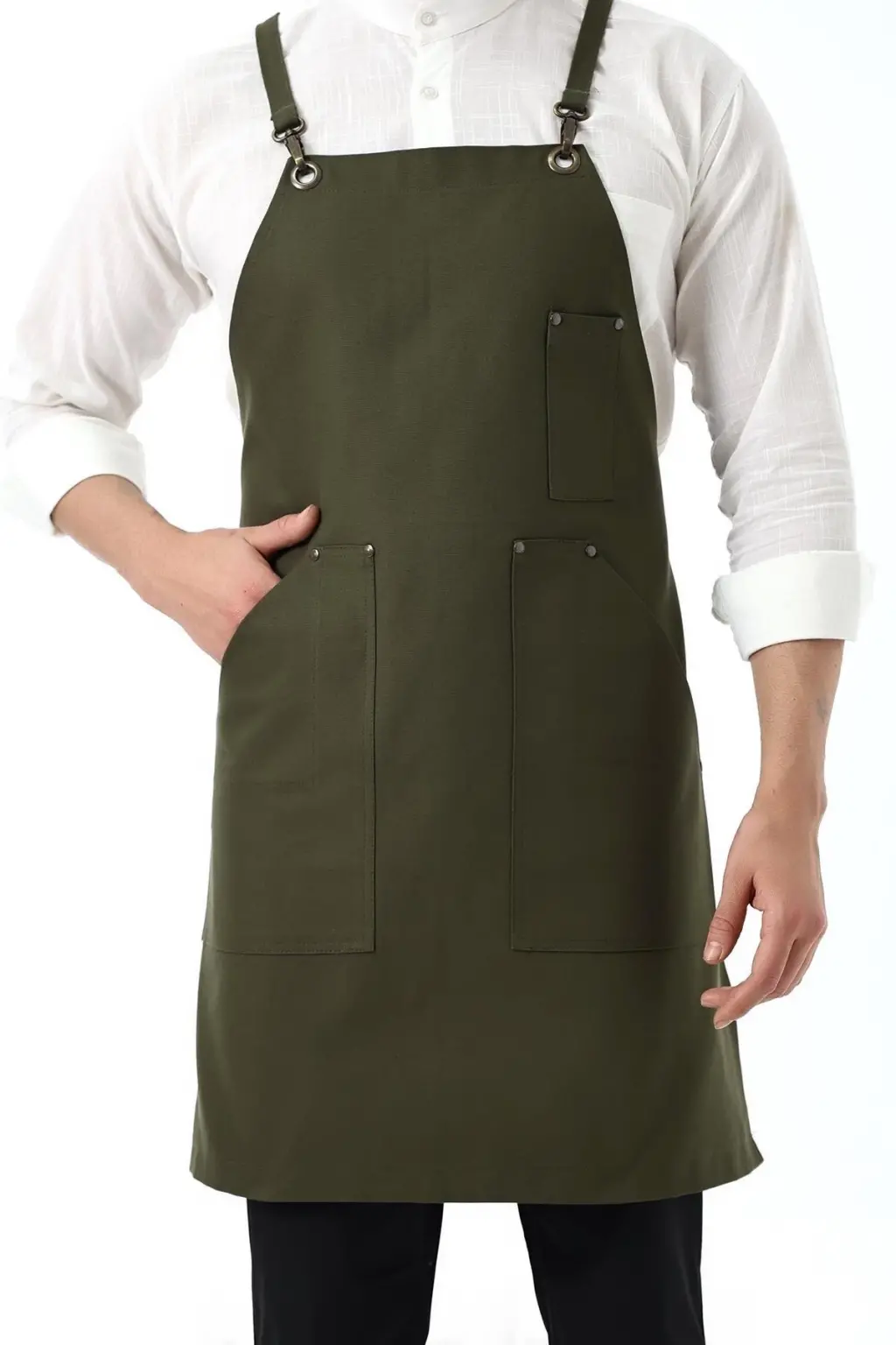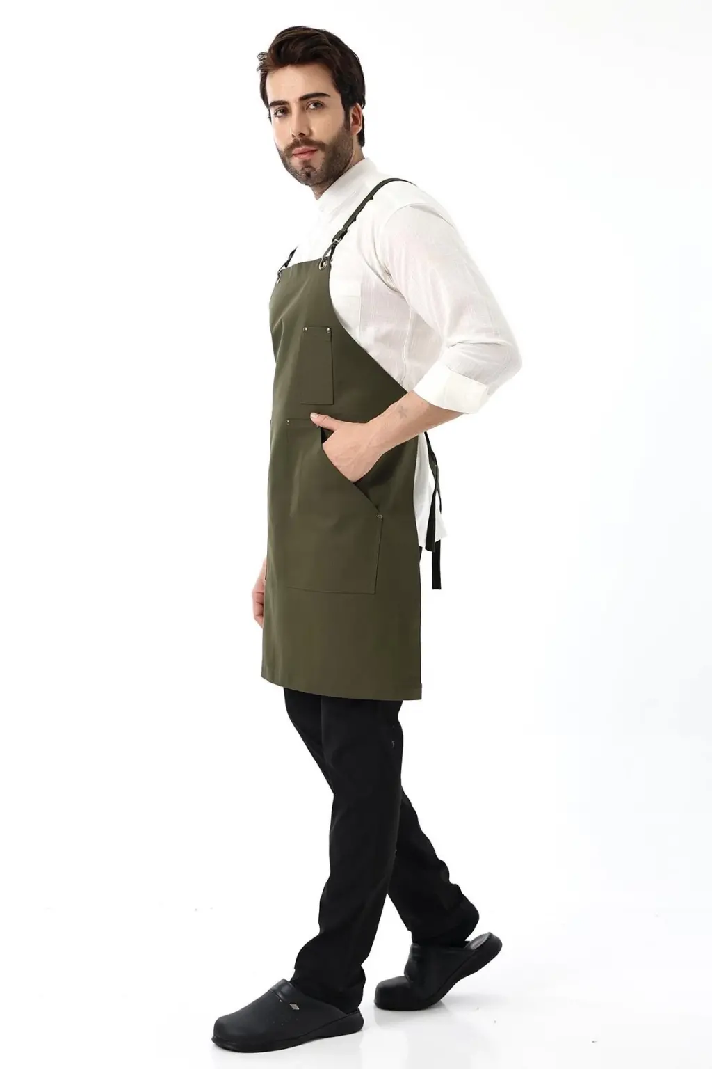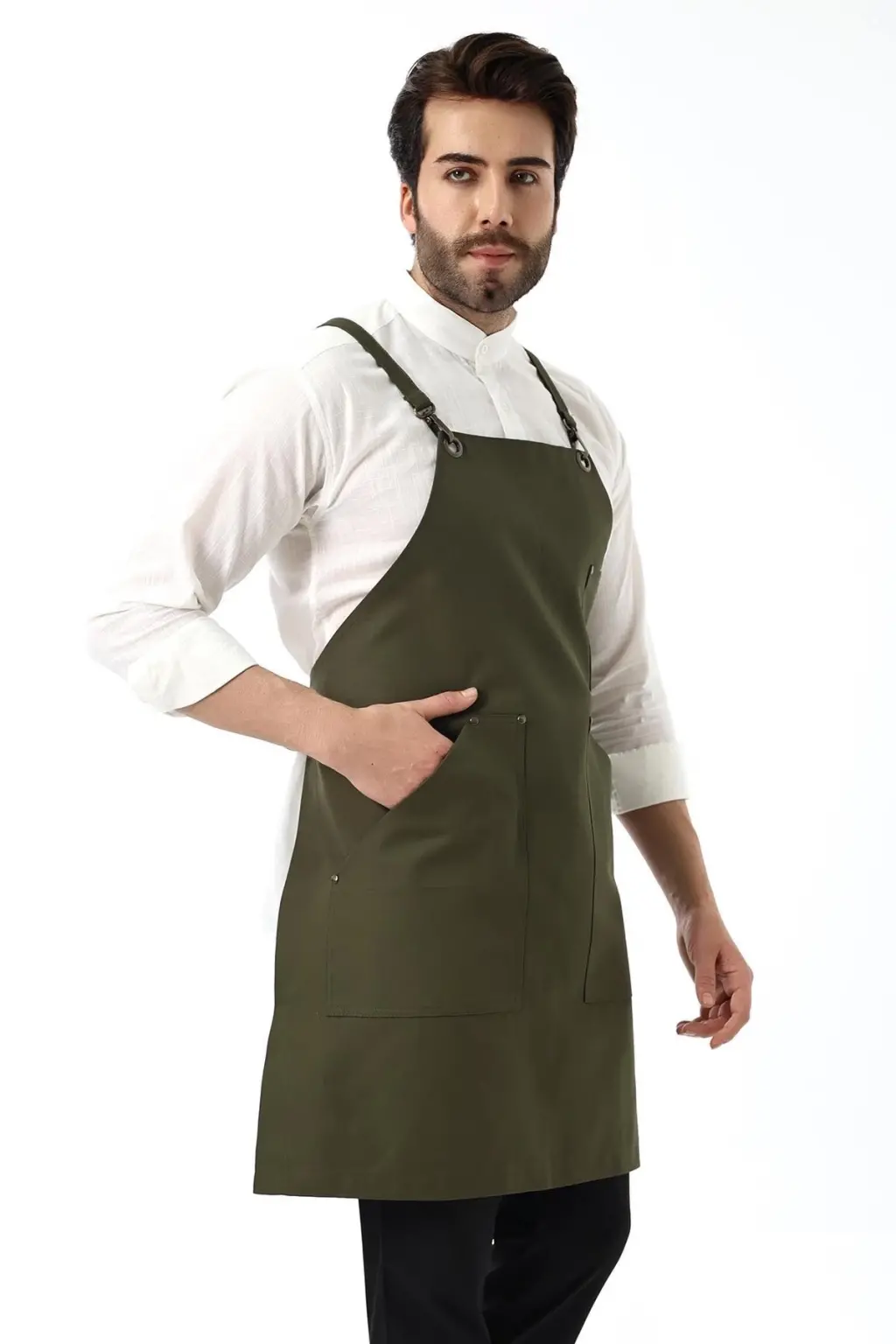 Barista Askılı Önlük Kanguru Cepli - Yeşil