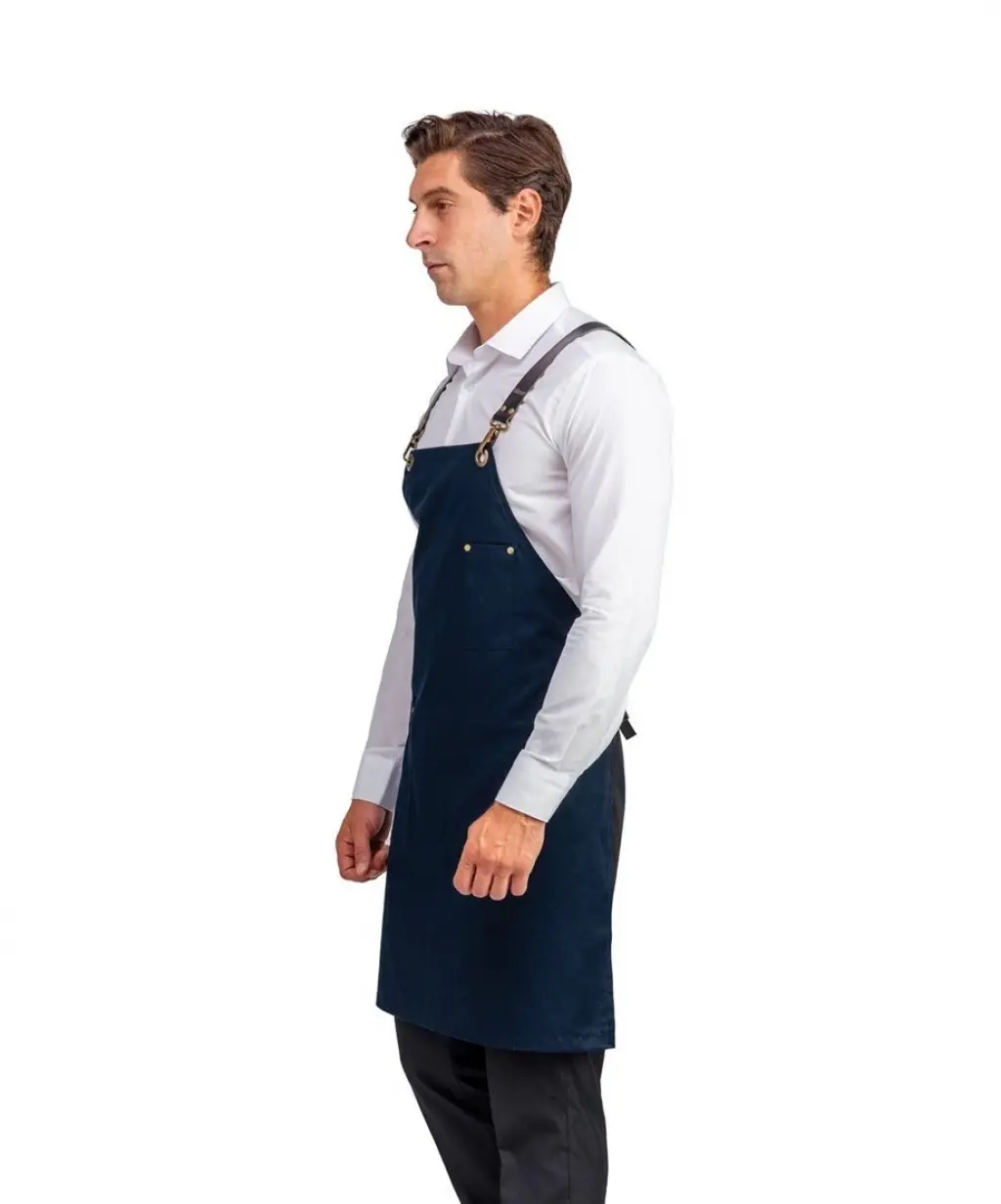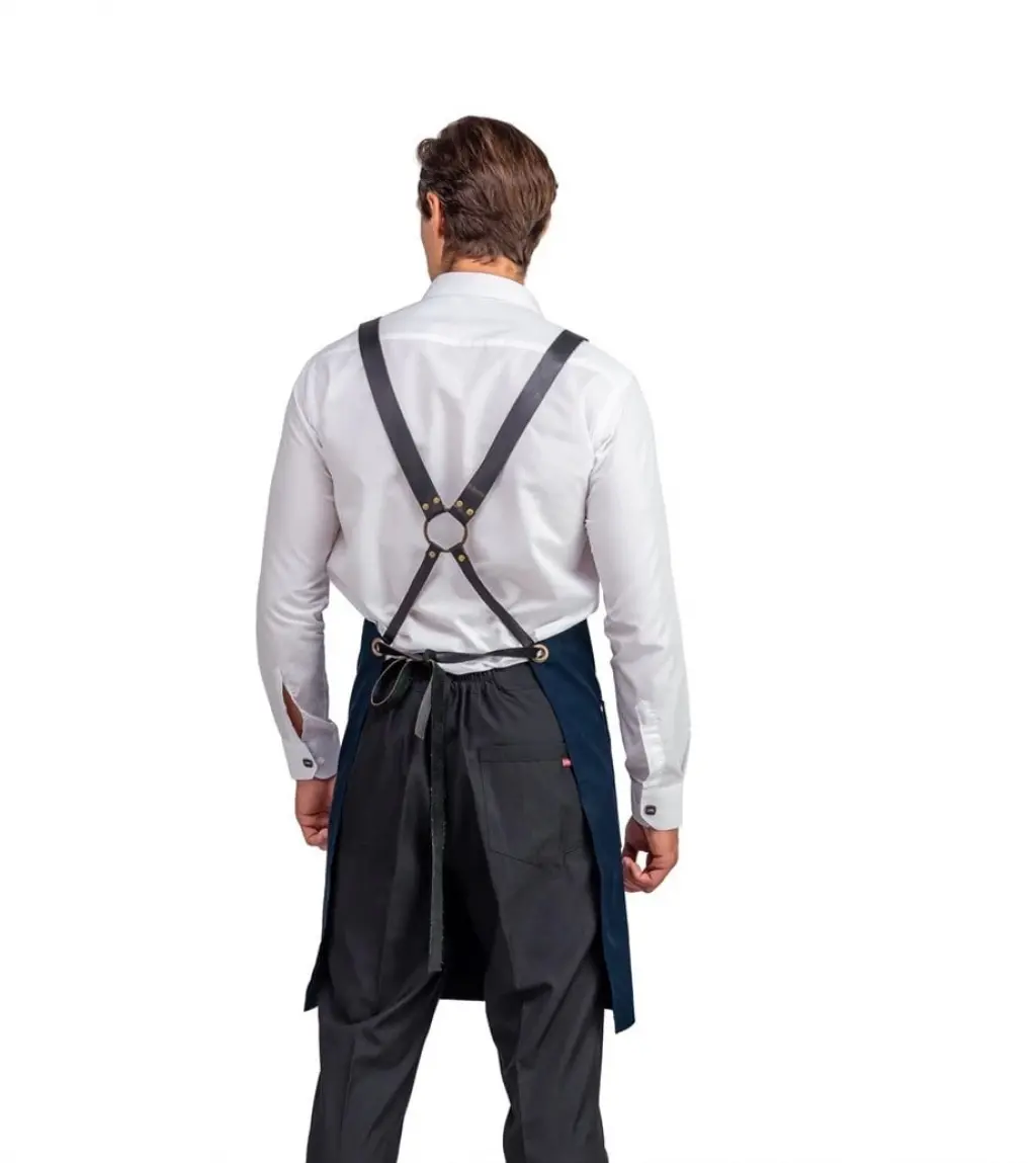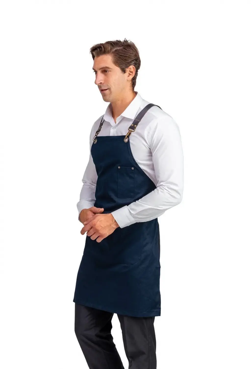 Barista Askılı Önlük Tek Cepli Deri Kemerli - Lacivert