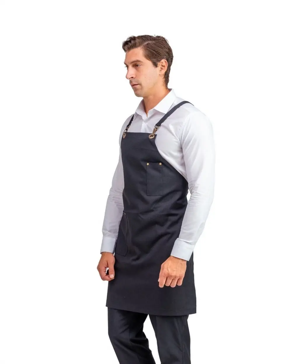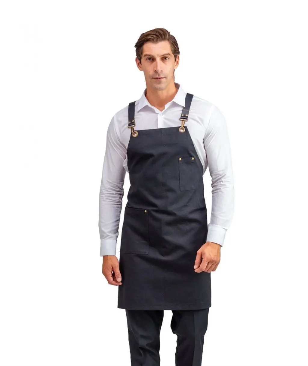 Barista Askılı Önlük Tek Cepli Deri Kemerli - Siyah