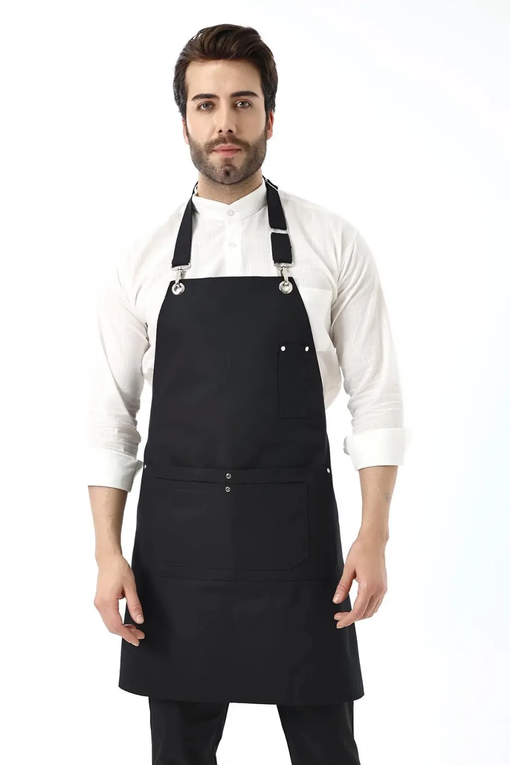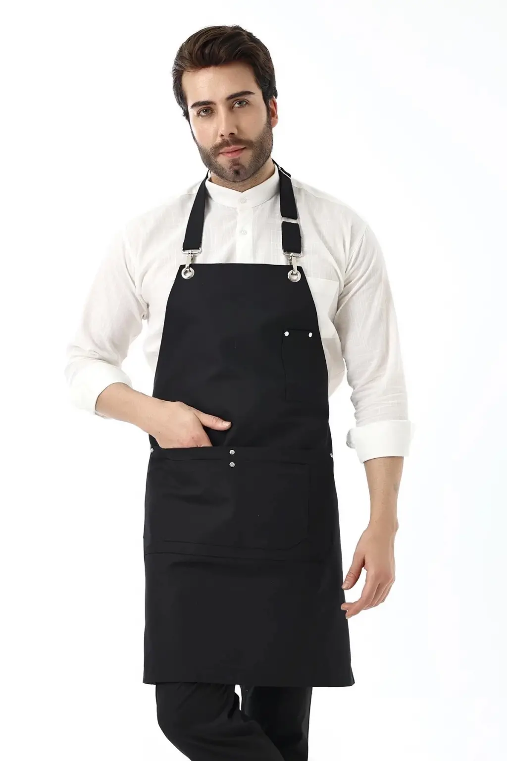 Barista Boyundan Askılı Önlük Çift Cepli - Siyah