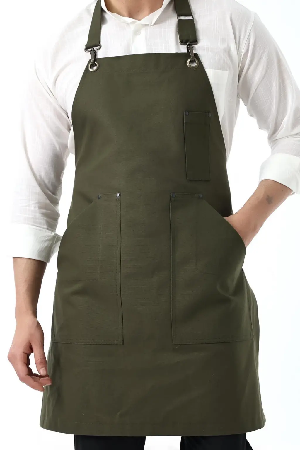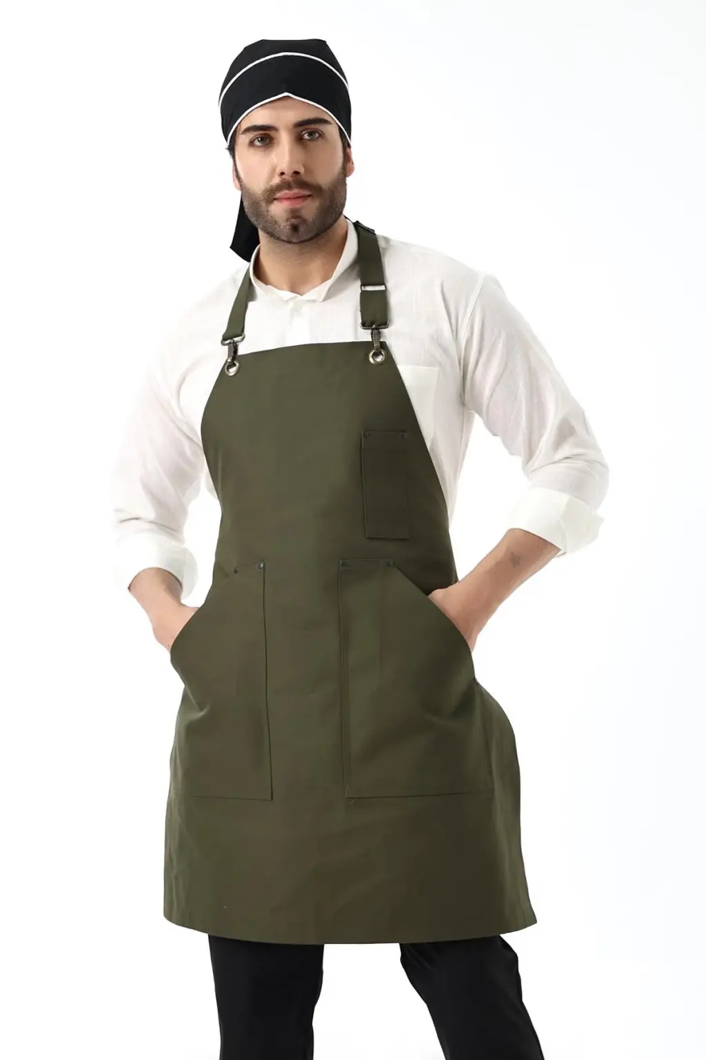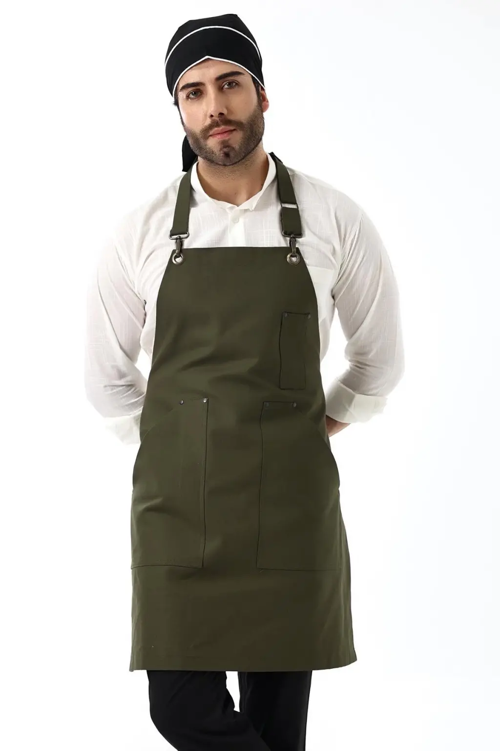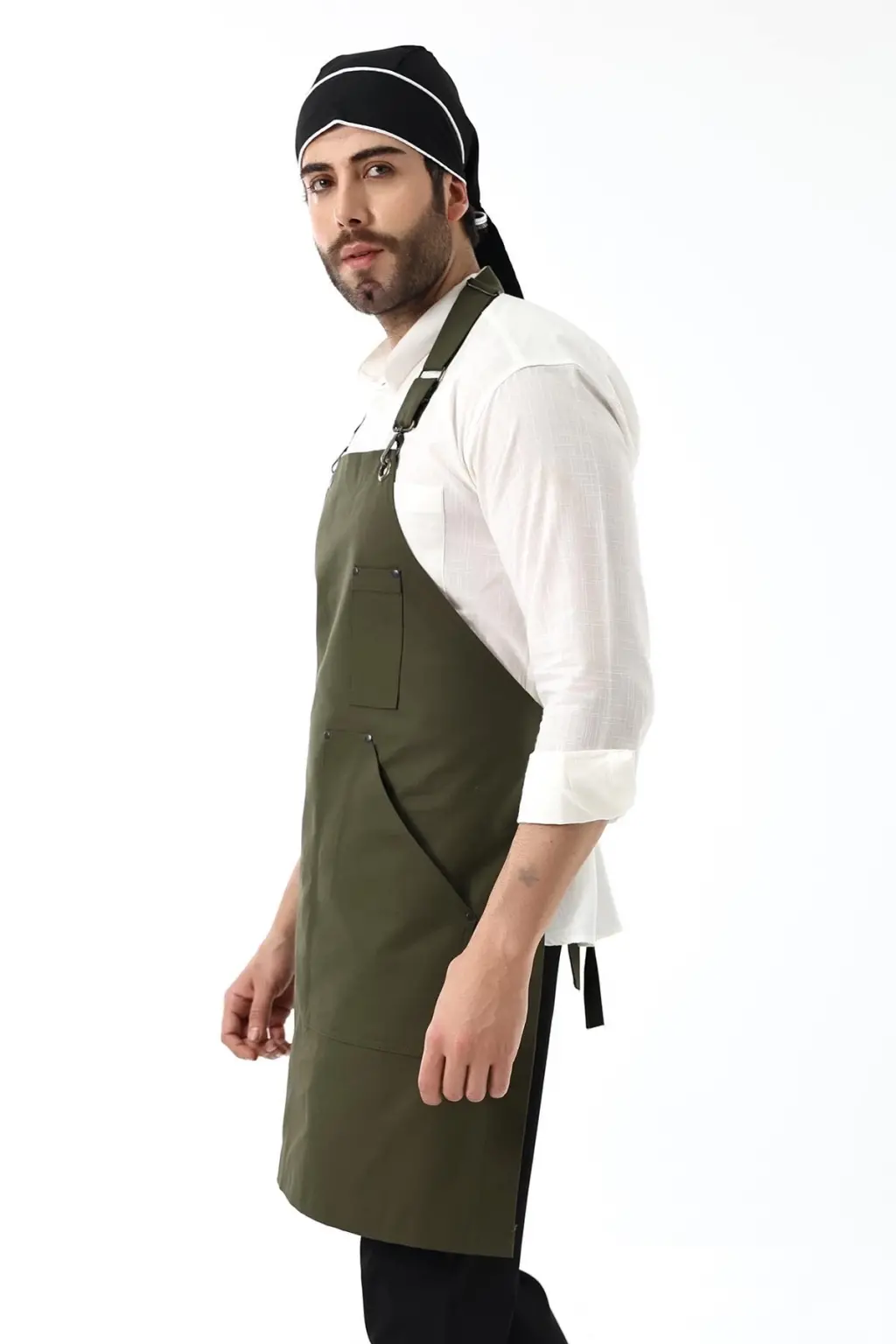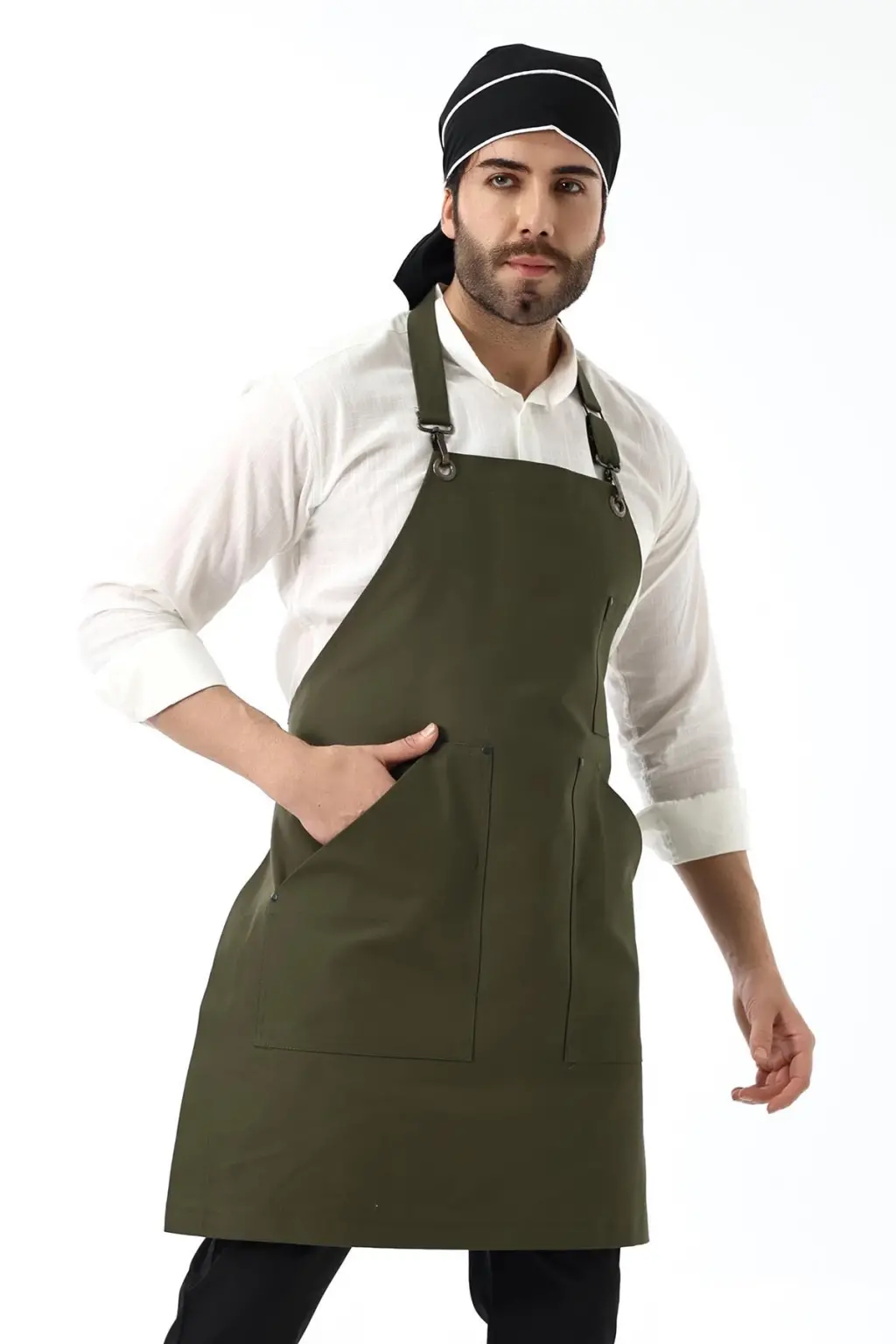 Barista Boyundan Askılı Önlük Kanguru Cepli - Yeşil