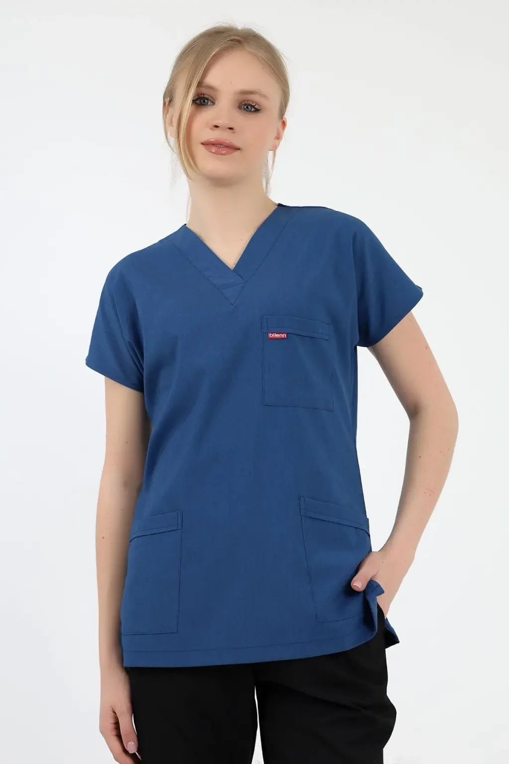 Bflex Unisex Likralı Yarasa Kol Tek Üst - 6408 Petrol Mavi Soft