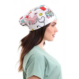 Dijital Unisex Desenli Bone - 6518 Beyaz Sağlık Sembolleri