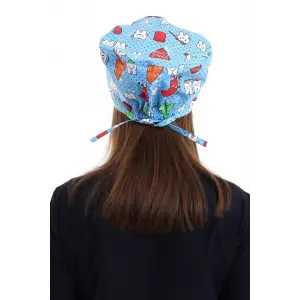 Tesettür Bone - 2301 Mavi Kilim Desenli