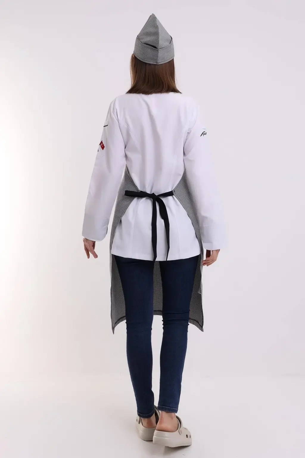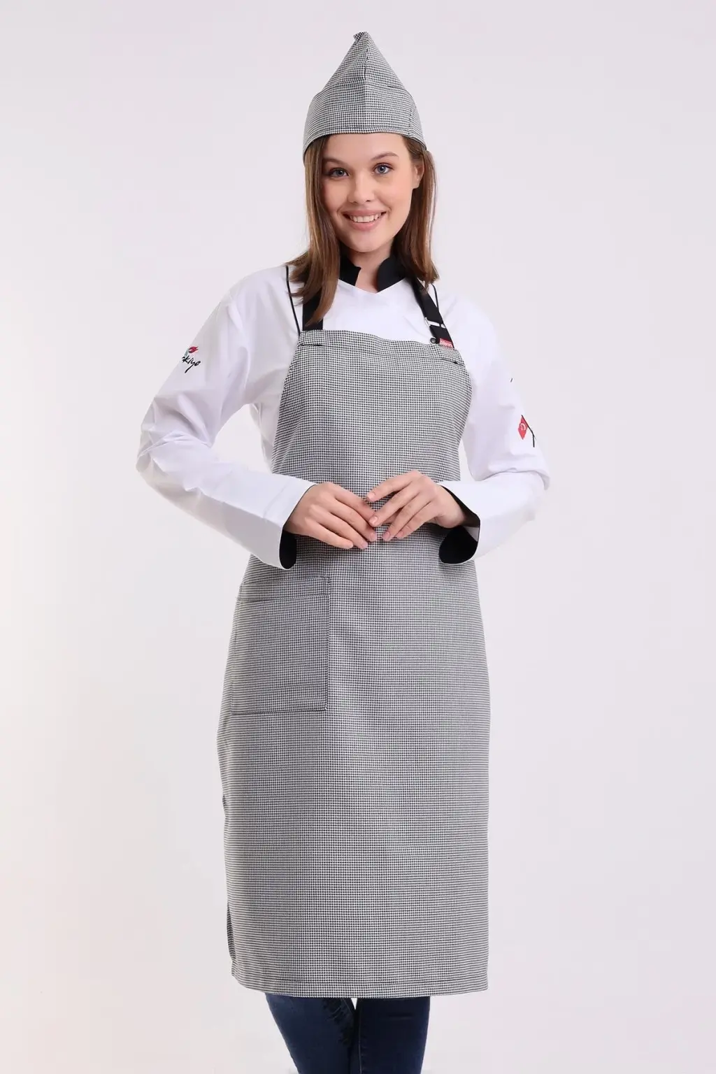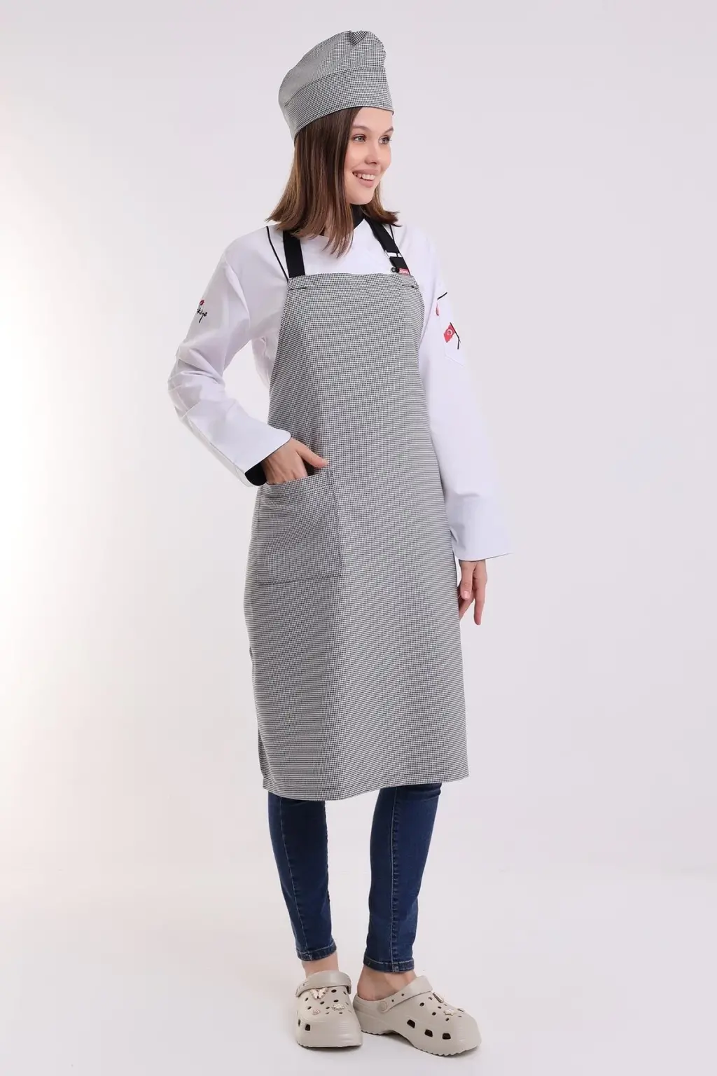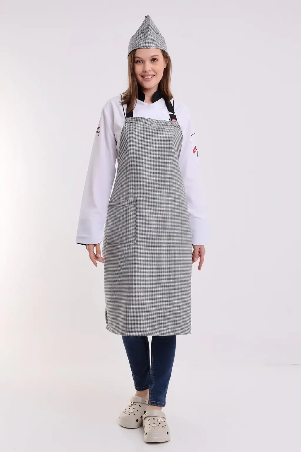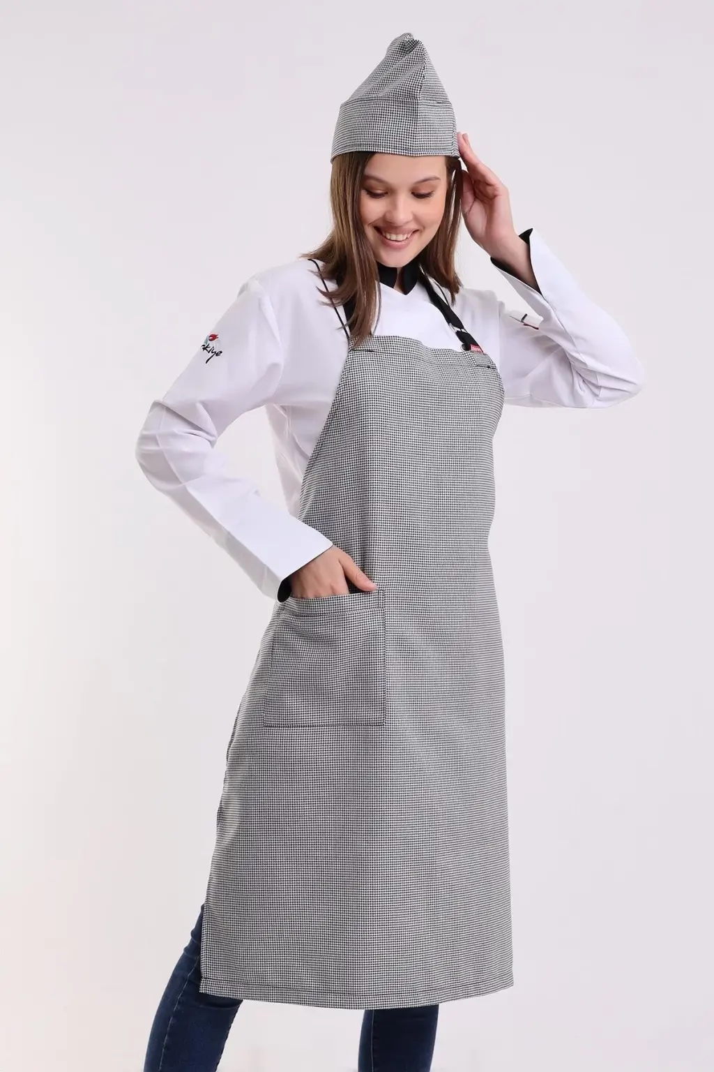 Desenli Askılı Önlük - 209 Kaz Ayağı Siyah Beyaz
