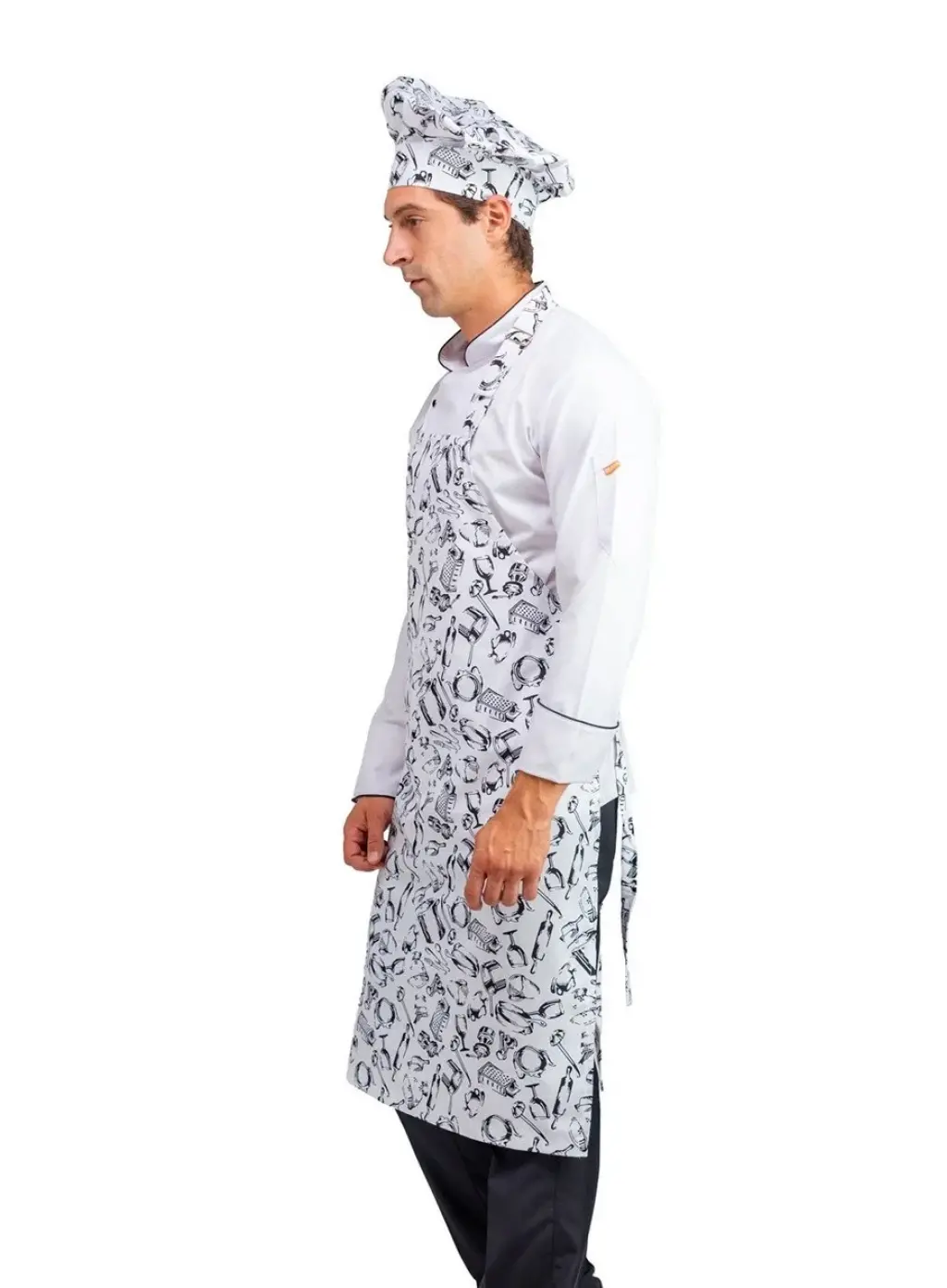 Desenli Askılı Önlük - 2501 Beyaz Merdane