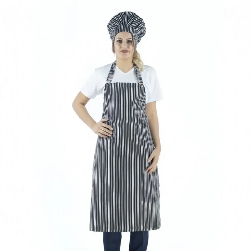 Desenli Askılı Önlük - 3004 Beyaz Çizgi