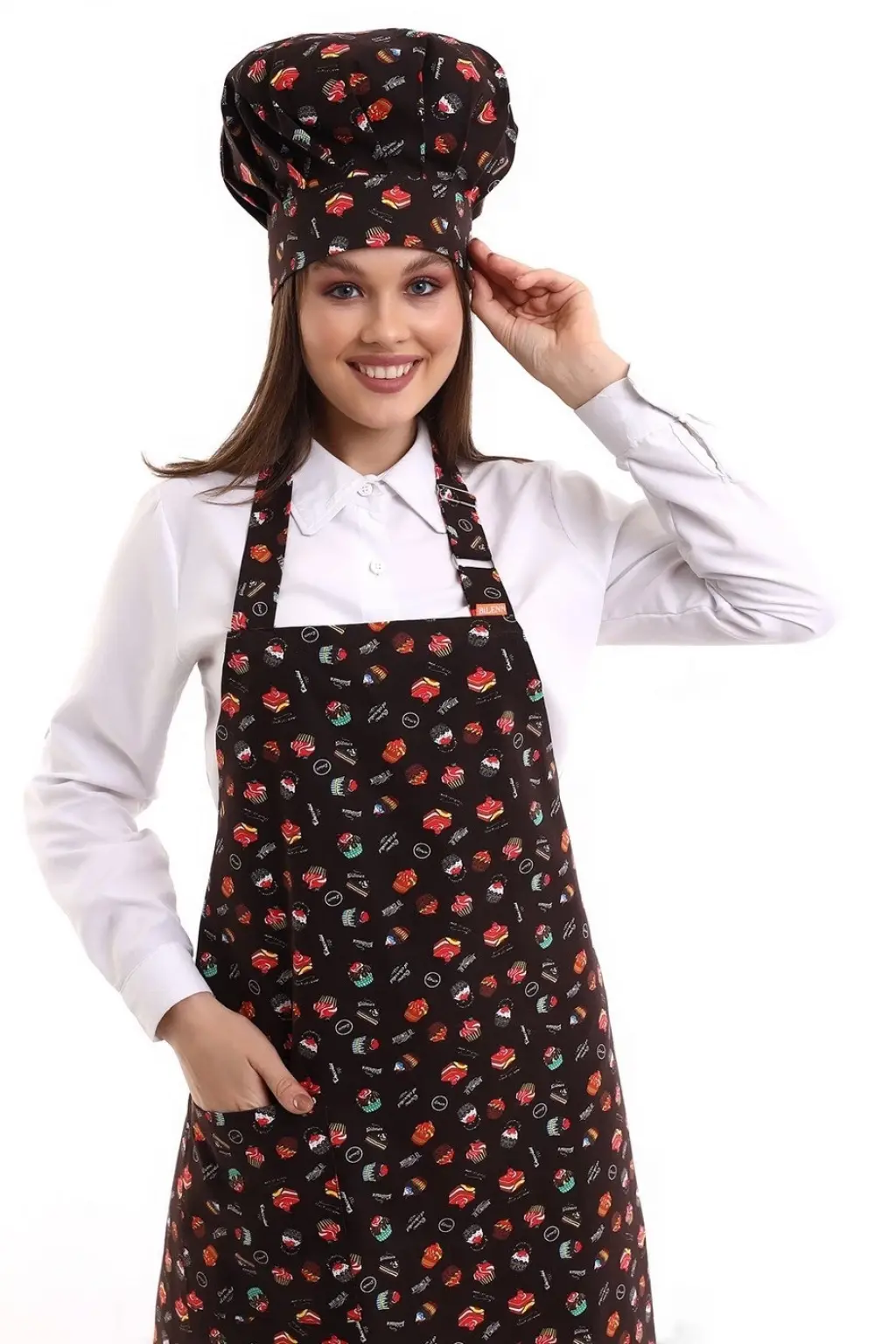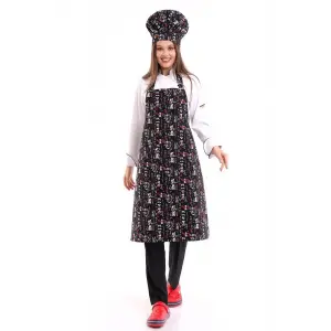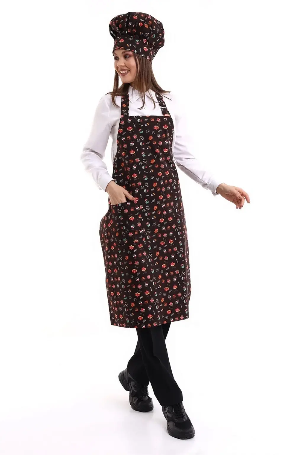 Desenli Askılı Önlük - 3105 Pasta Desenli