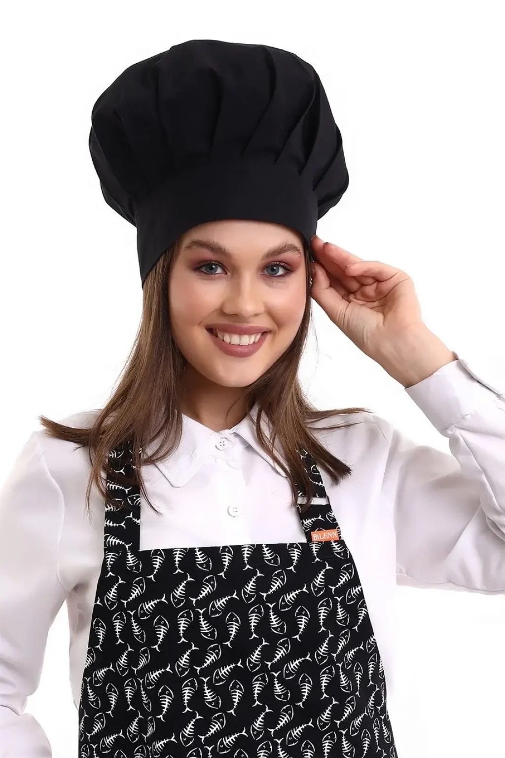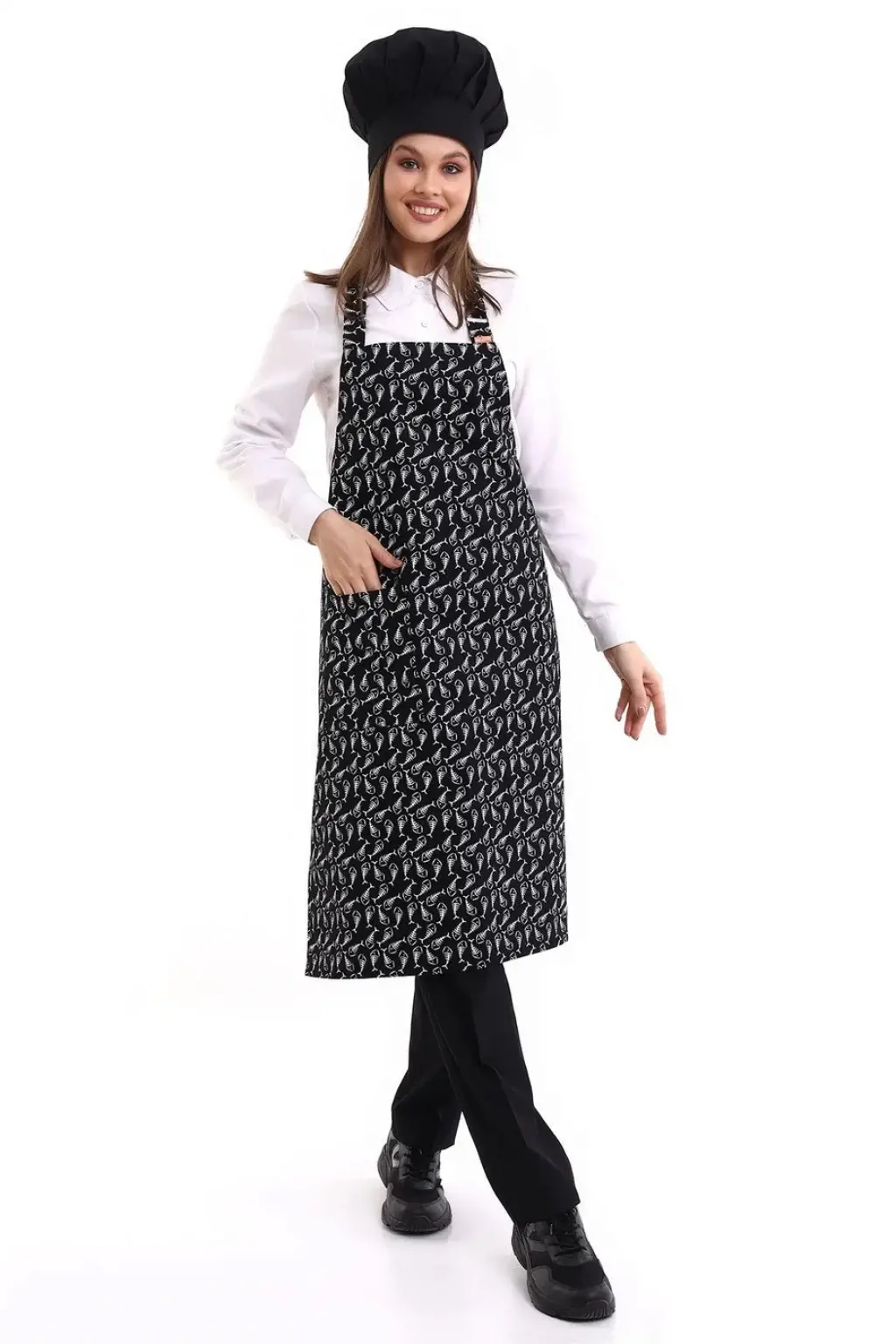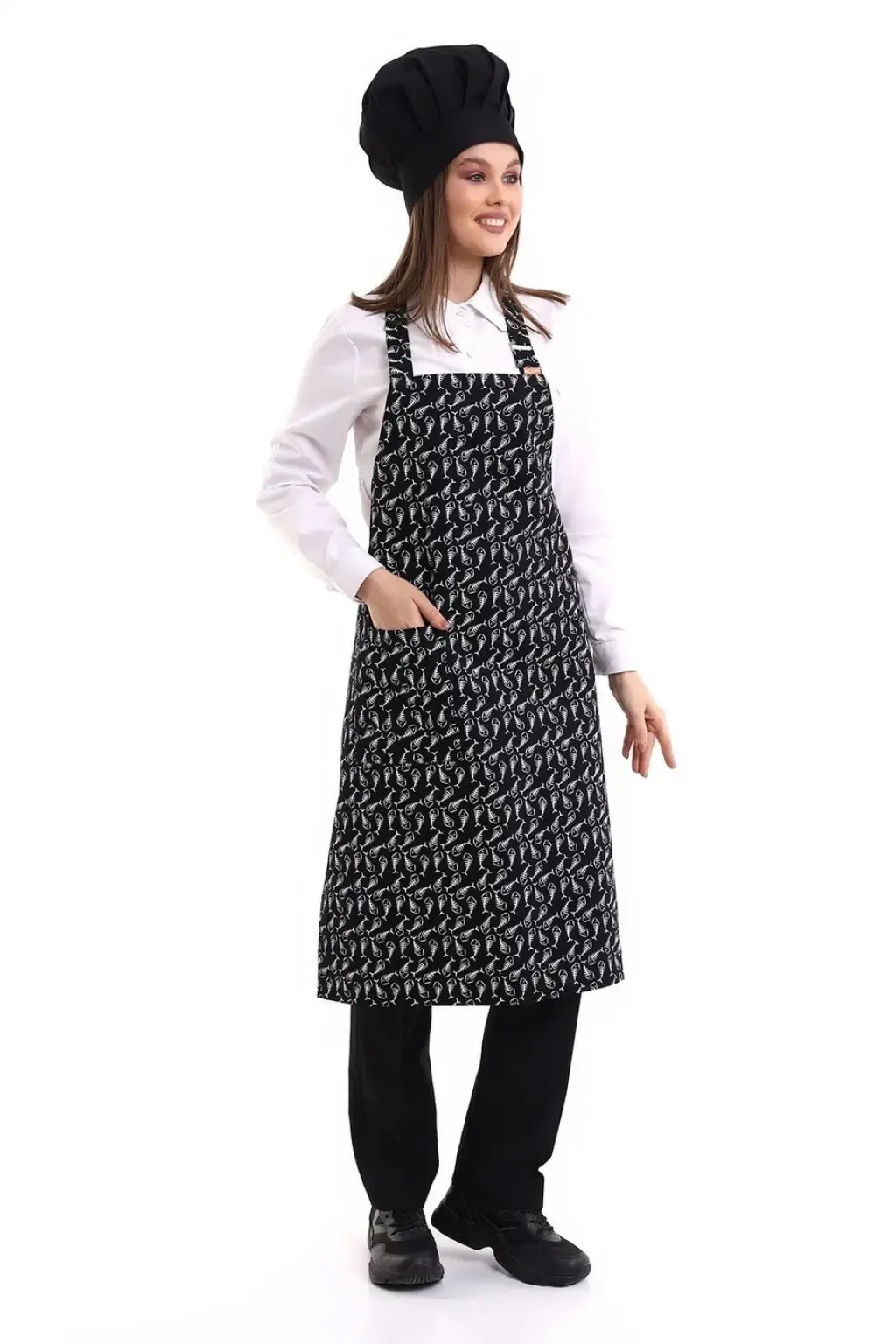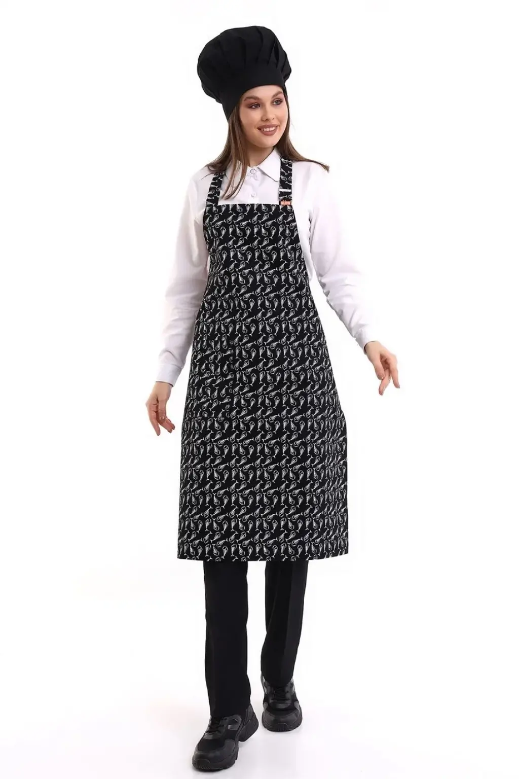 Desenli Askılı Önlük - 3802 Kılçık Siyah