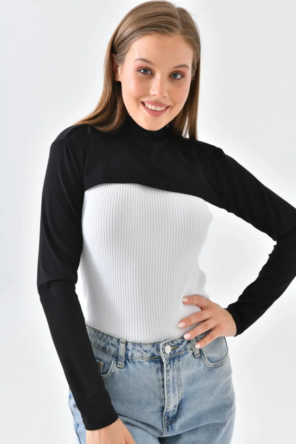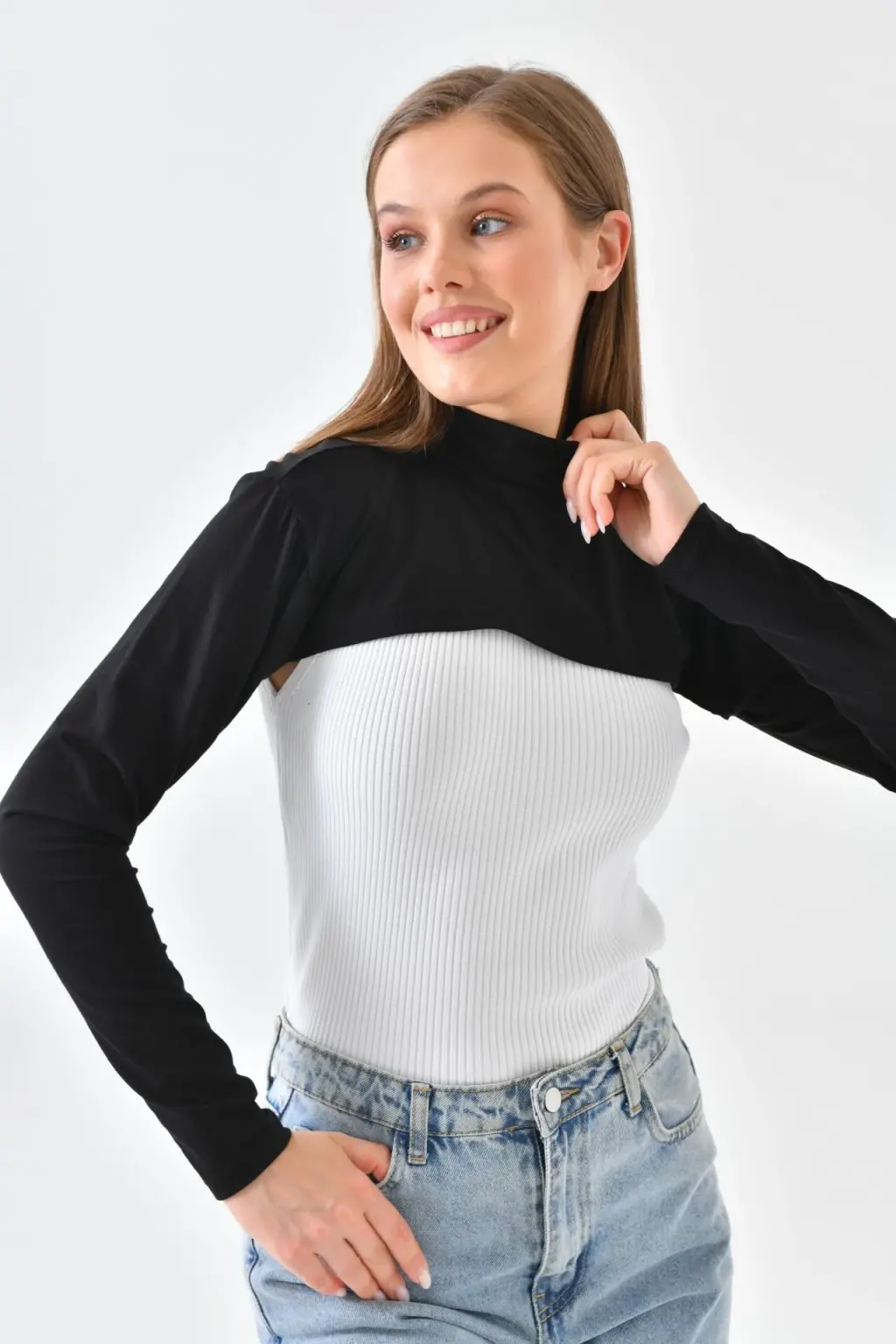 Dik Yaka Boyunluklu Kolluk - Siyah