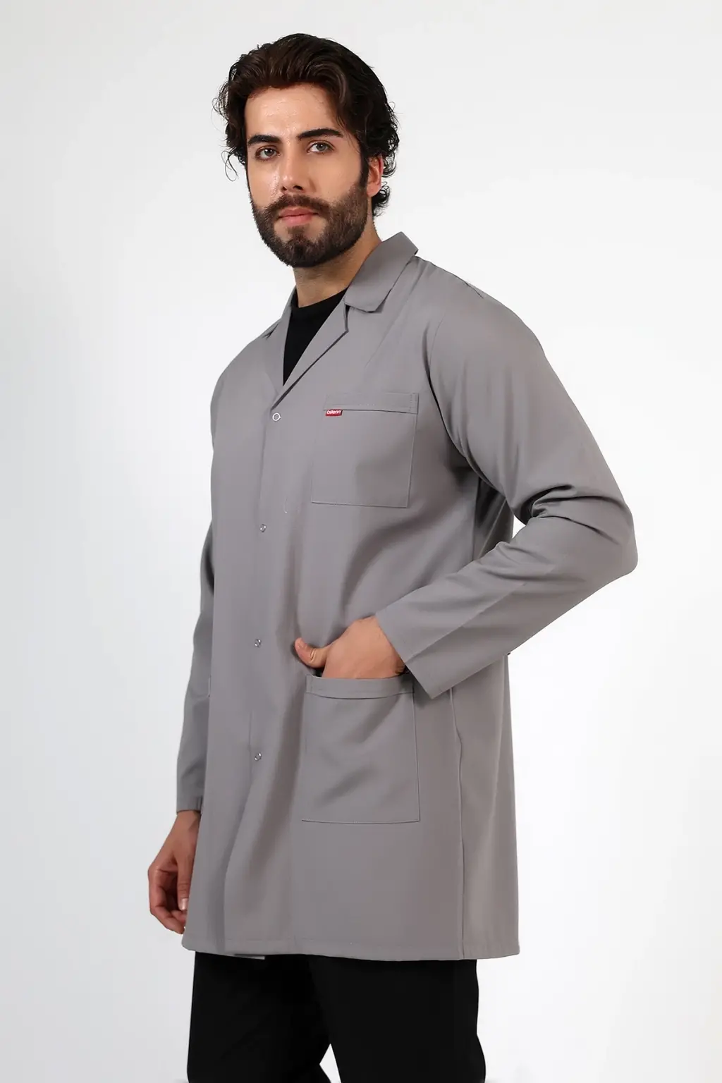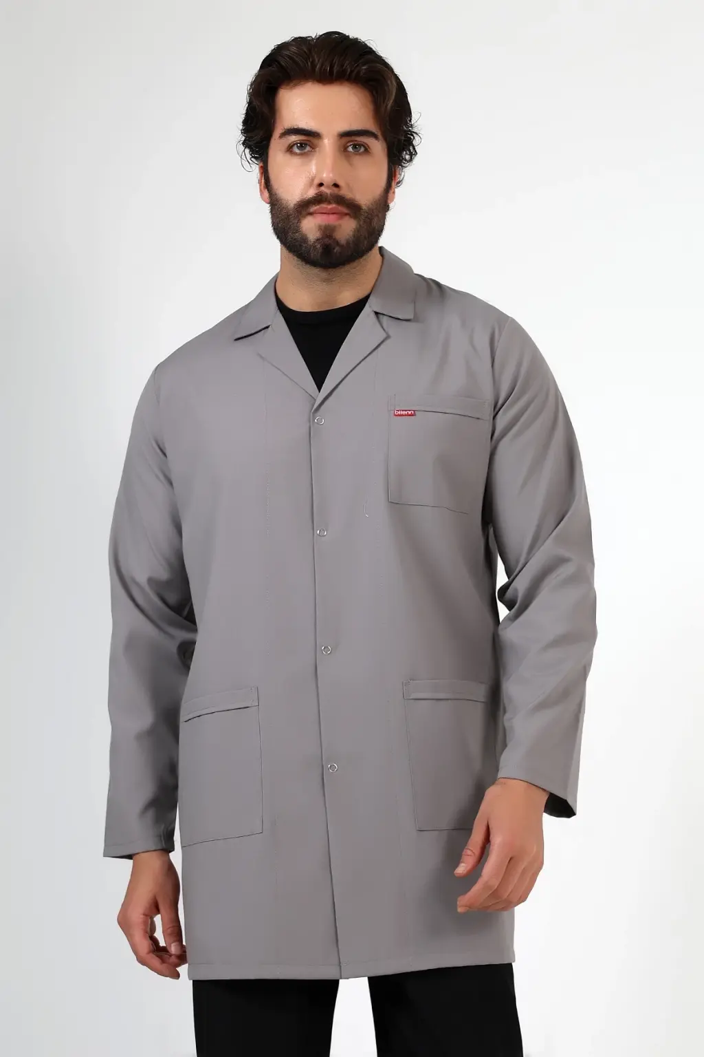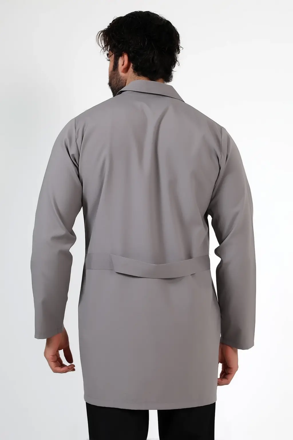 Doktor Öğretmen Erkek Önlük Ara Boy Ceket Yaka - 42 Gri