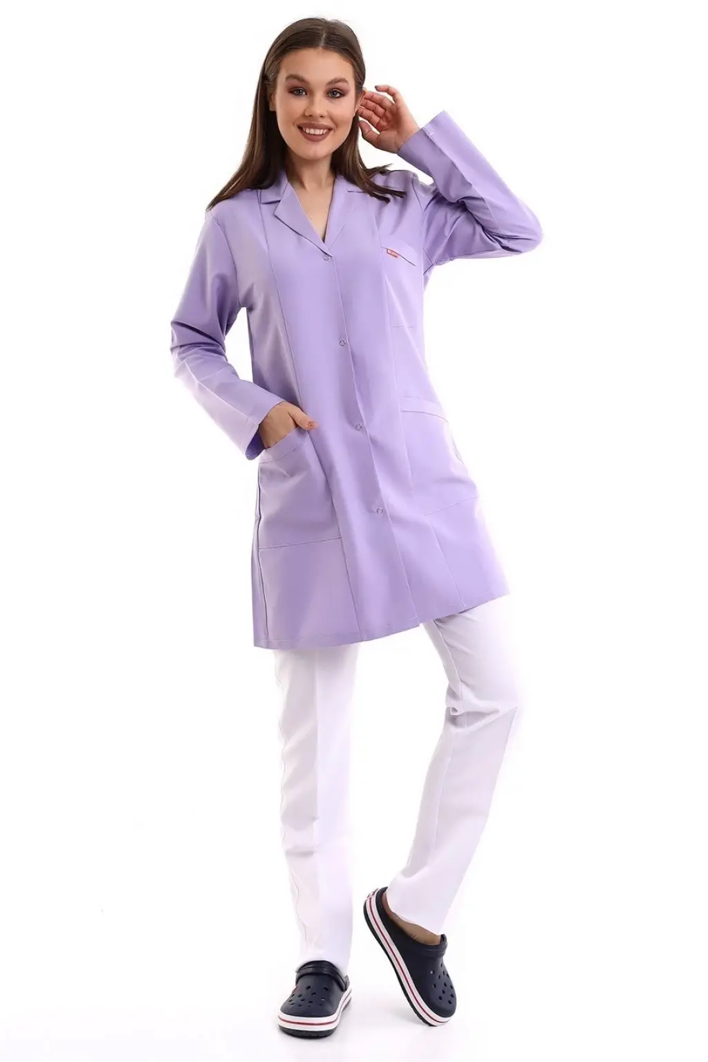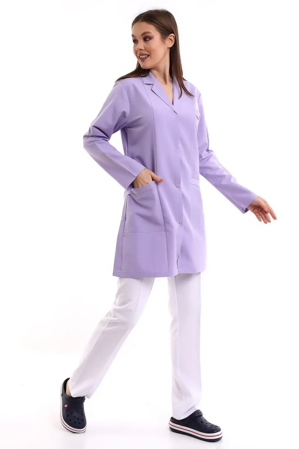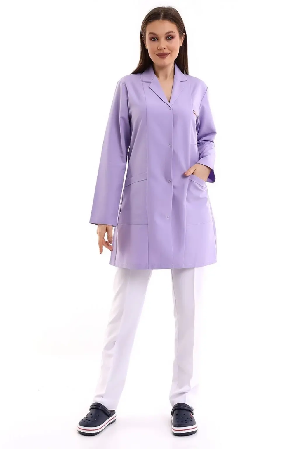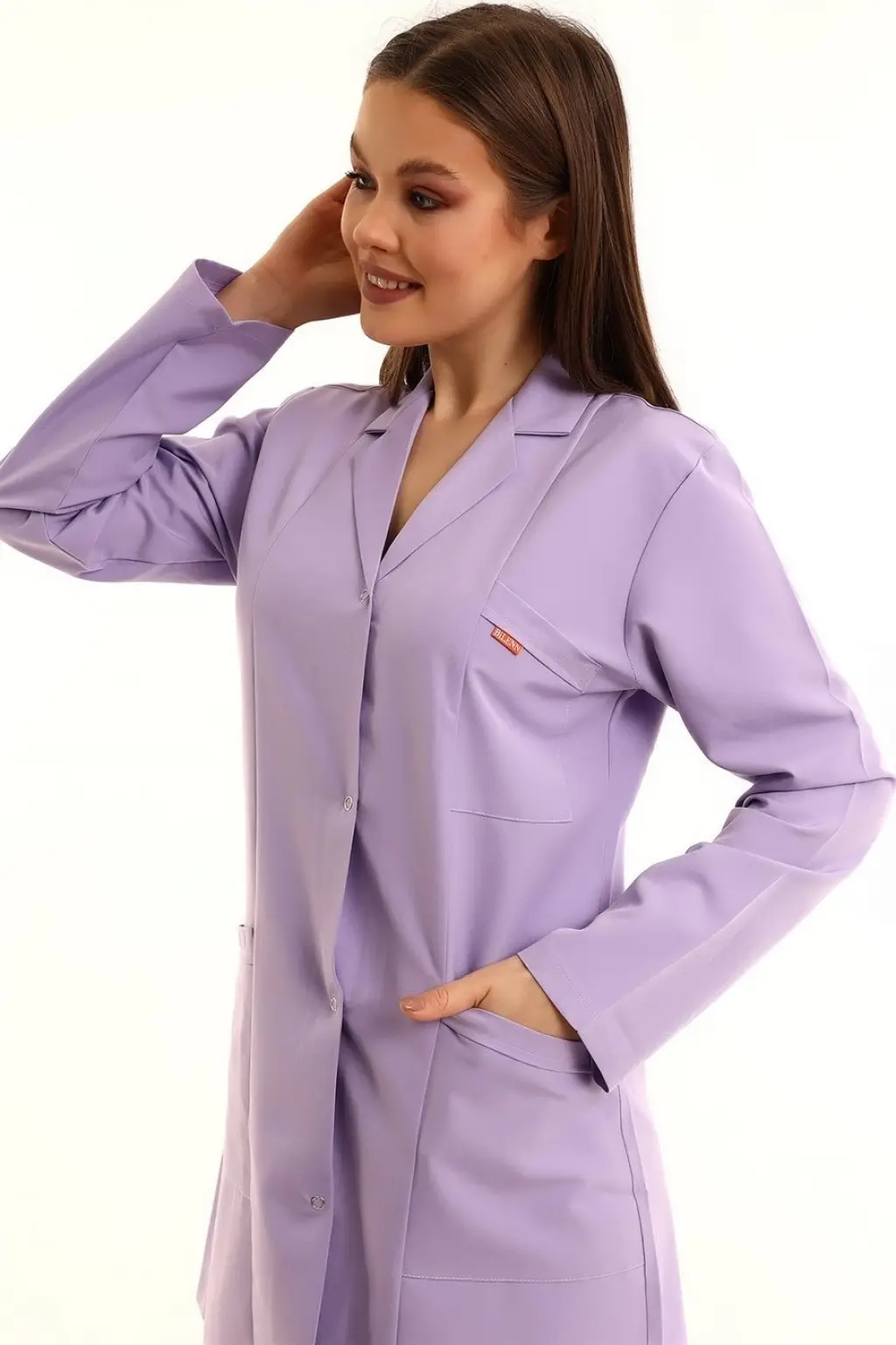 Doktor Öğretmen Kadın Önlük Ara Boy Ceket Yaka - 11 Lila