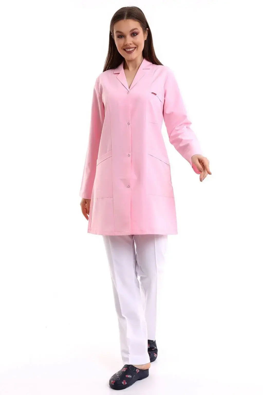 Doktor Öğretmen Kadın Önlük Ara Boy Ceket Yaka - 12 Açık Pembe