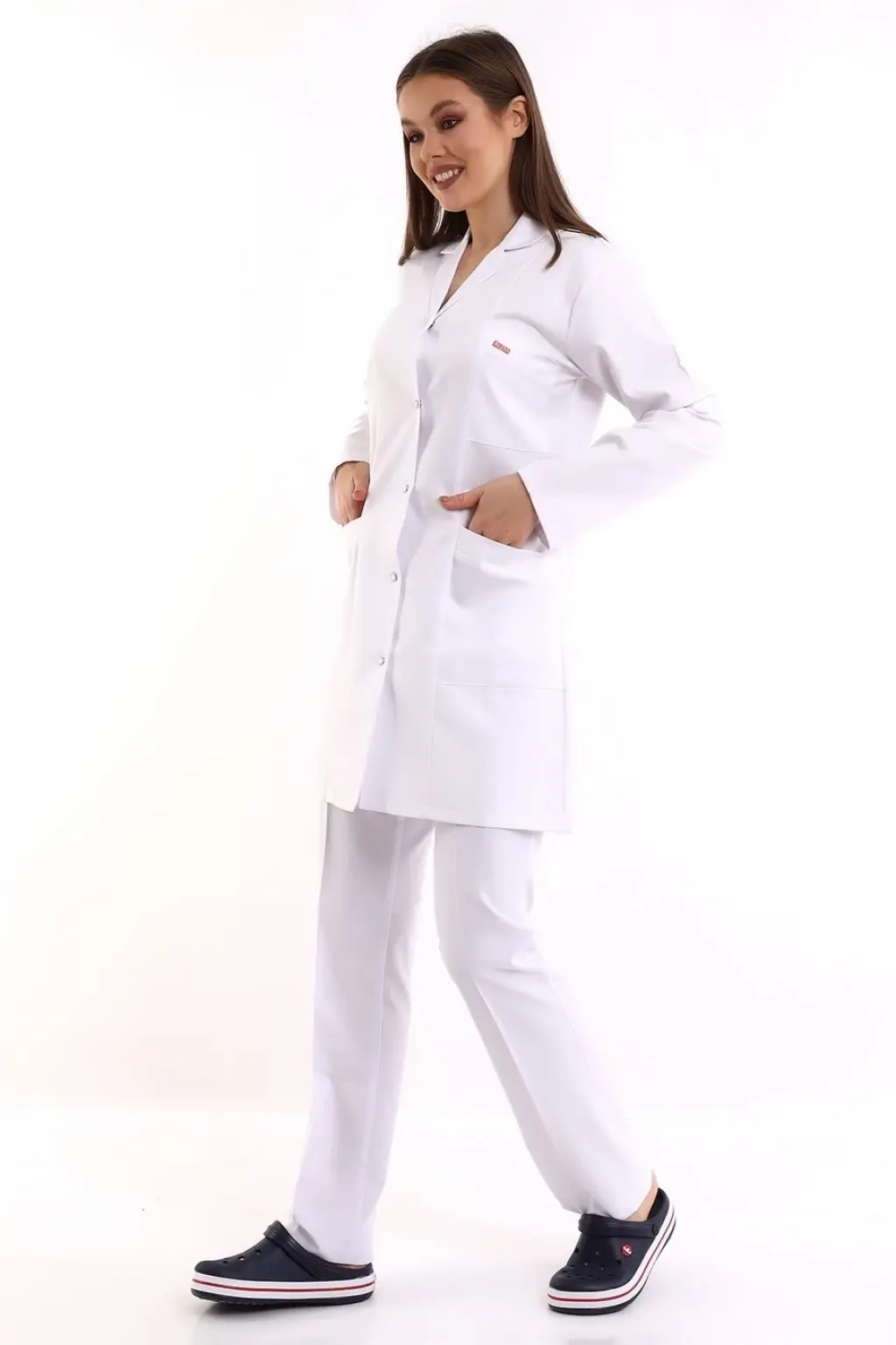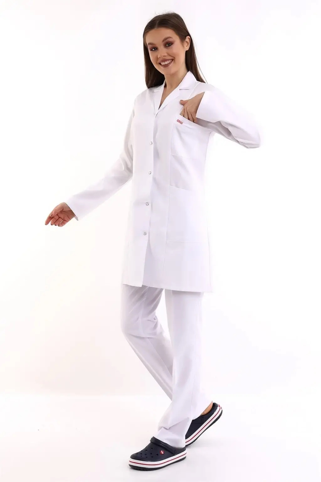 Doktor Öğretmen Kadın Önlük Ara Boy Ceket Yaka - 171 Beyaz