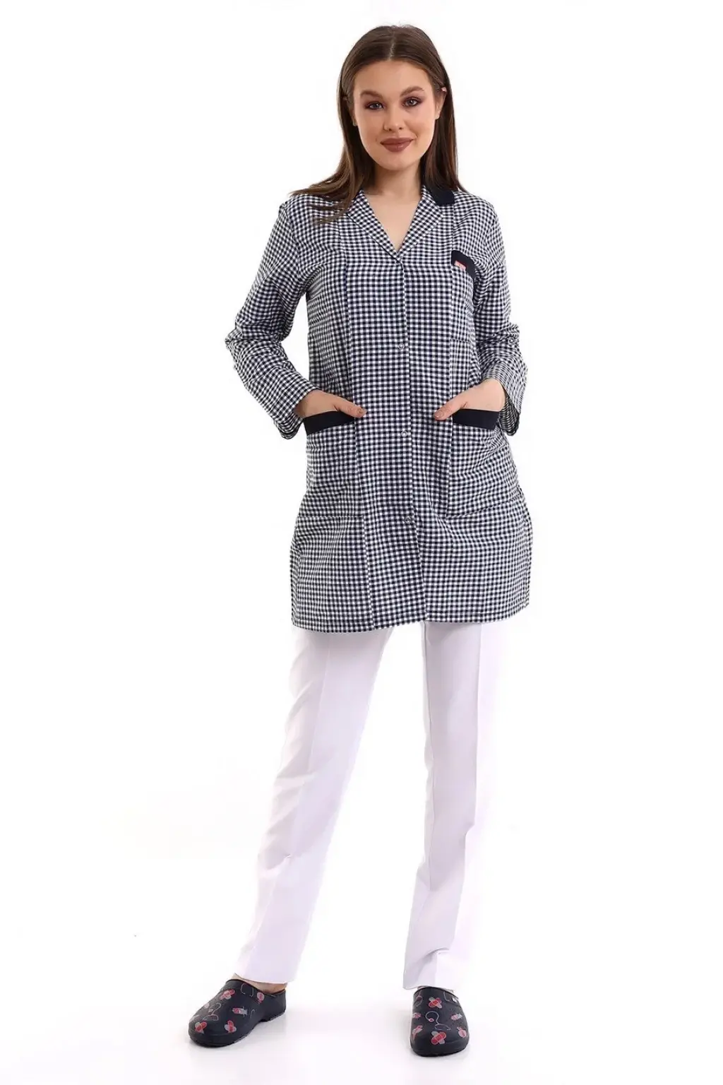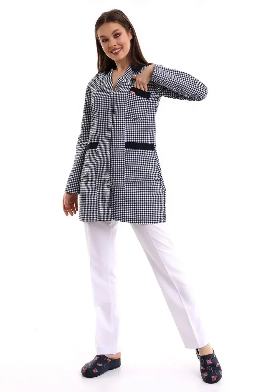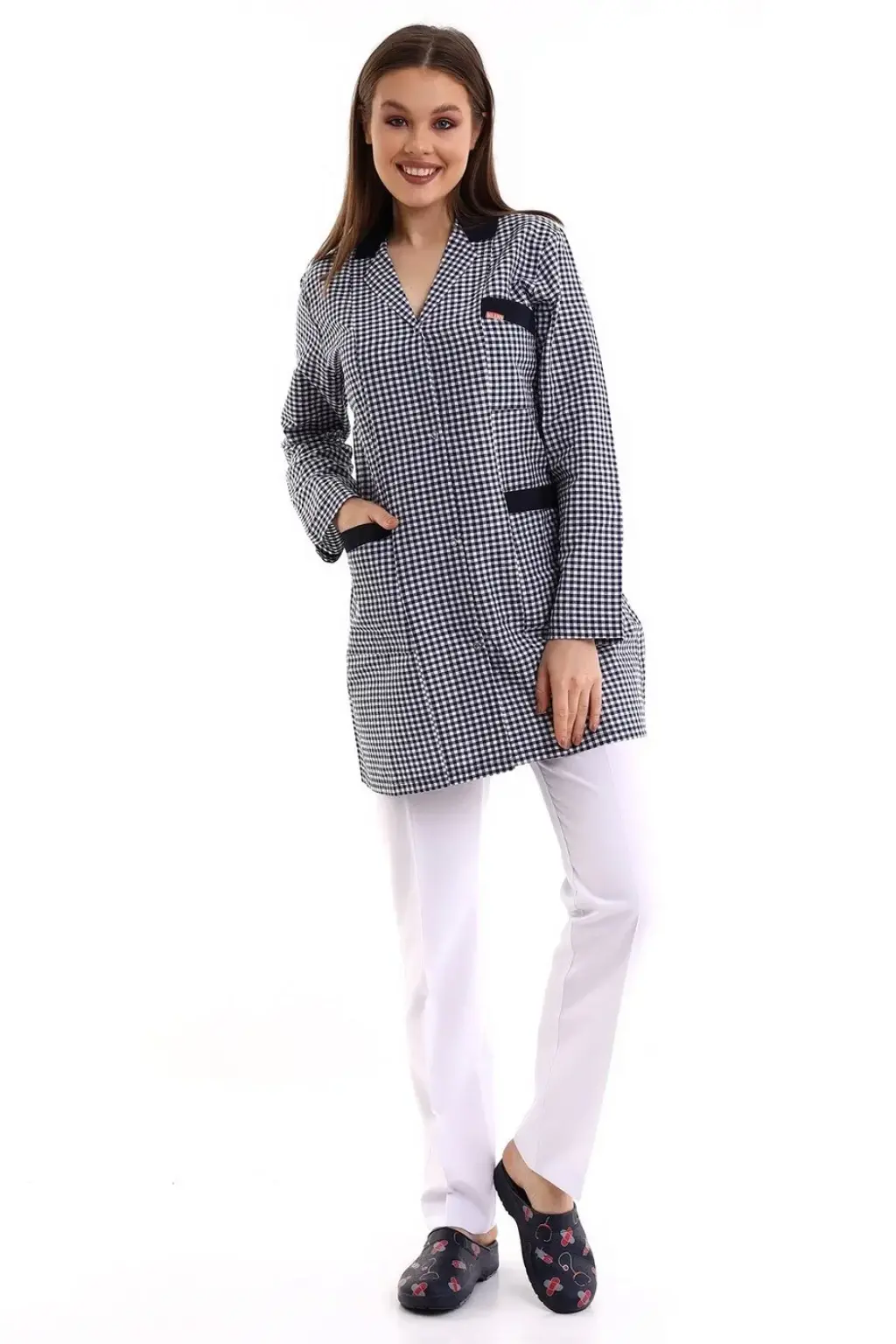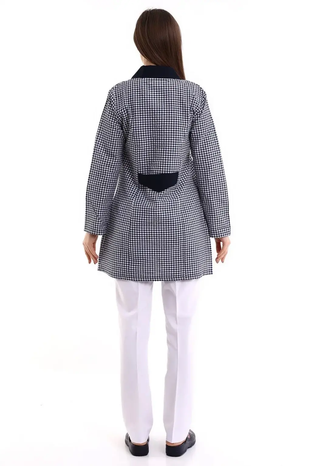 Doktor Öğretmen Kadın Önlük Ara Boy Ceket Yaka - Pöti Kare Lacivert