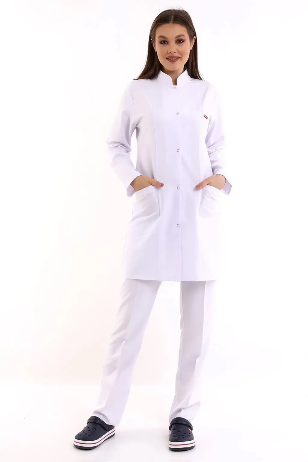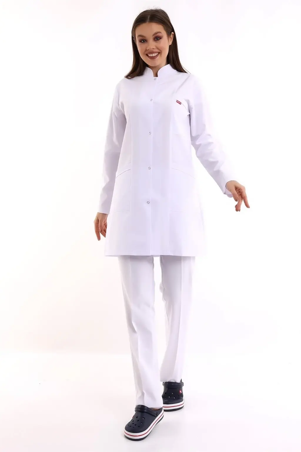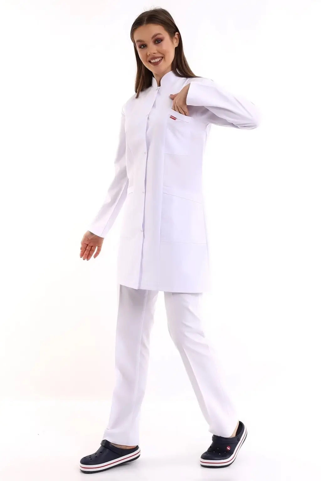 Doktor Öğretmen Kadın Önlük Ara Boy Hakim Yaka - 171 Beyaz