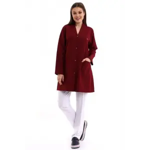 Doktor Öğretmen Kadın Önlük Ara Boy Ceket Yaka - 19 Bordo
