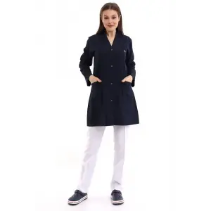 Doktor Öğretmen Kadın Önlük Ara Boy Ceket Yaka - 47 Lacivert