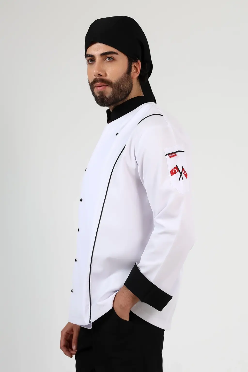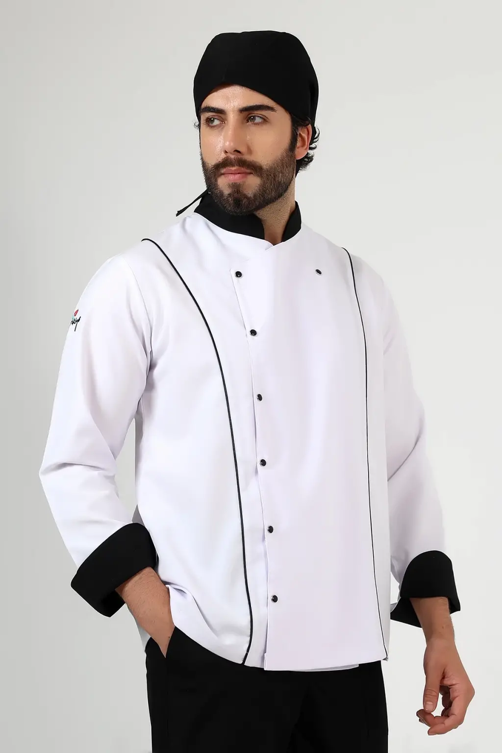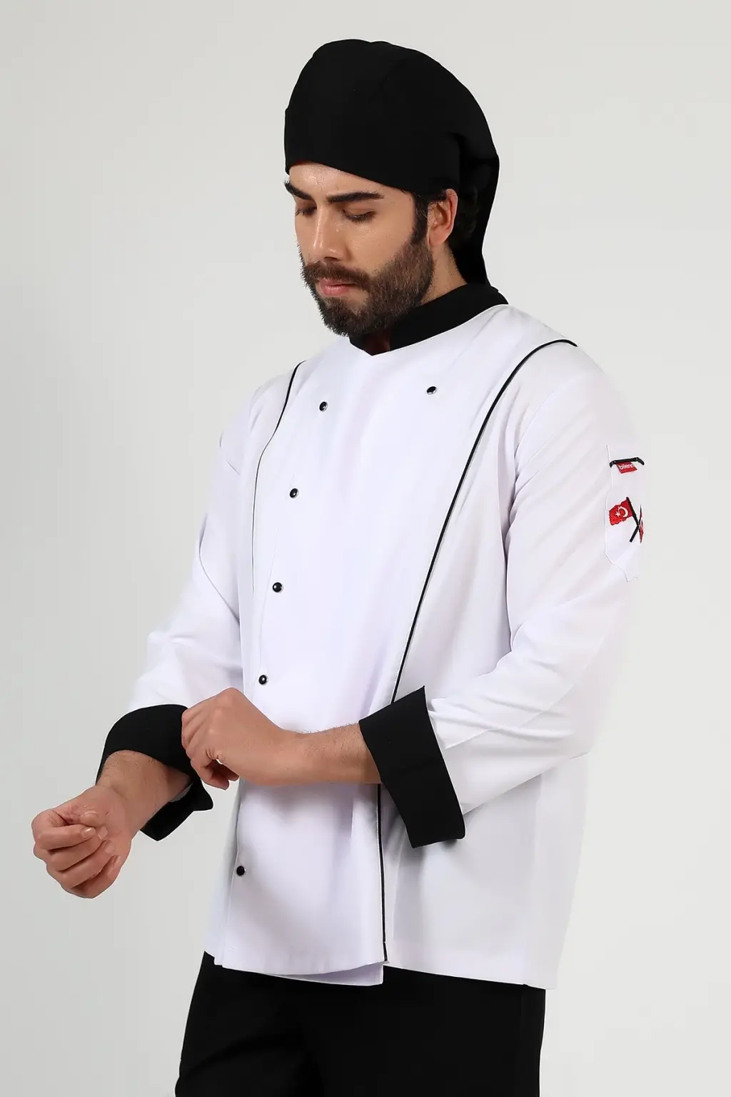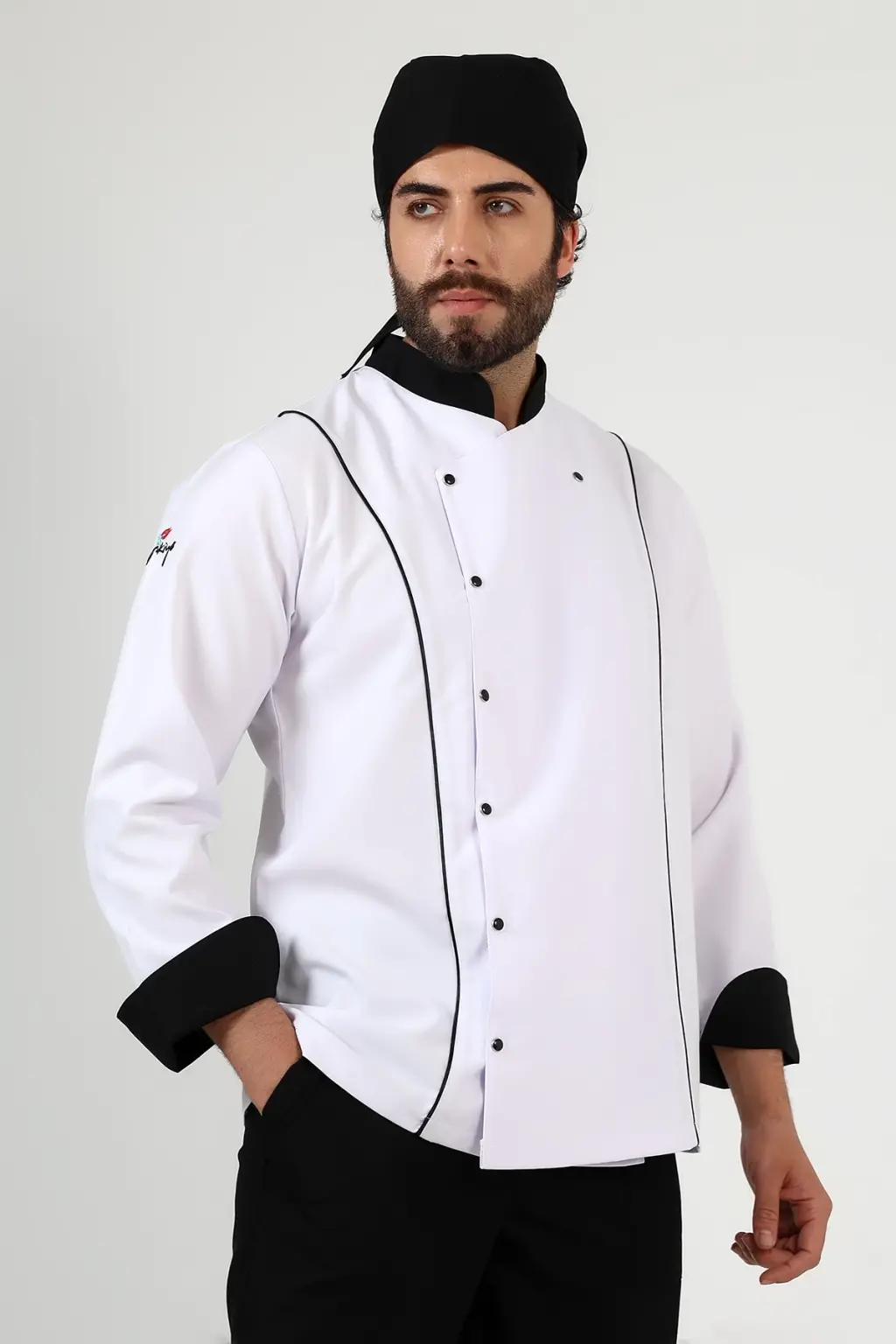 Erkek Aşçı Ceket 01 - Beyaz Siyah Biye