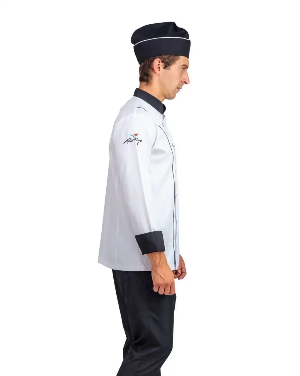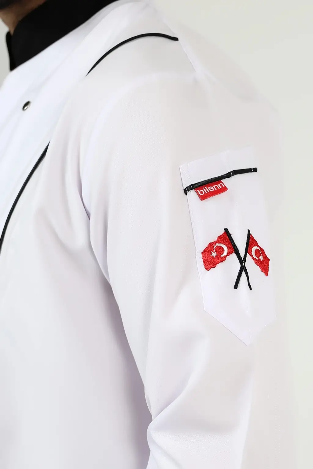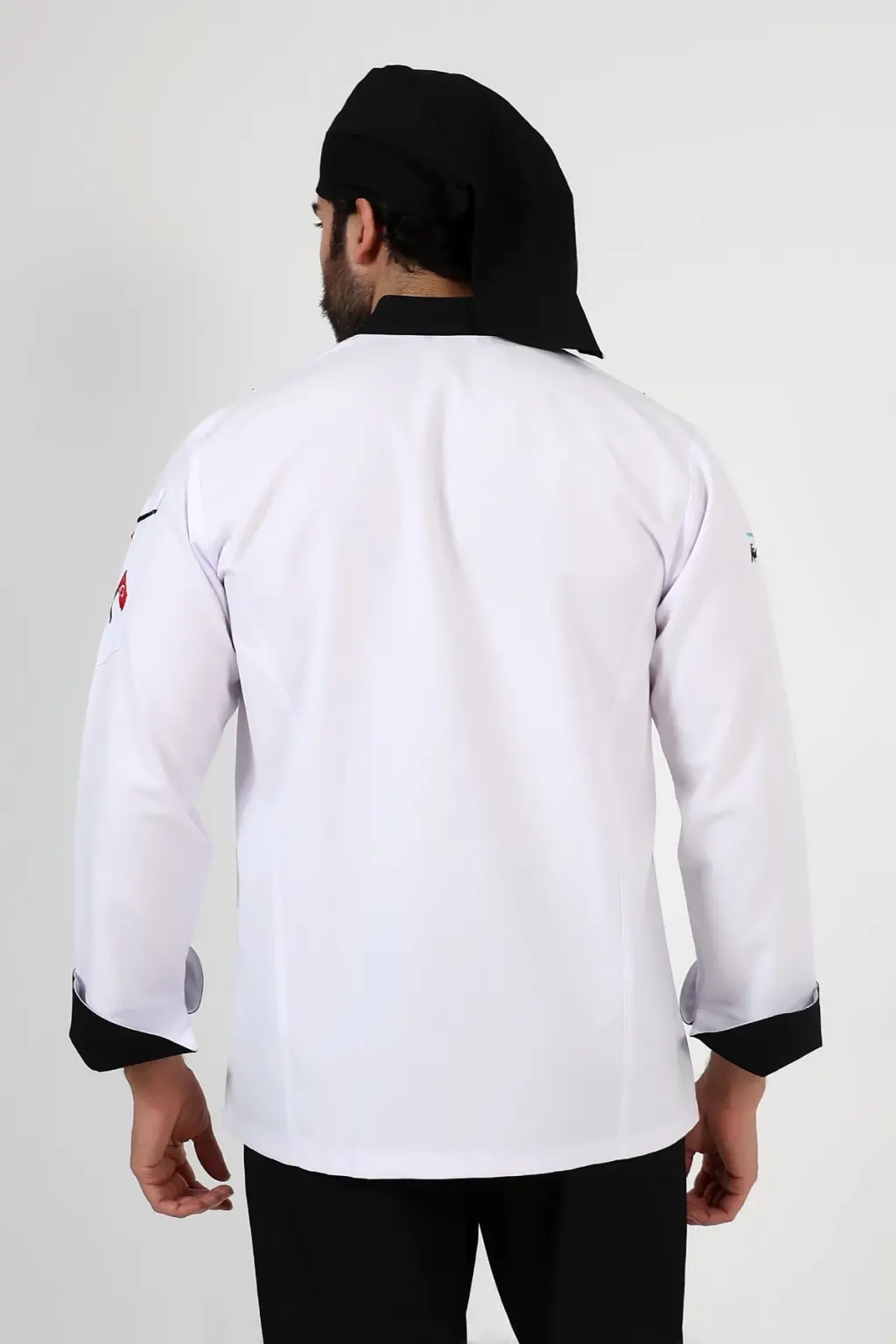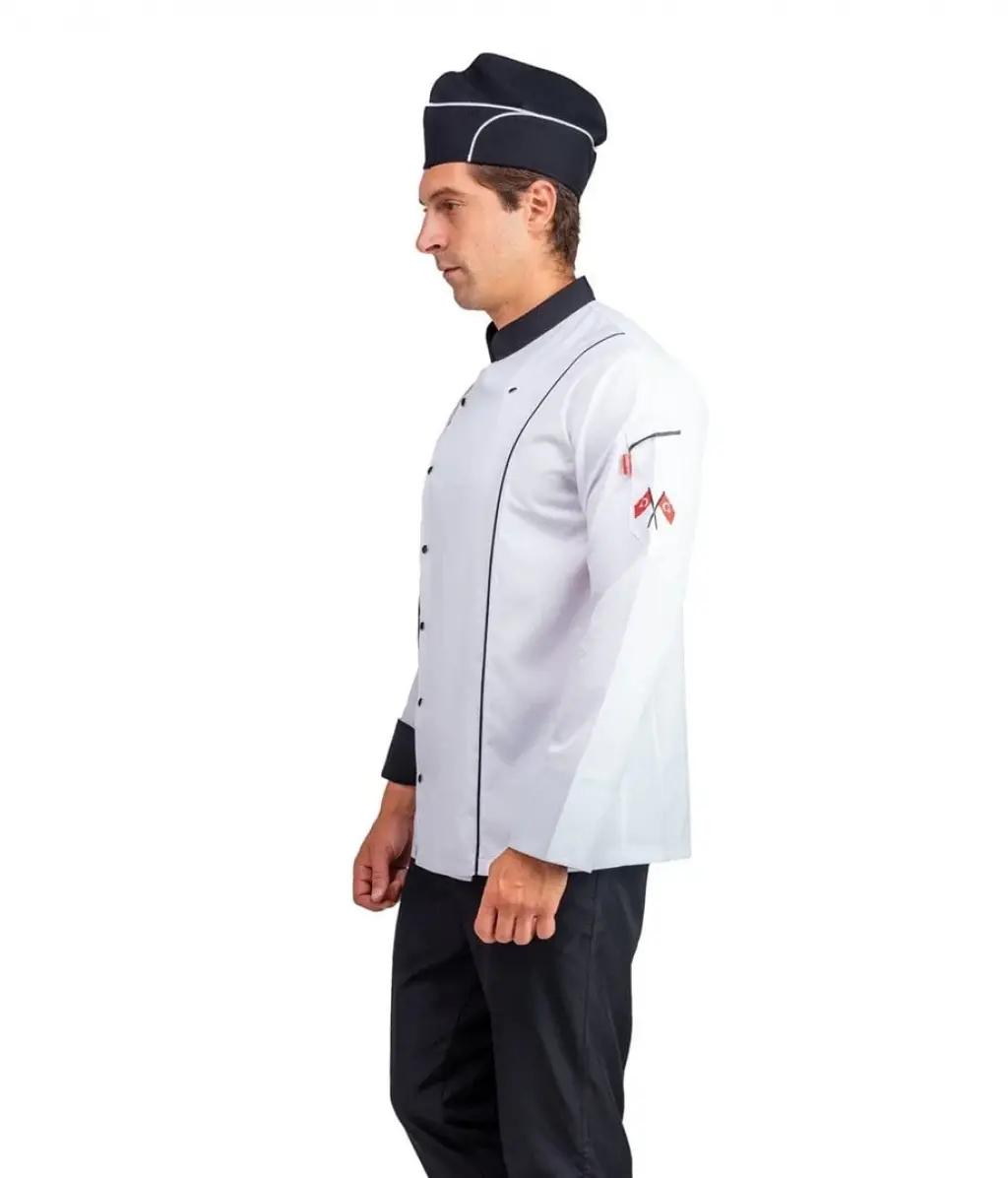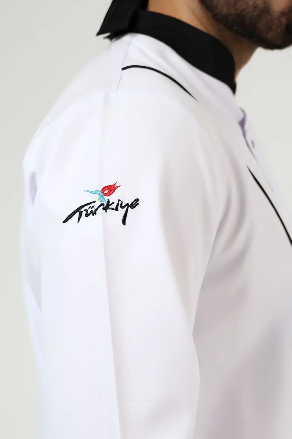Erkek Aşçı Ceket 01 - Beyaz Siyah Biye