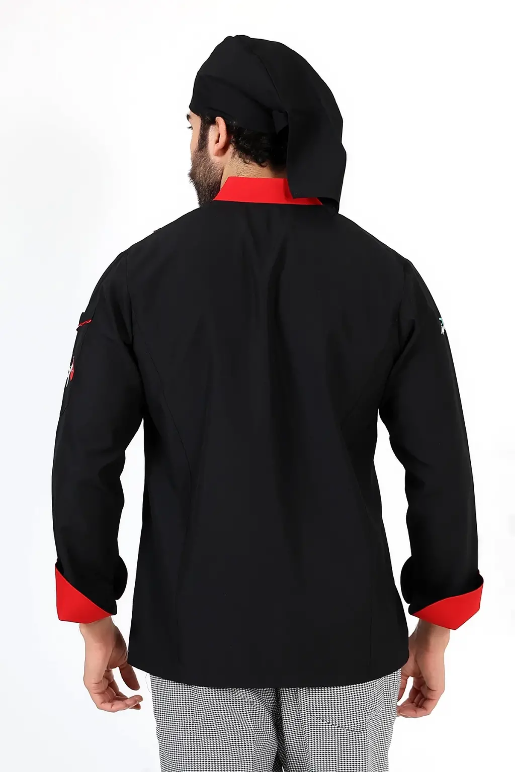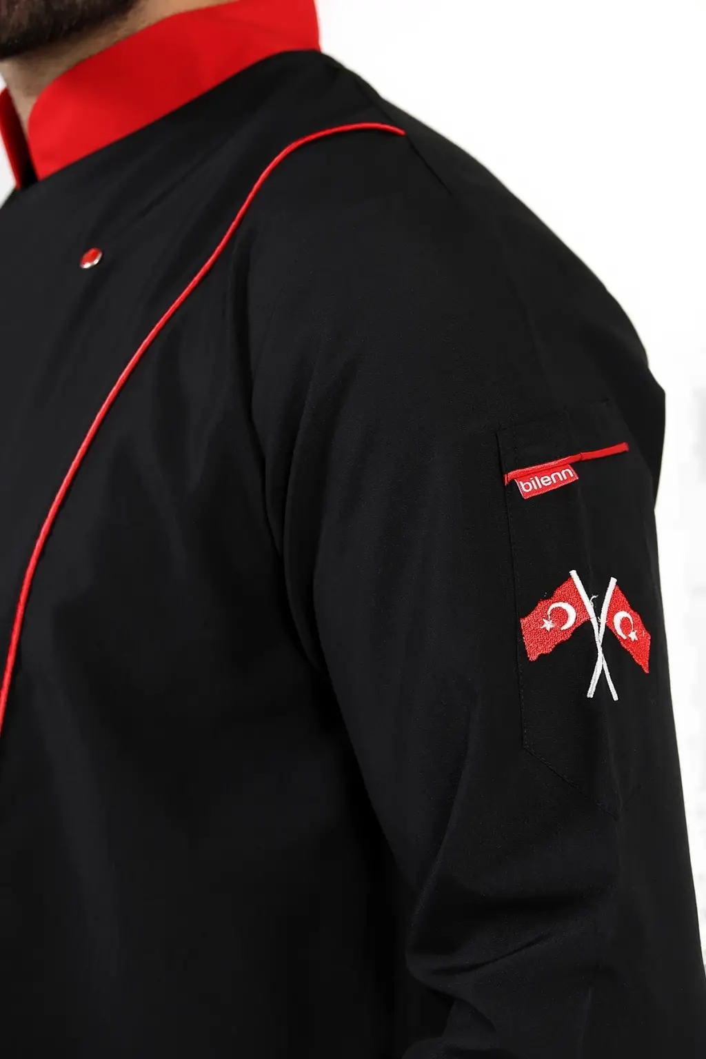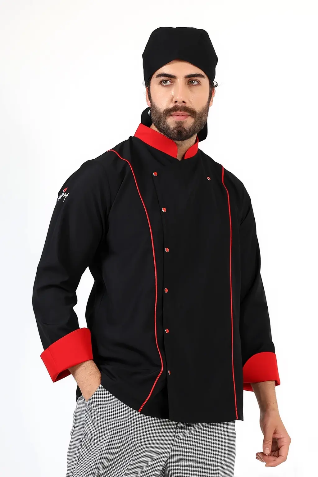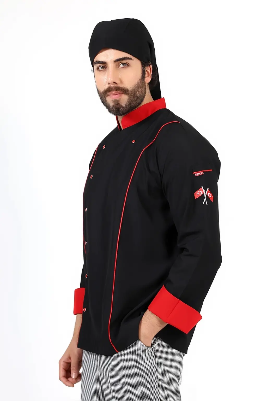 Erkek Aşçı Ceket 01 - Siyah Kırmızı Biye