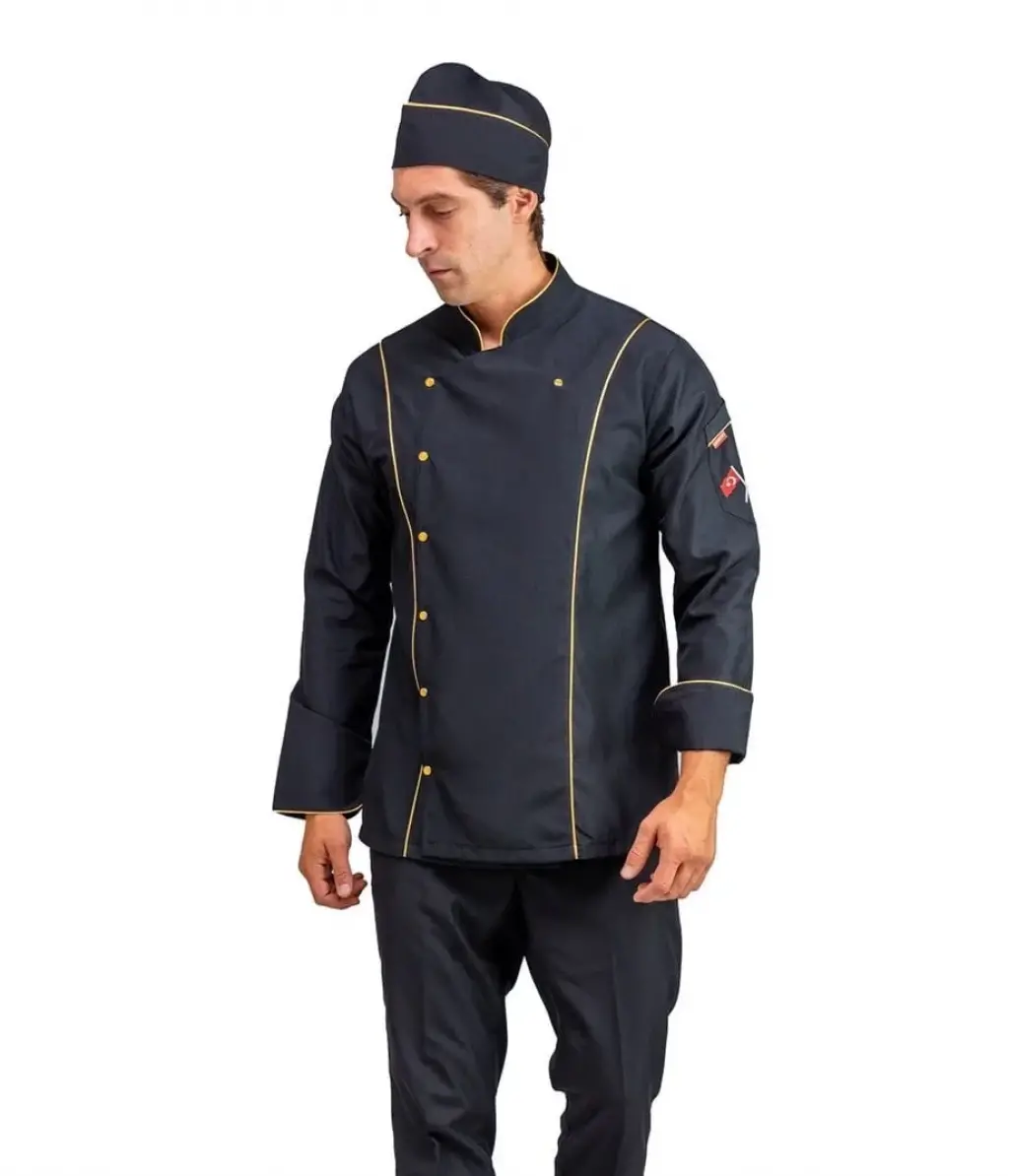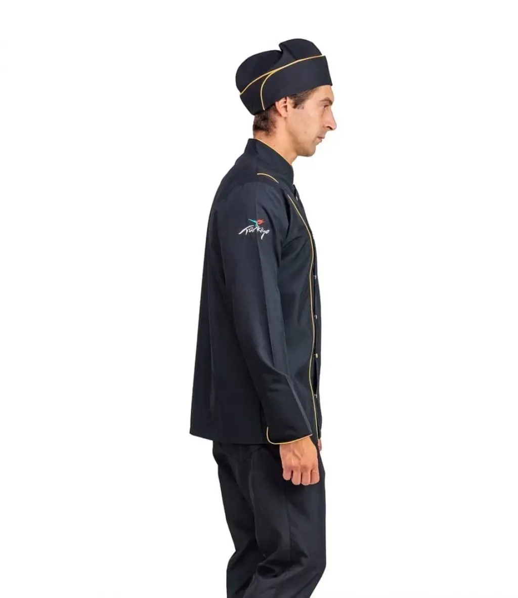 Erkek Aşçı Ceket 01 - Siyah-sarı Biye