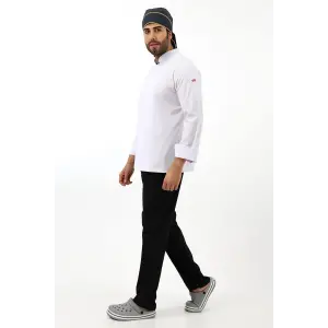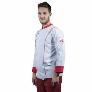 Erkek Aşçı Ceket 01 - Beyaz Kırmızı Biye